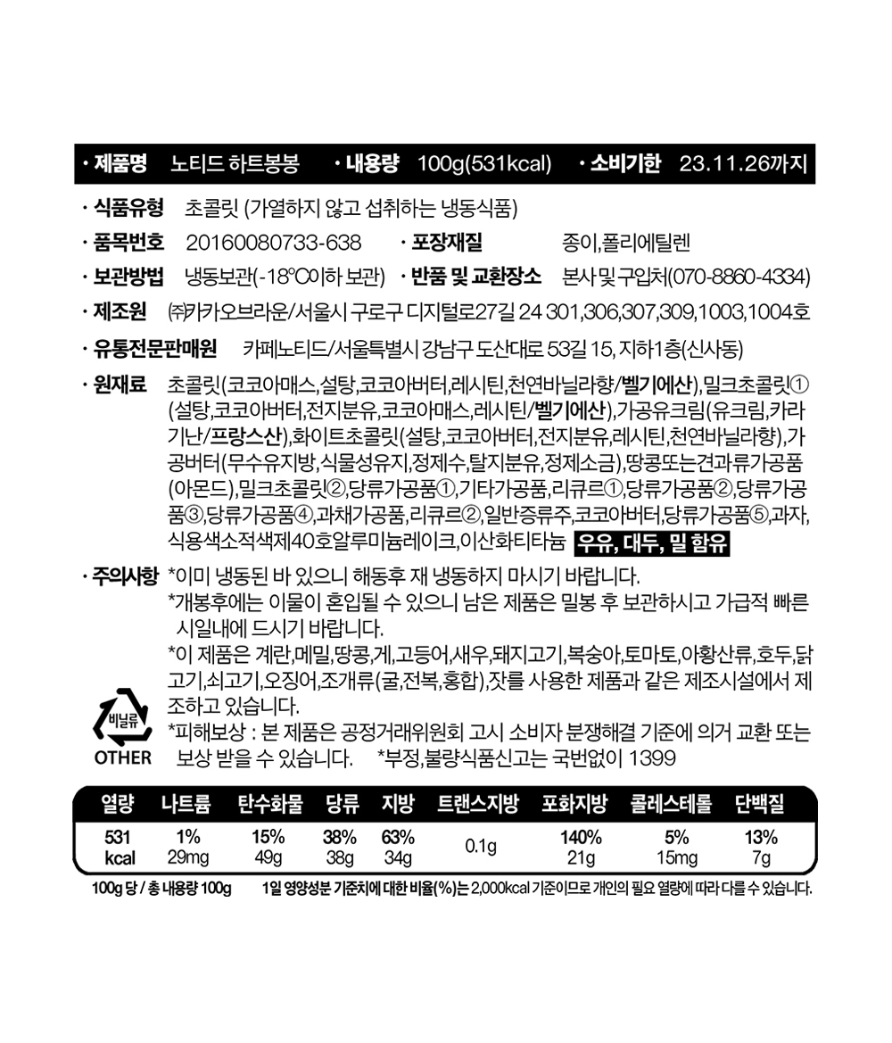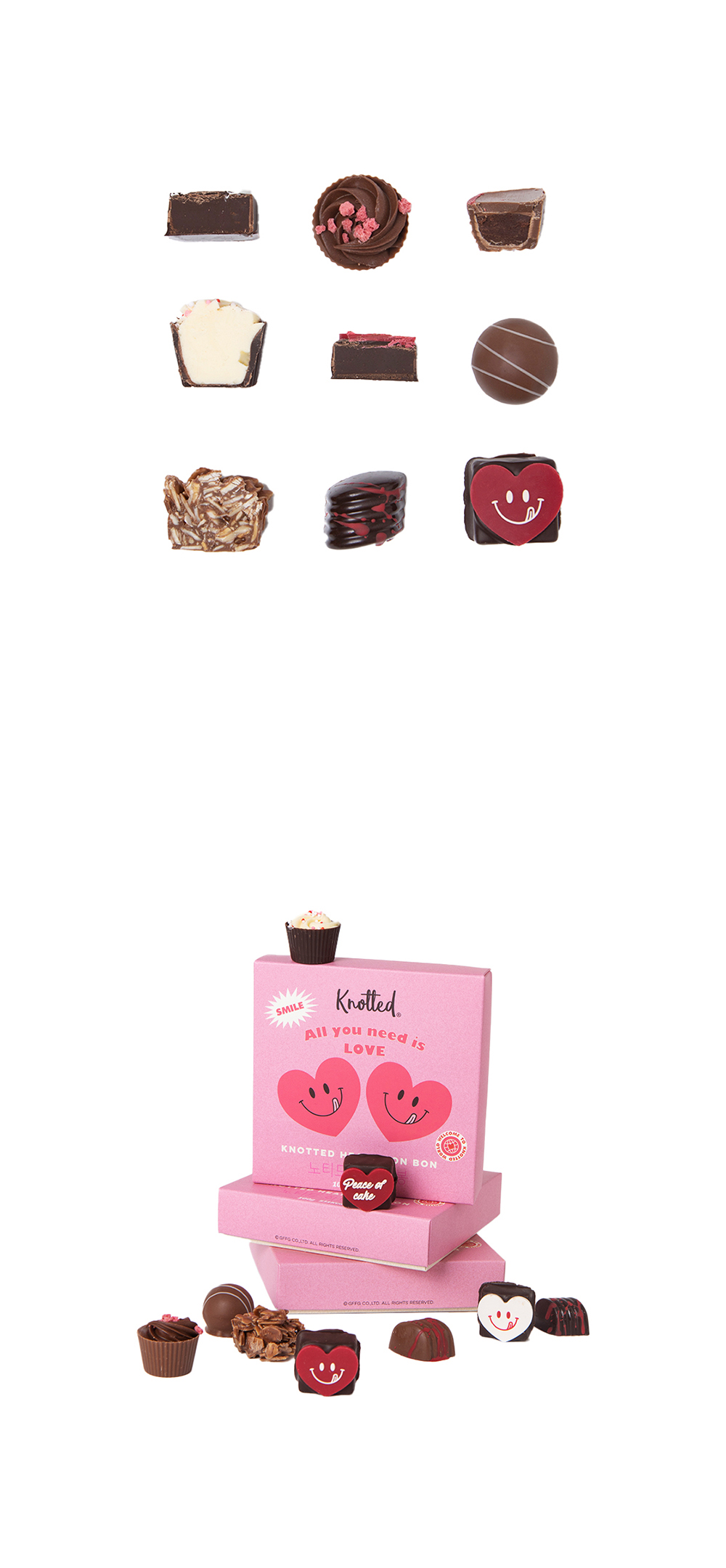 100% 카카오 버터와 천연 바닐라만을 사용하여 깊고 진한 초콜릿의 풍미를 자랑하는 노티드 초콜릿 봉봉입니다. 각양각색의 매력을 살린 9종의 초콜릿을 모두 맛 볼수 있어요.