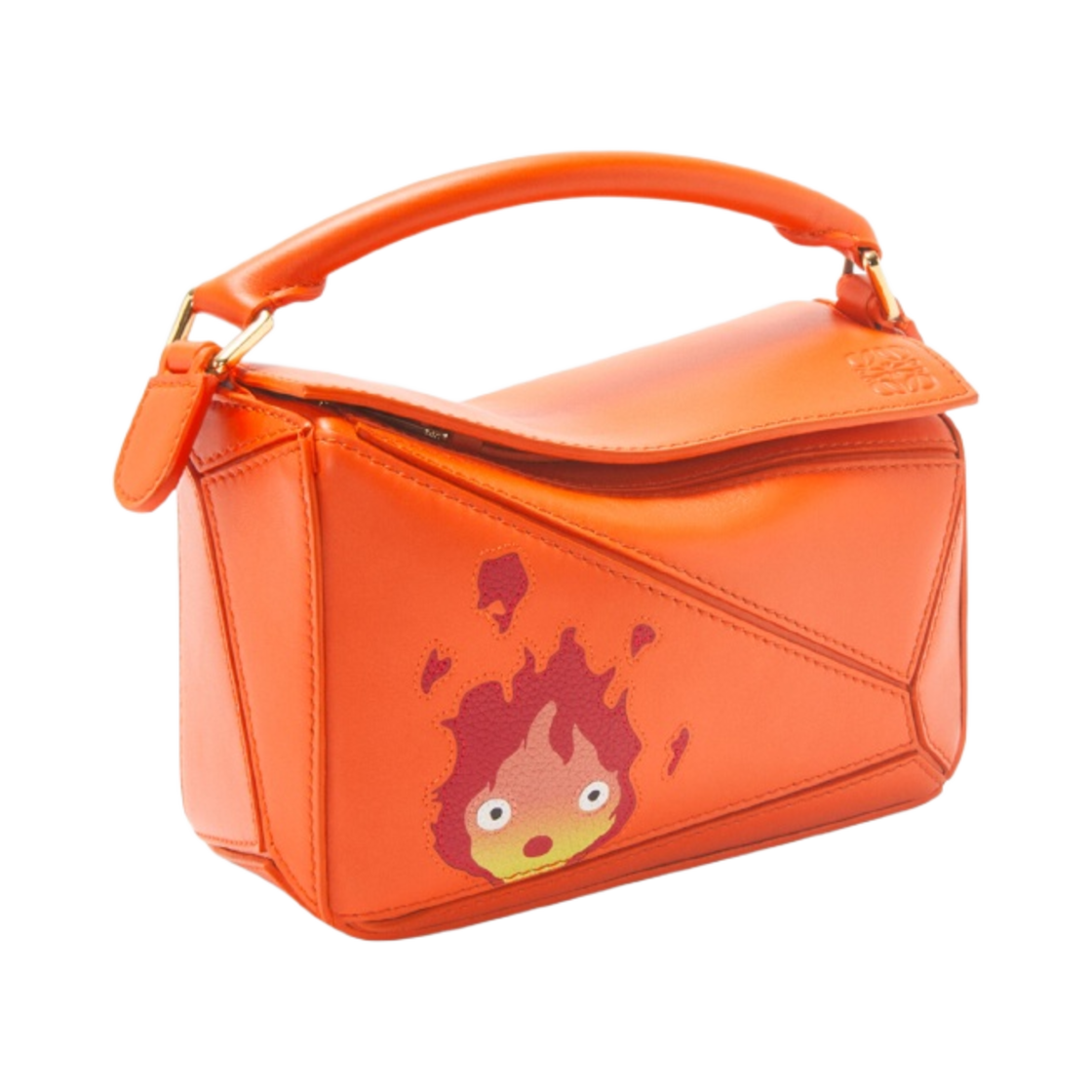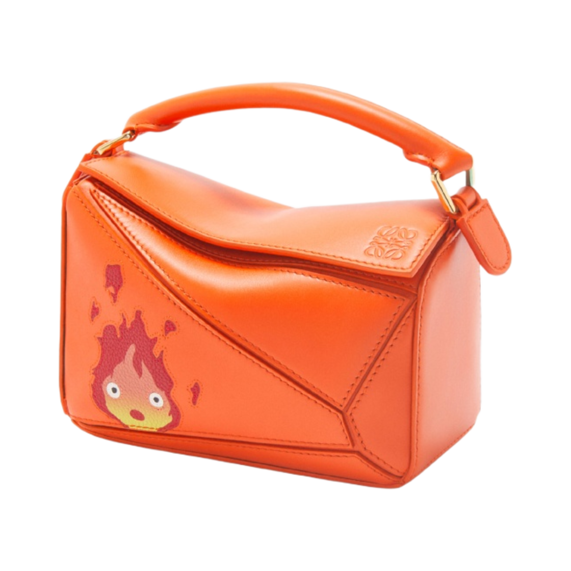 Loewe x Howl's Moving Castle Calcifer Mini Puzzle Bag in Satin Calfskin Orange
