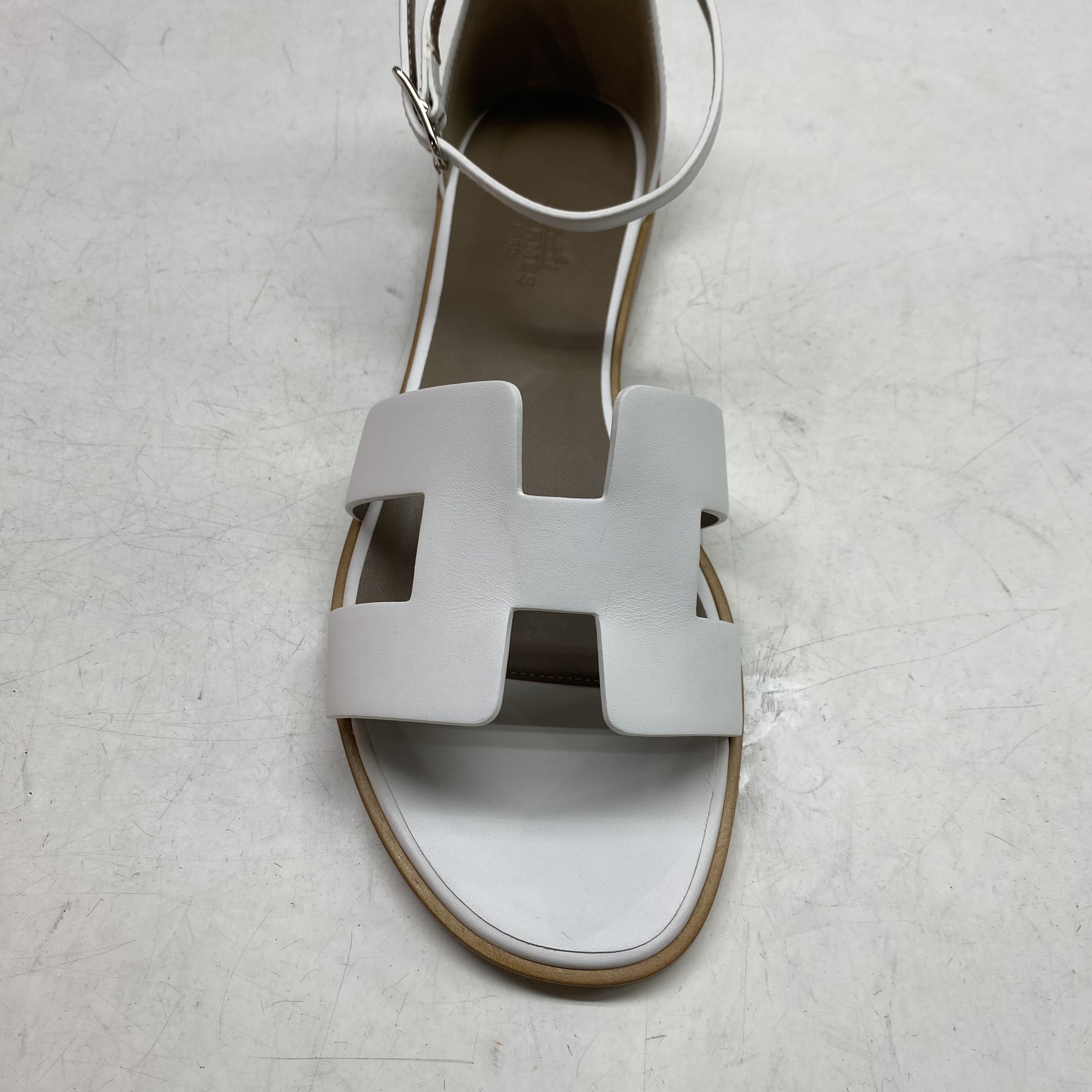 (W) Hermes Santorini Sandal Calfskin & Blanc