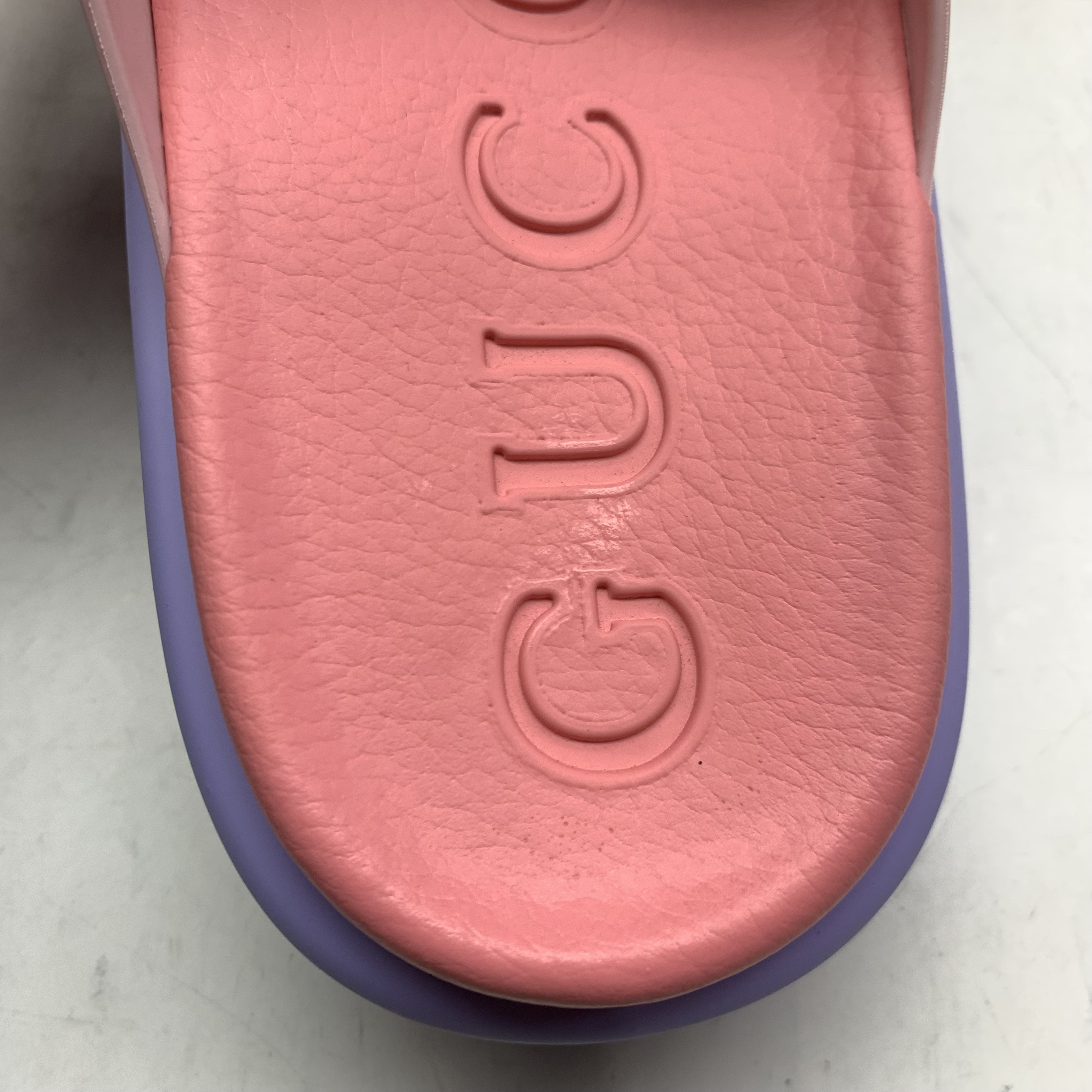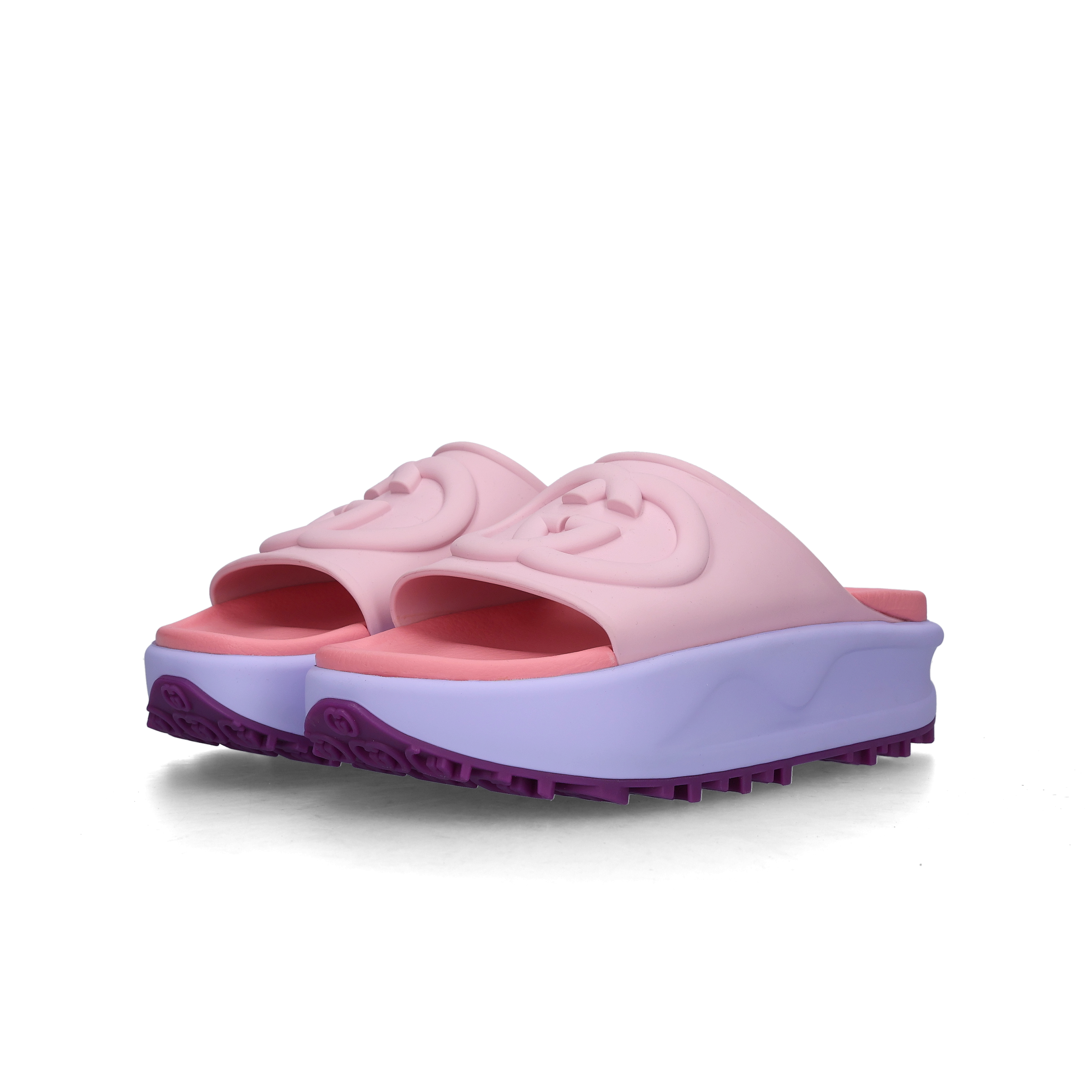 (W) Gucci Slide Sandal with Interlocking G Pink Purple Rubber