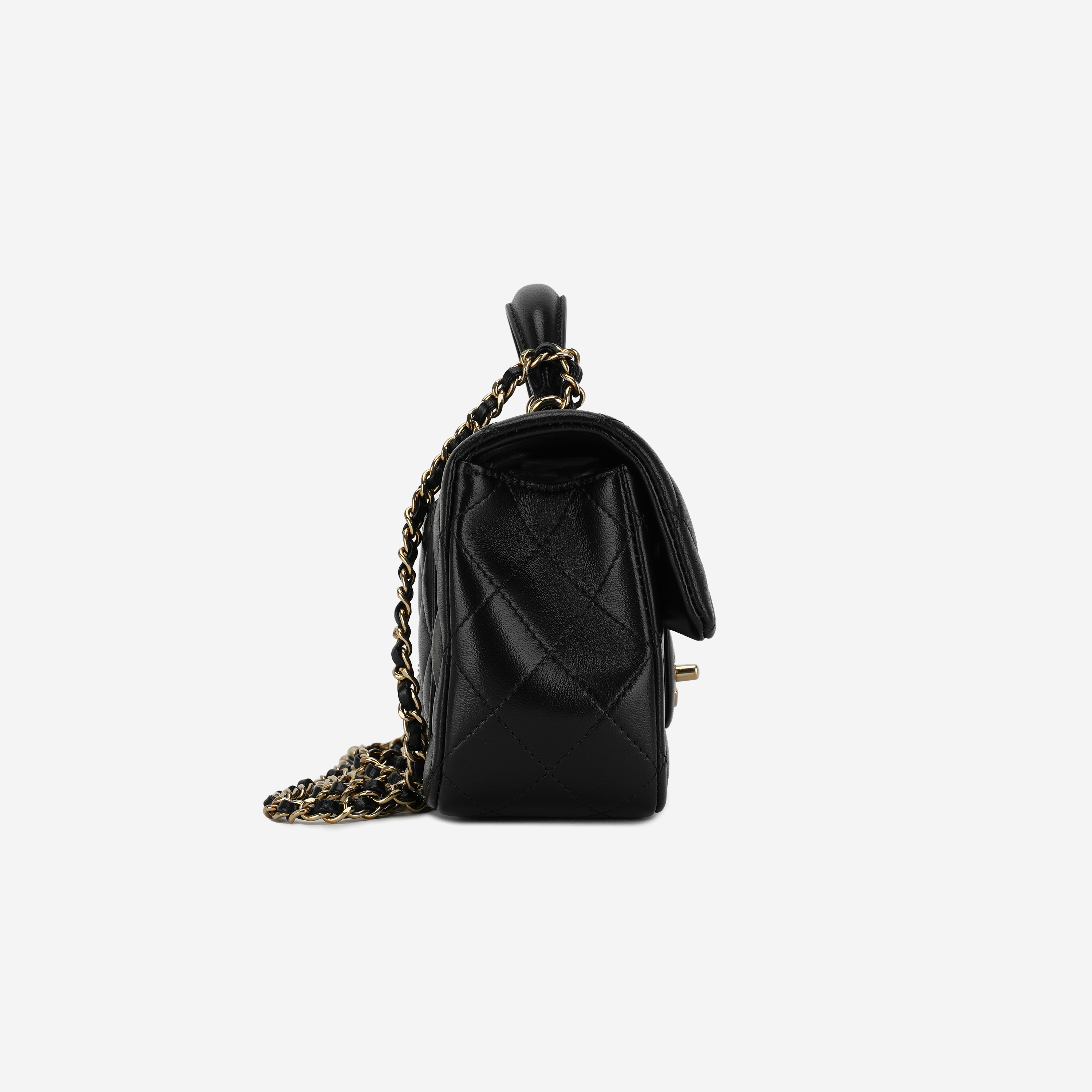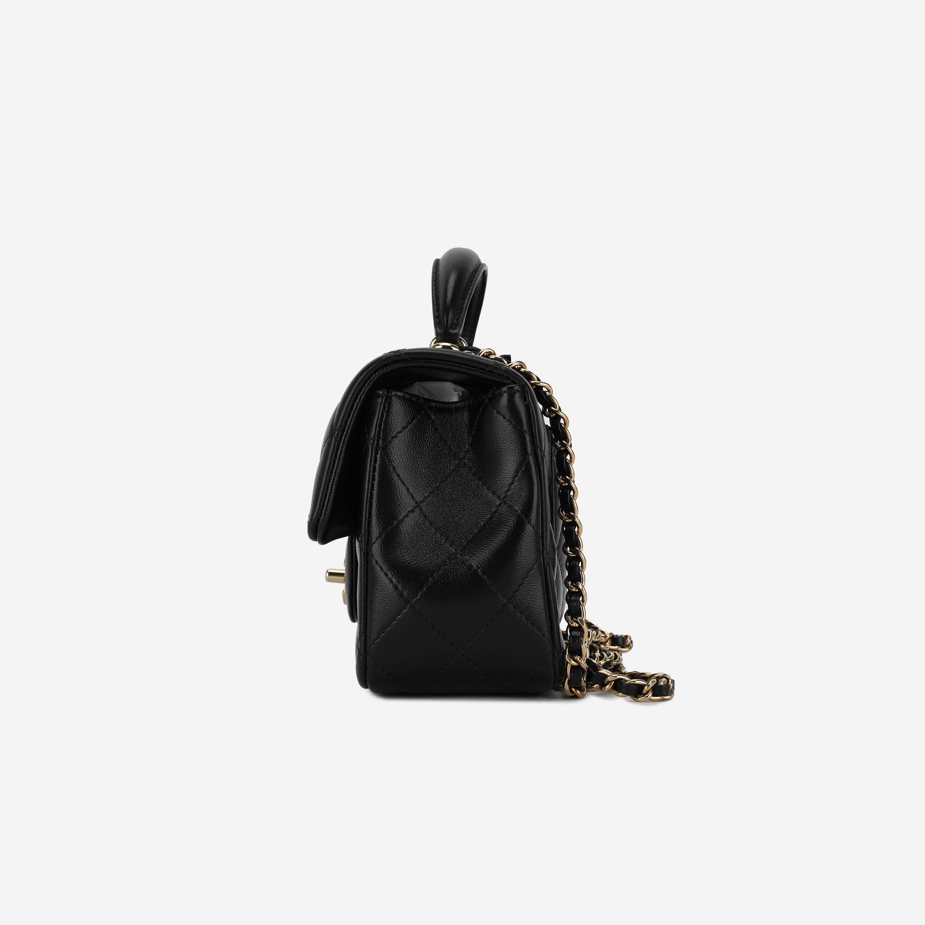 Chanel Mini Flap Bag with Top Handle Lambskin & Gold Black