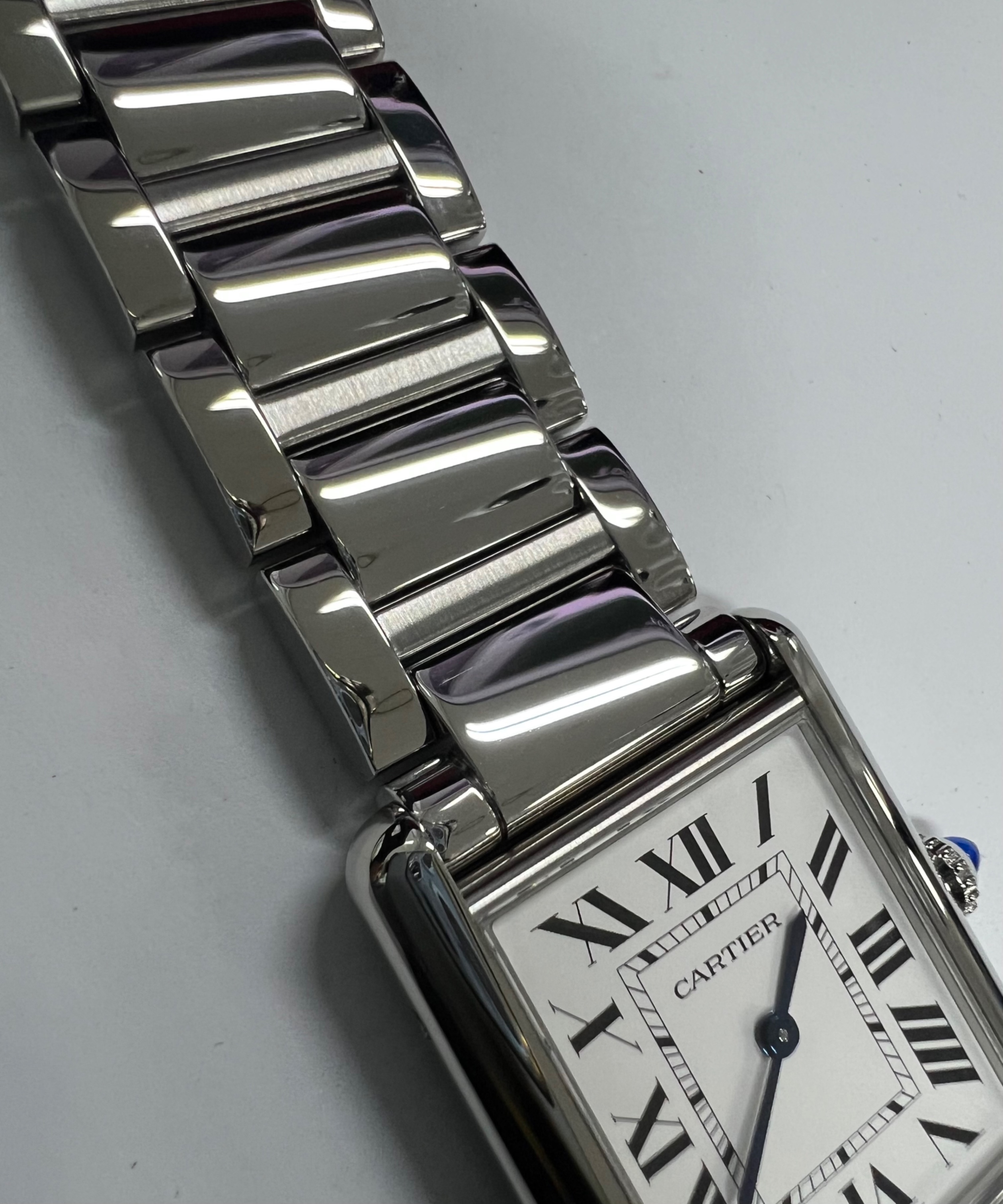 까르띠에 탱크 머스트 워치 라지 쿼츠 스틸 브레이슬릿 스틸
