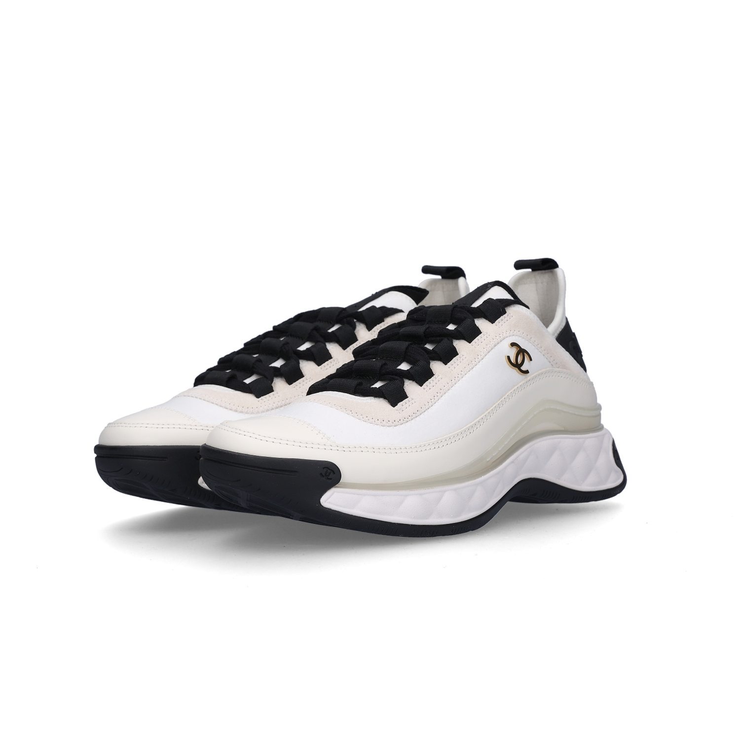 (W) 샤넬 믹스드 파이버 스니커즈 벨벳 카프스킨 & 골드 메탈 아이보리
