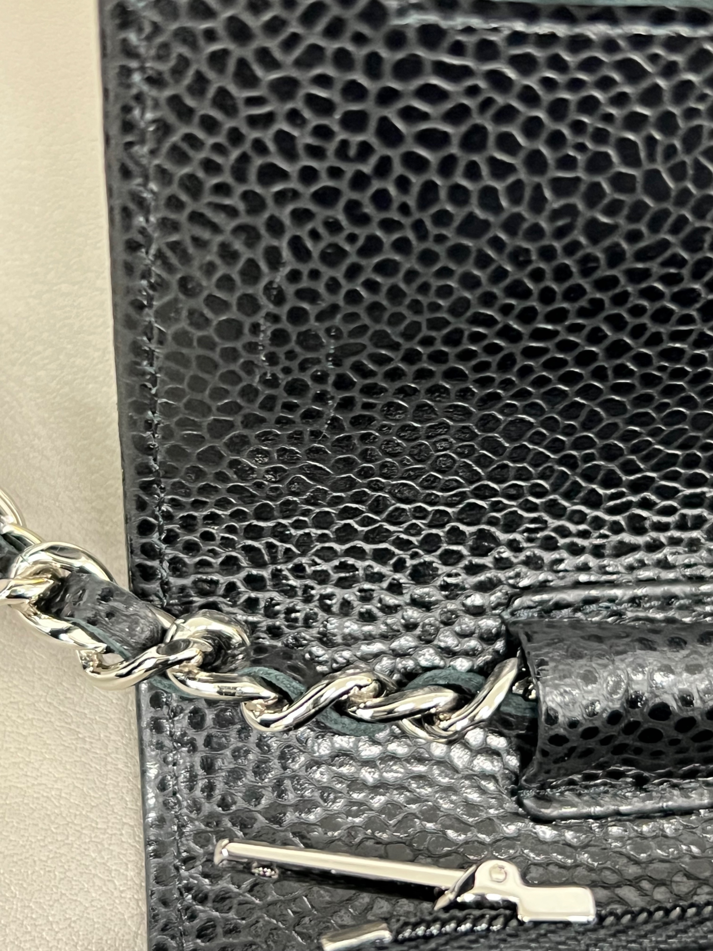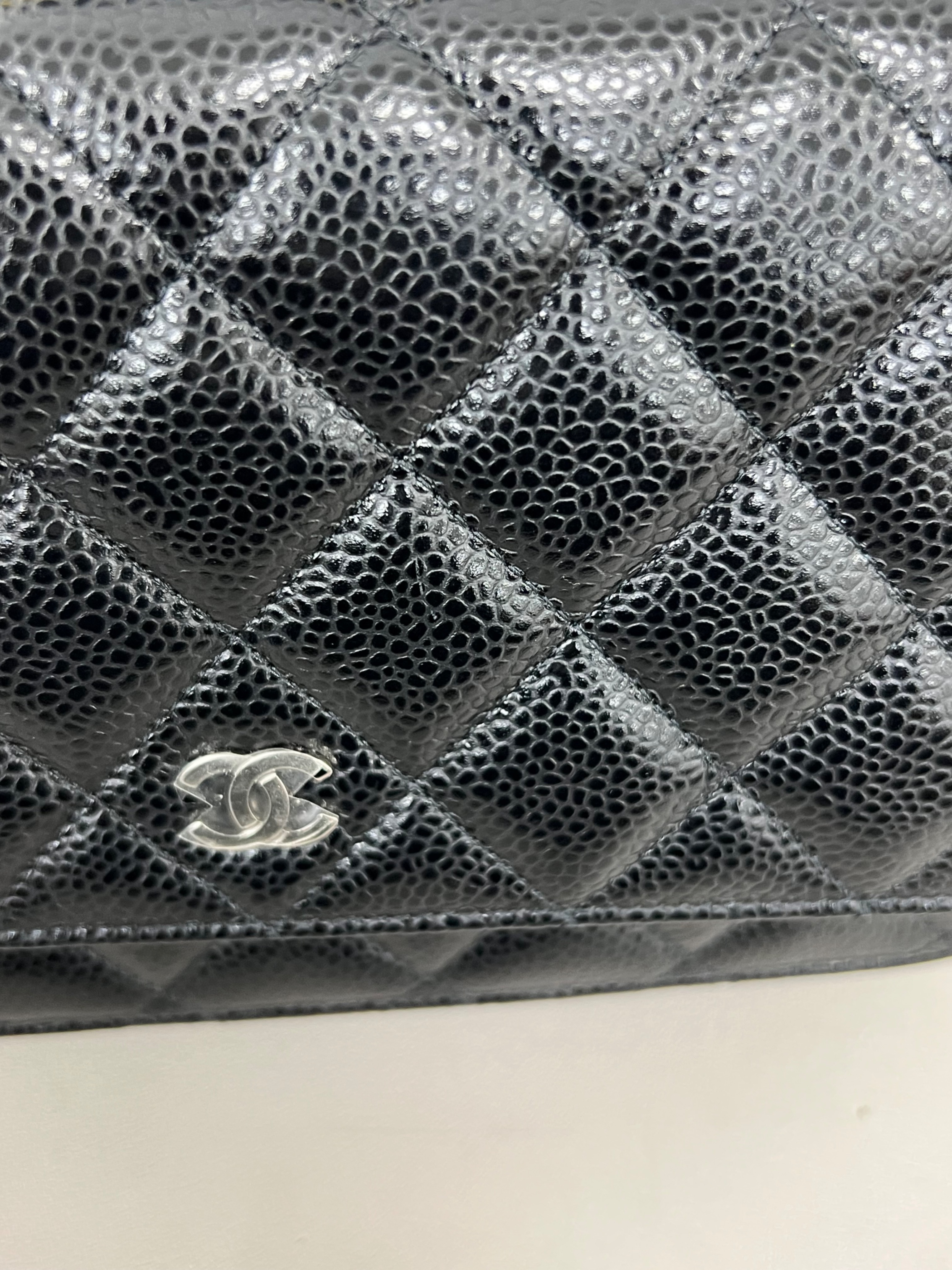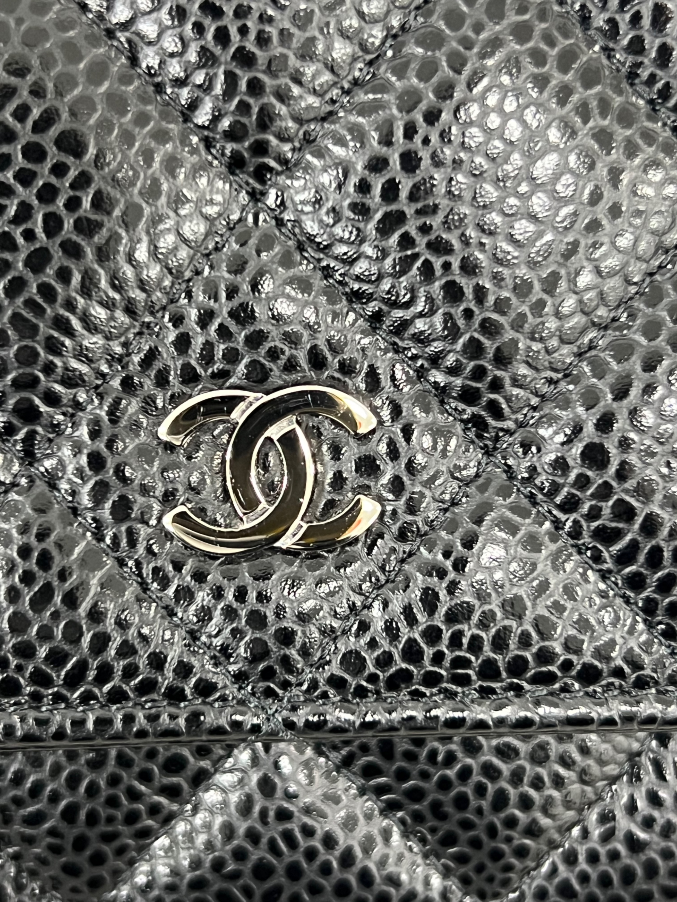 샤넬 클래식 체인 지갑 그레인드 카프스킨 & 실버 메탈 블랙