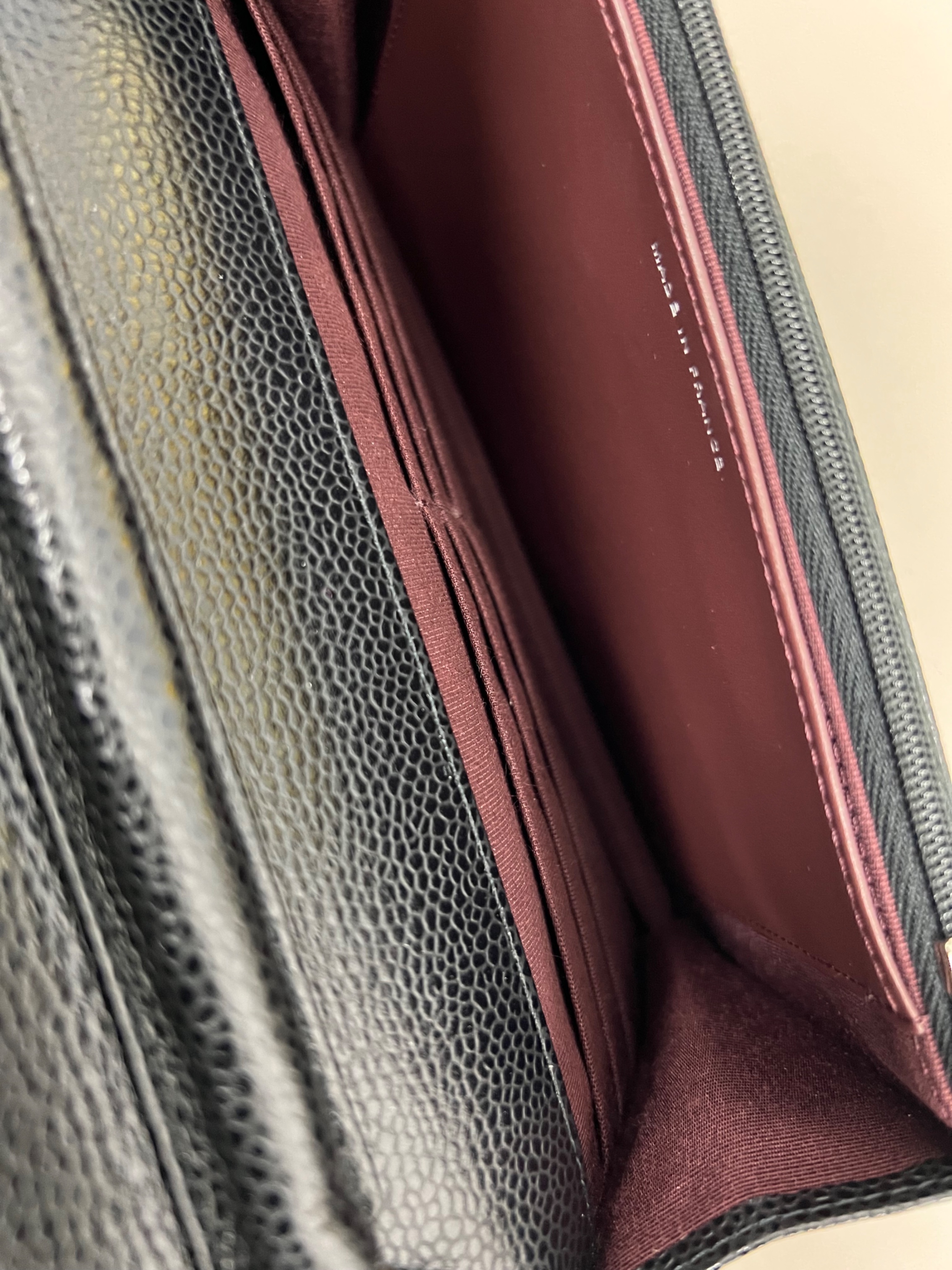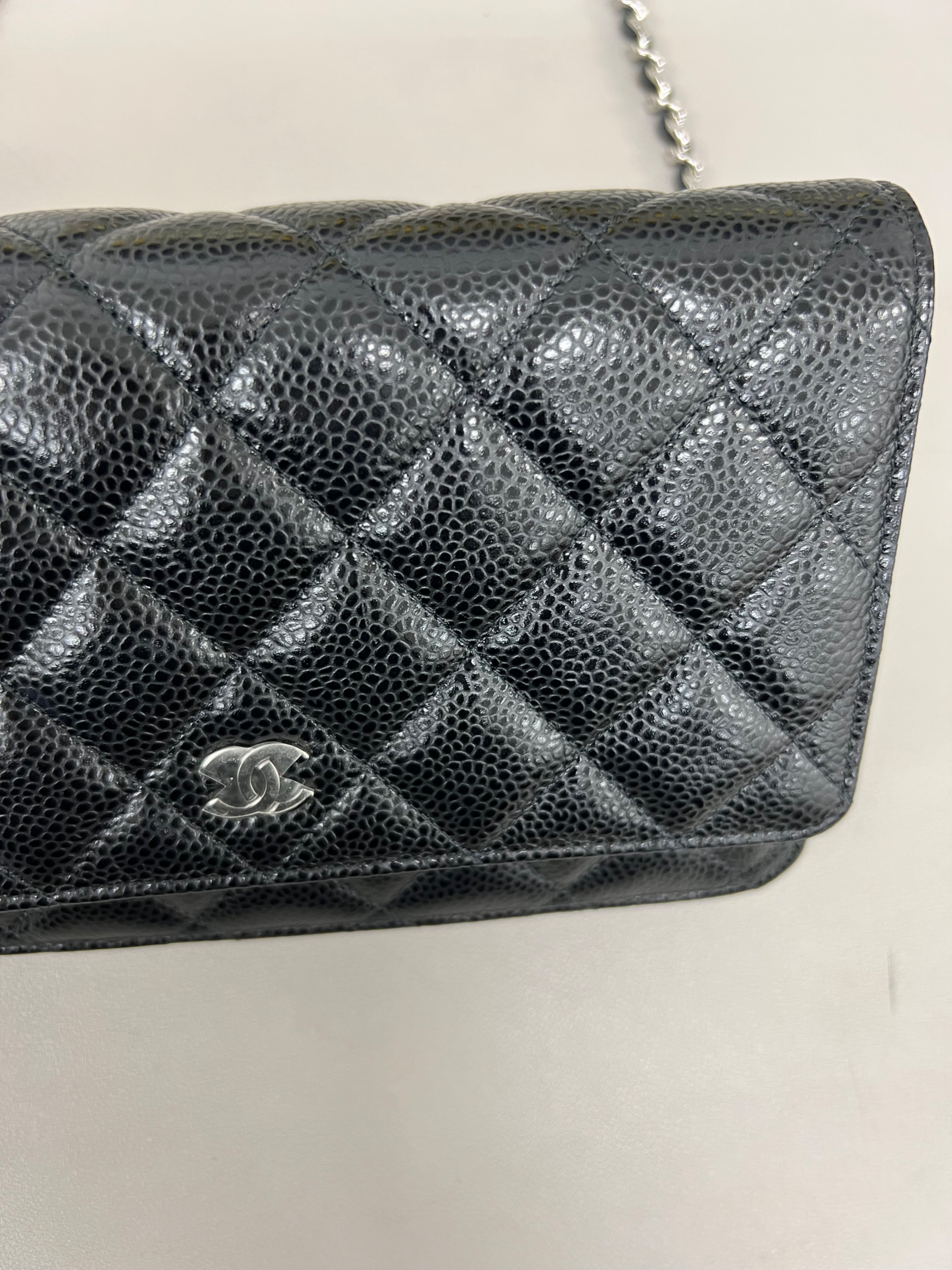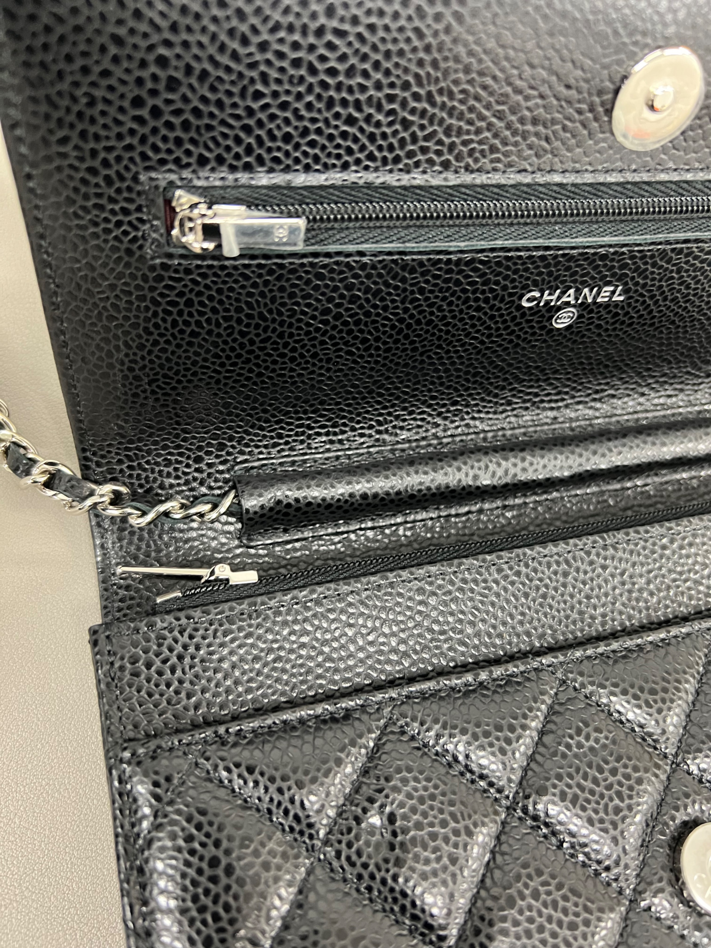 샤넬 클래식 체인 지갑 그레인드 카프스킨 & 실버 메탈 블랙