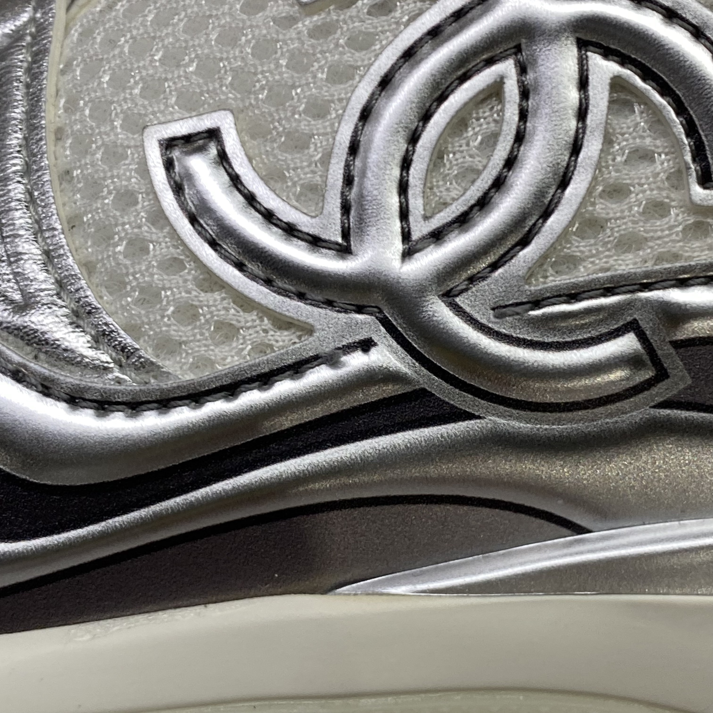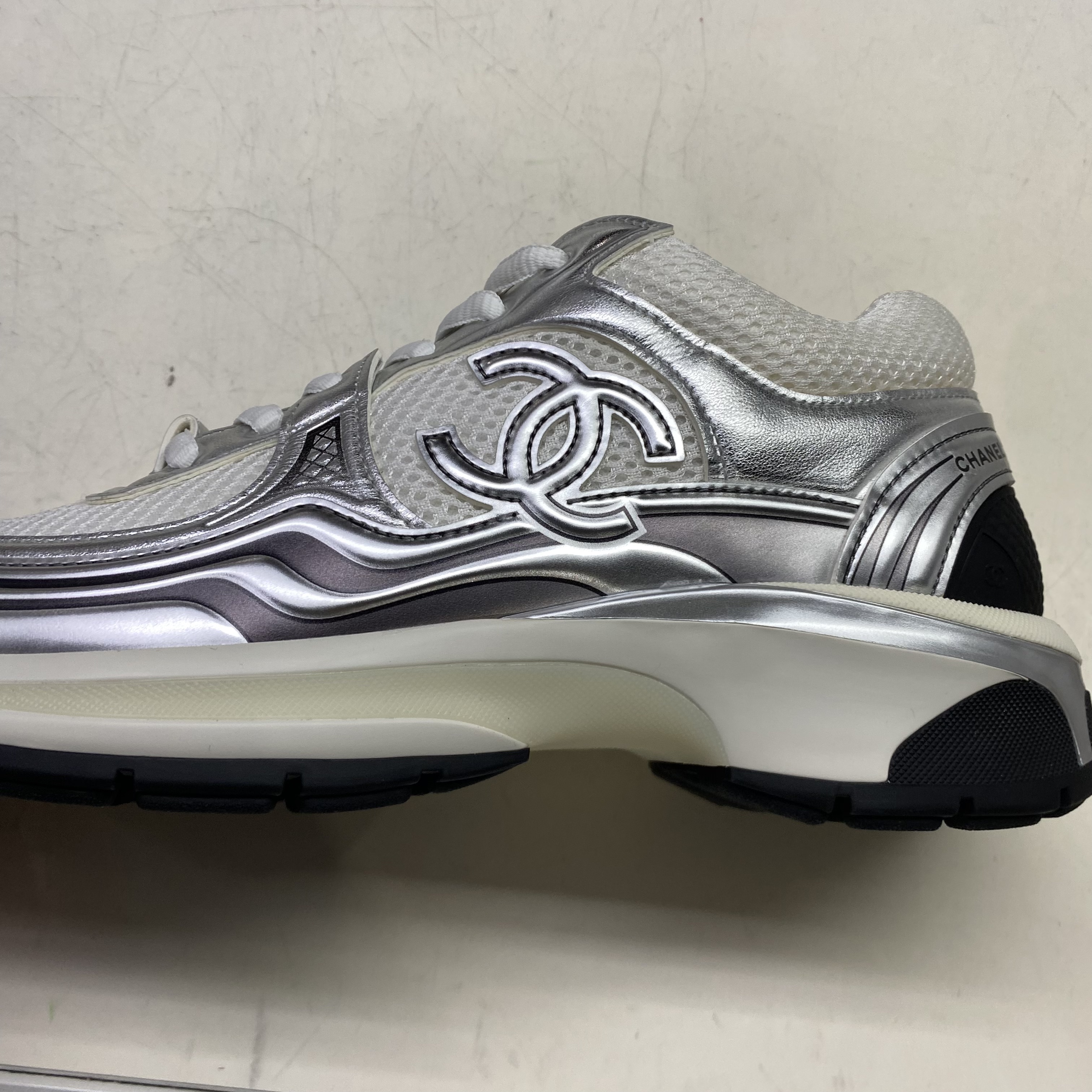 (W) Chanel Sneakers Fabric Laminated & White Silver