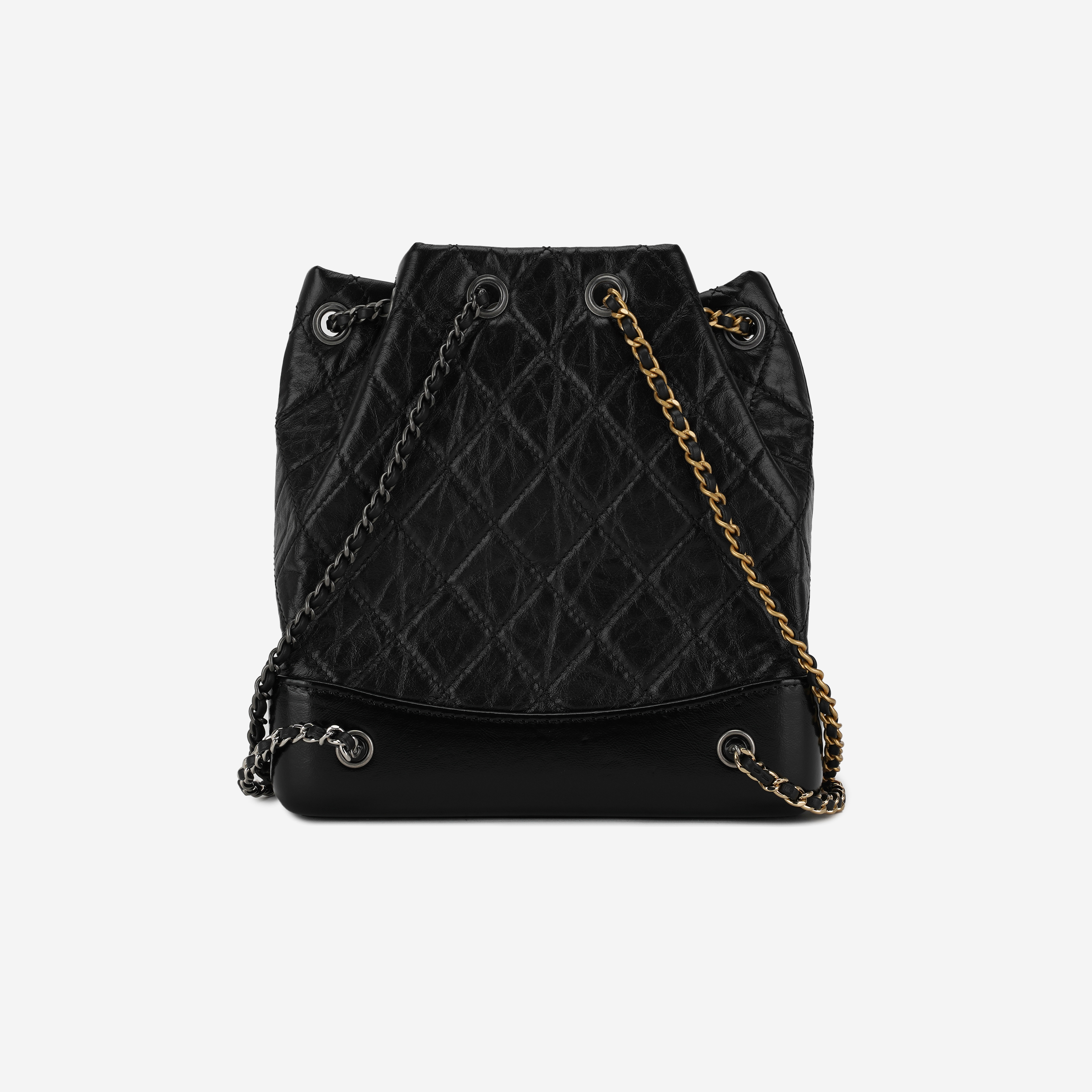 Chanel Small Gabrielle Backpack Aged Calfskin & Gold Silver Black