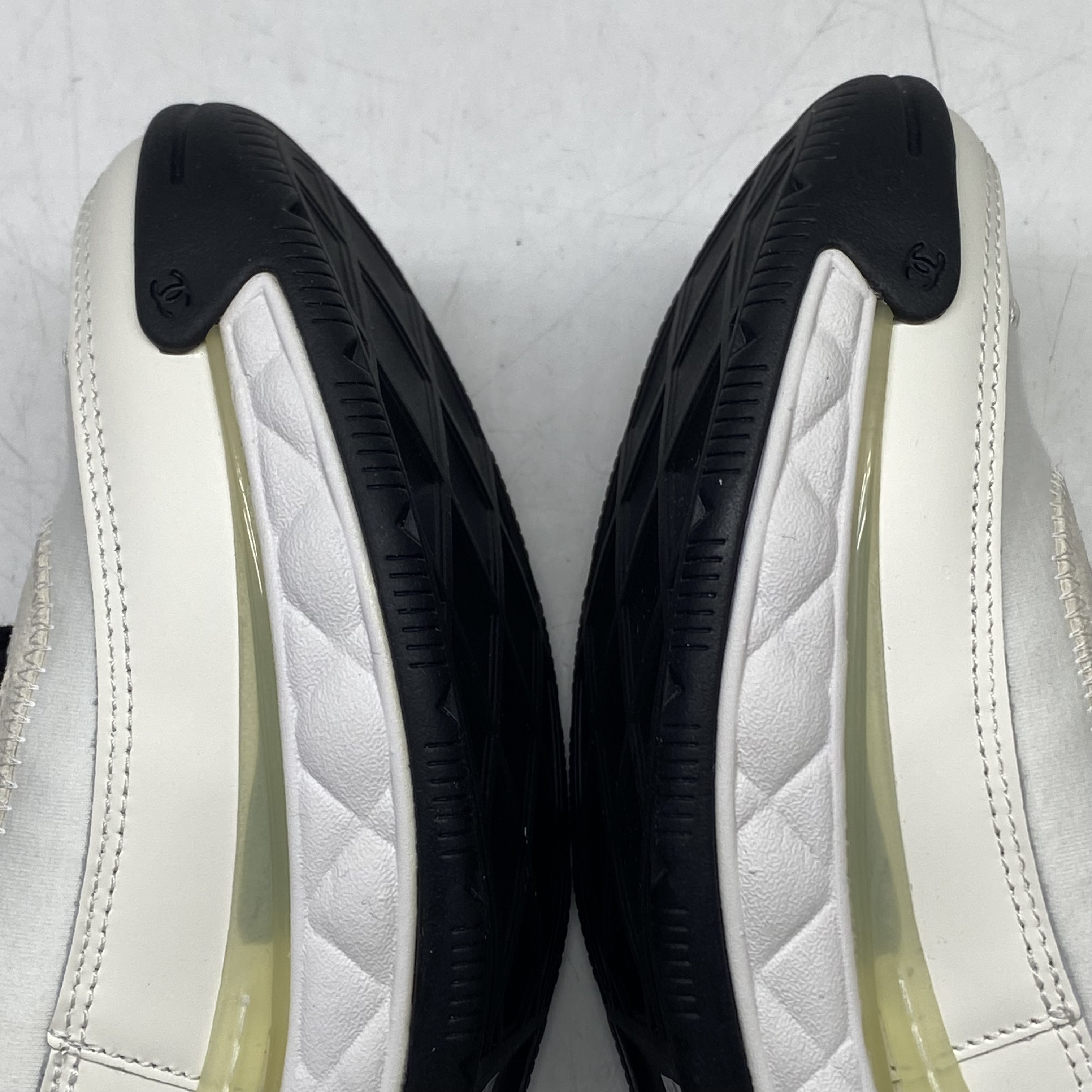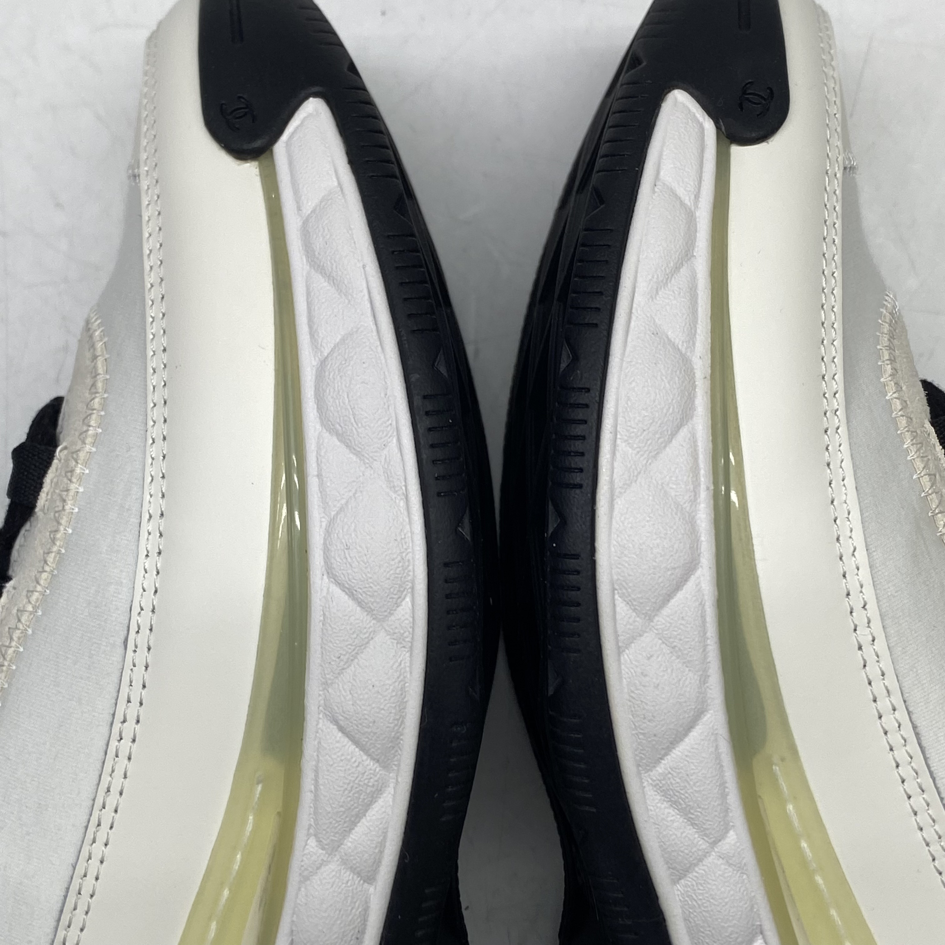 (W) 샤넬 믹스드 파이버 스니커즈 벨벳 카프스킨 & 골드 메탈 아이보리