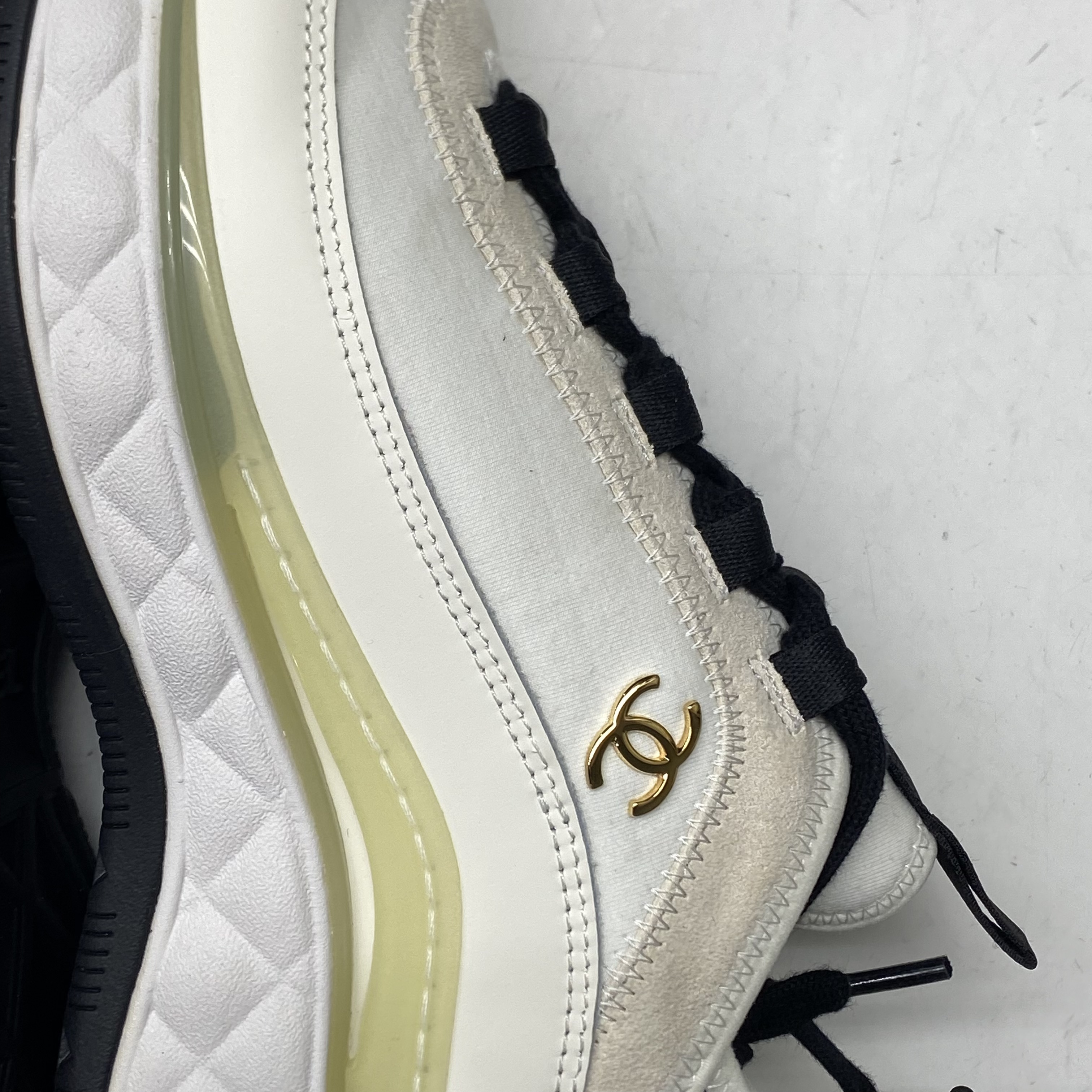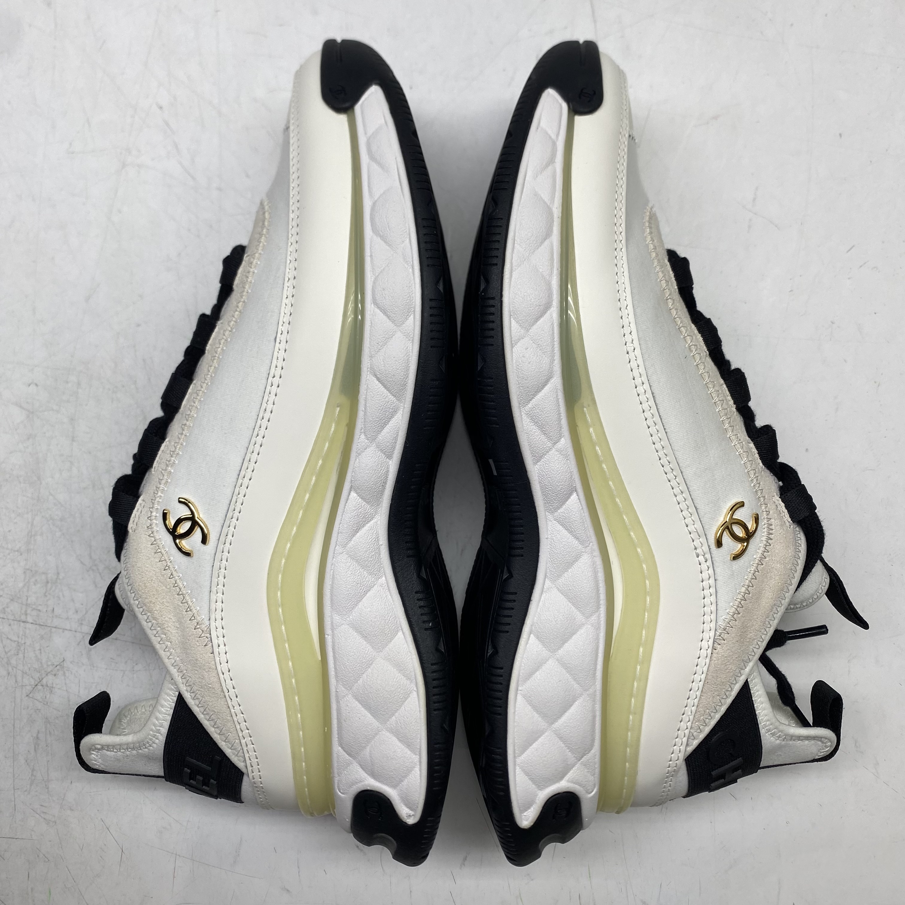 (W) Chanel Mixed Fibers Sneakers Velvet Calfskin & Gold Ivory