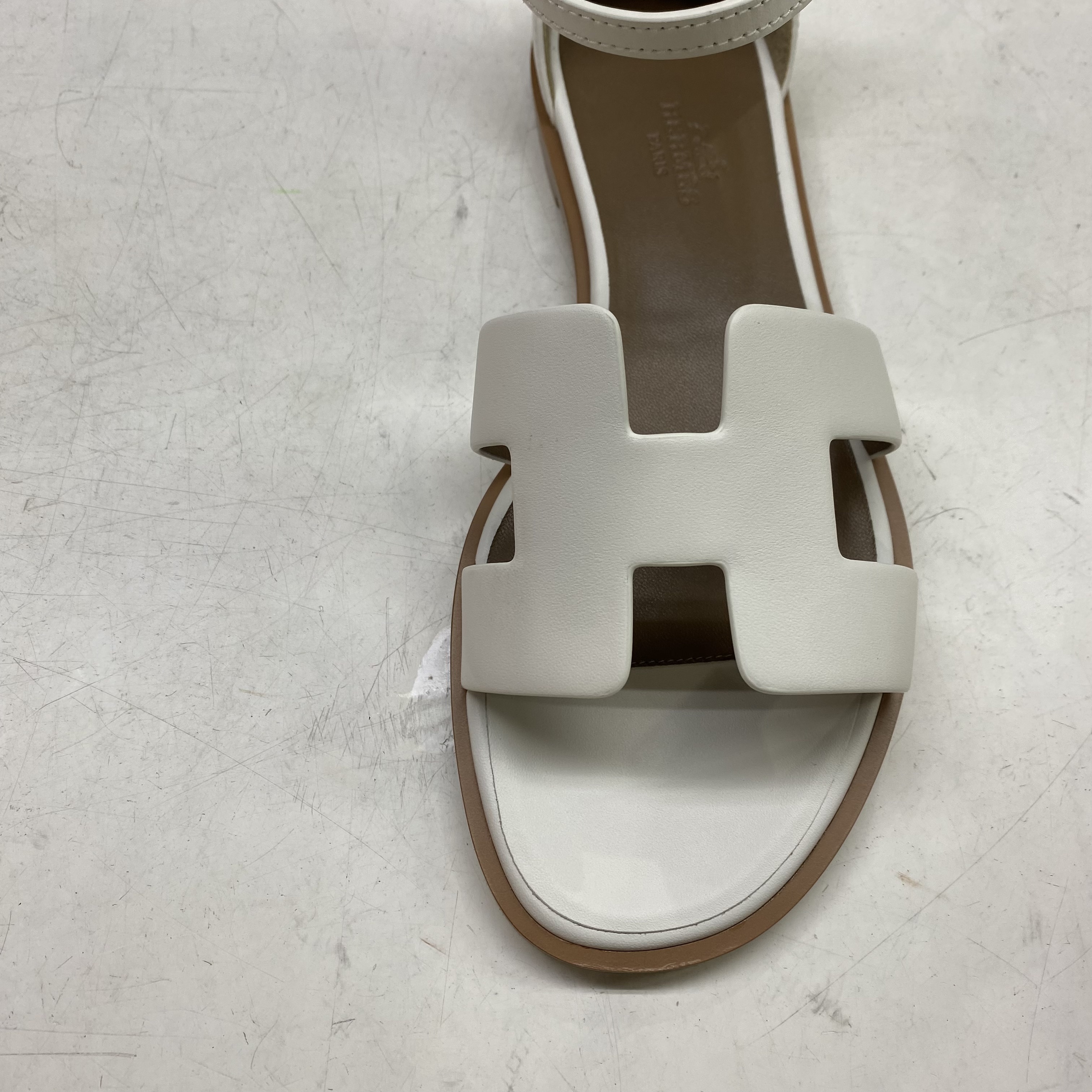 (W) Hermes Oasis Sandal Calfskin & Blanc Piqures Havane