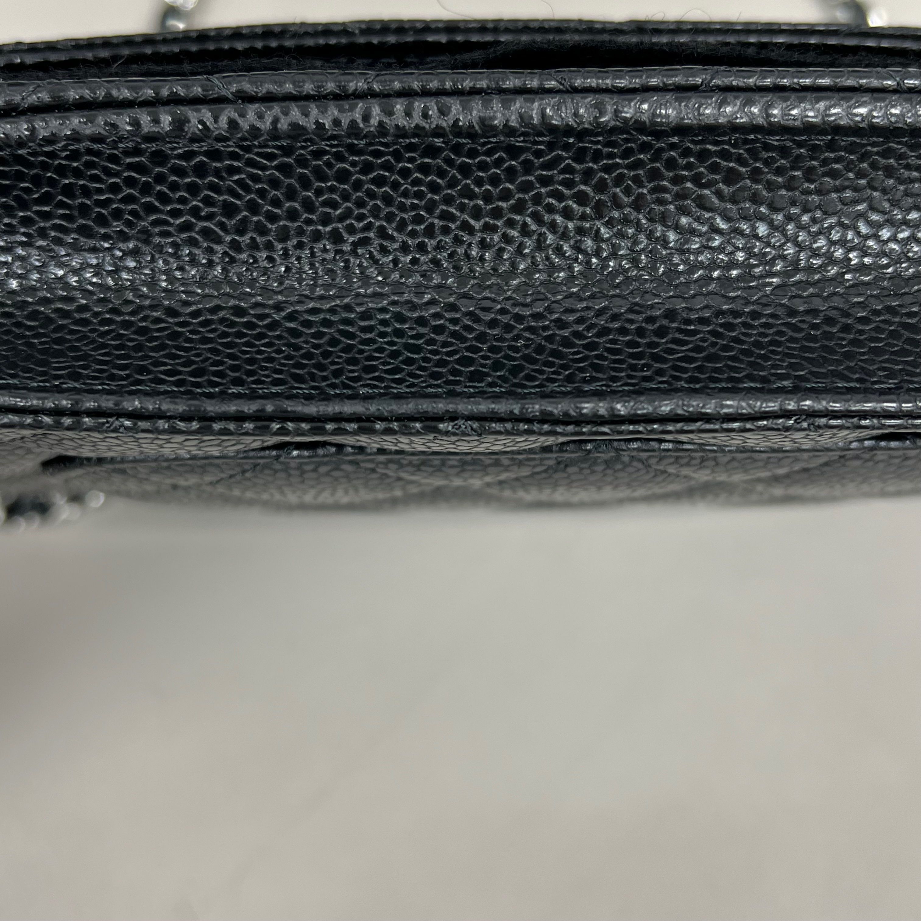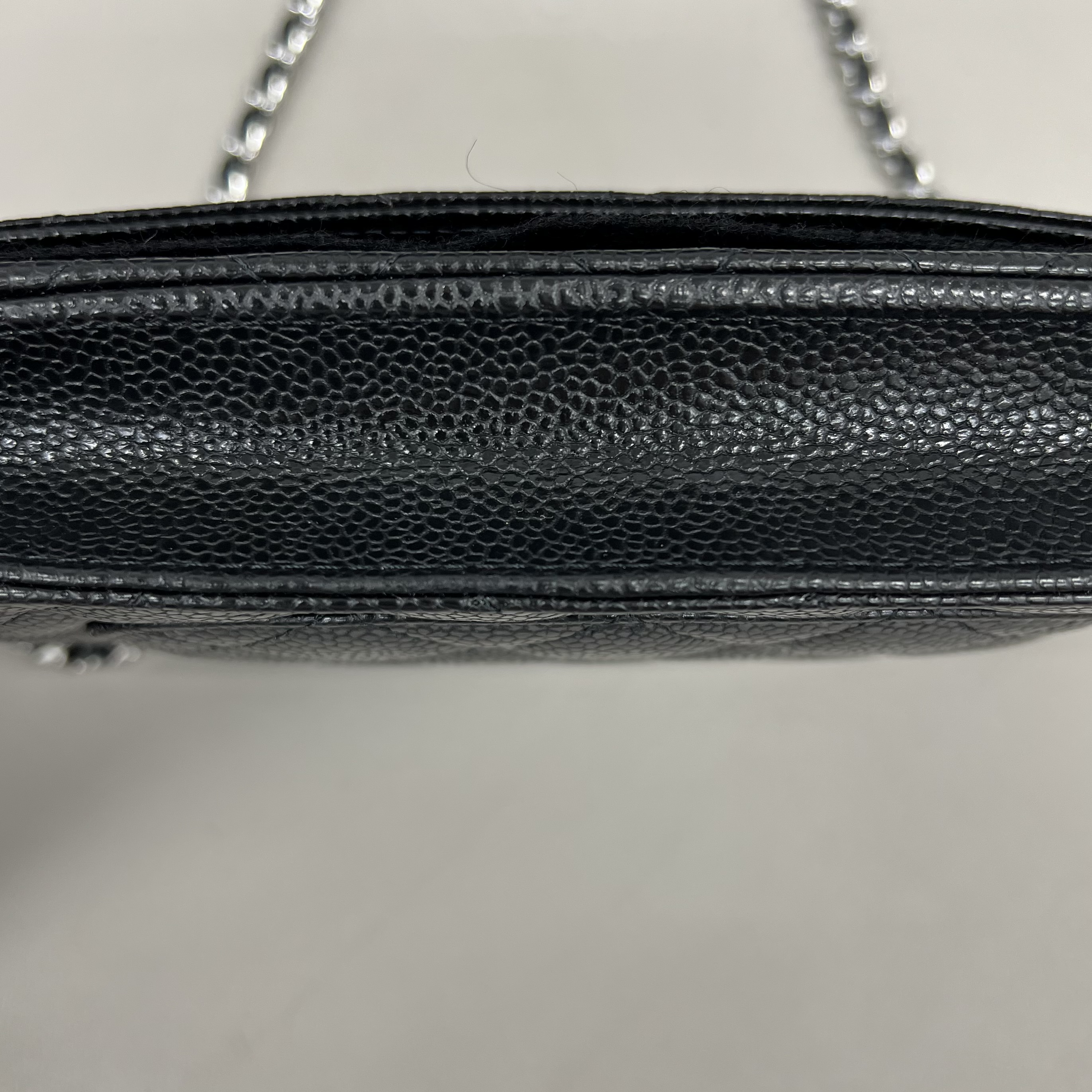 샤넬 클래식 체인 지갑 그레인드 카프스킨 & 실버 메탈 블랙