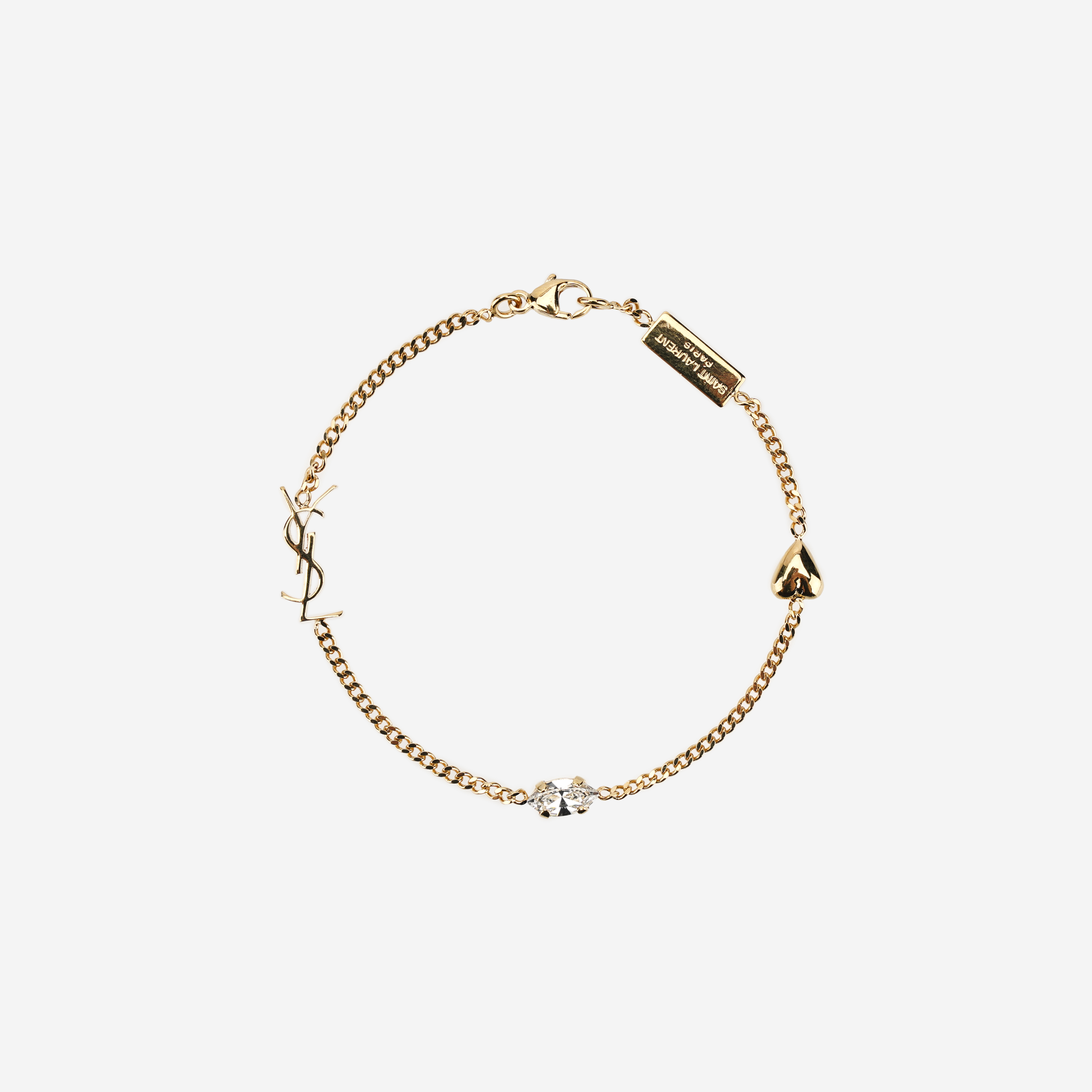 (W) Saint Laurent Opyum Heart Charm Bracelet in Metal Aged Brass Gold