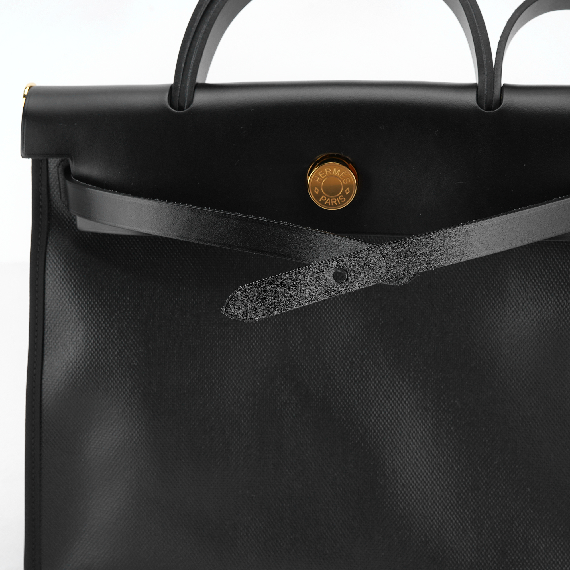 Hermes Herbag Zip 31 Bag Sellier H Berlin Canvas Hunter Cowhide & Gold Noir Ecru