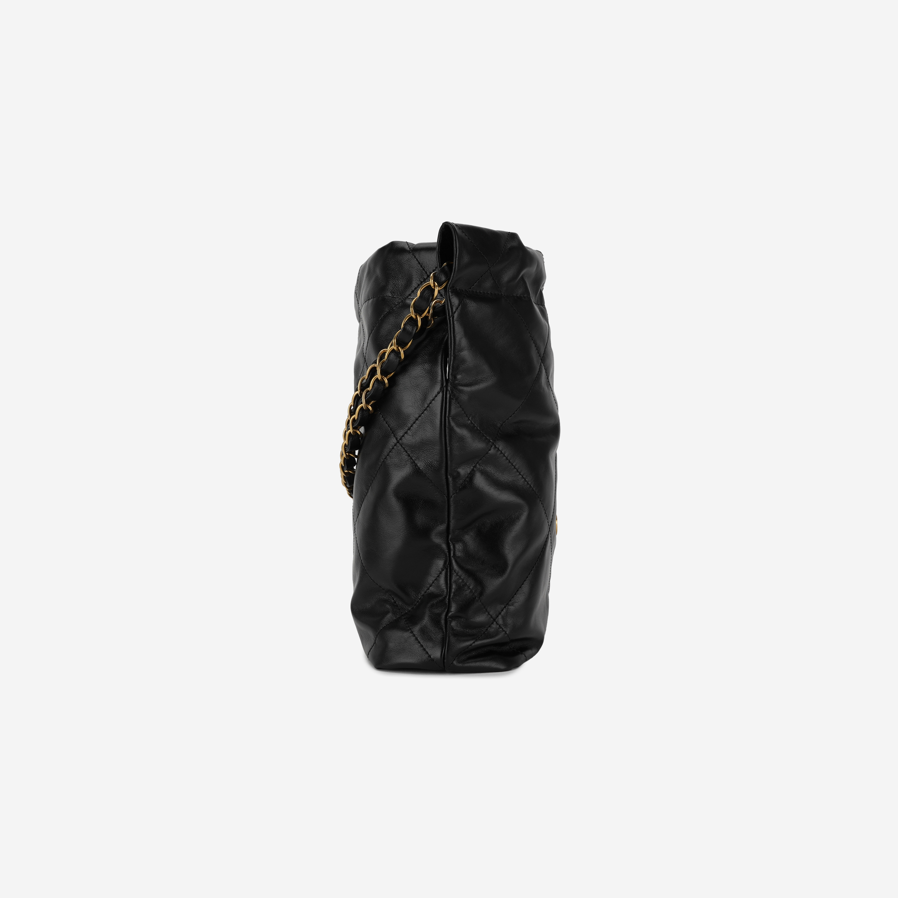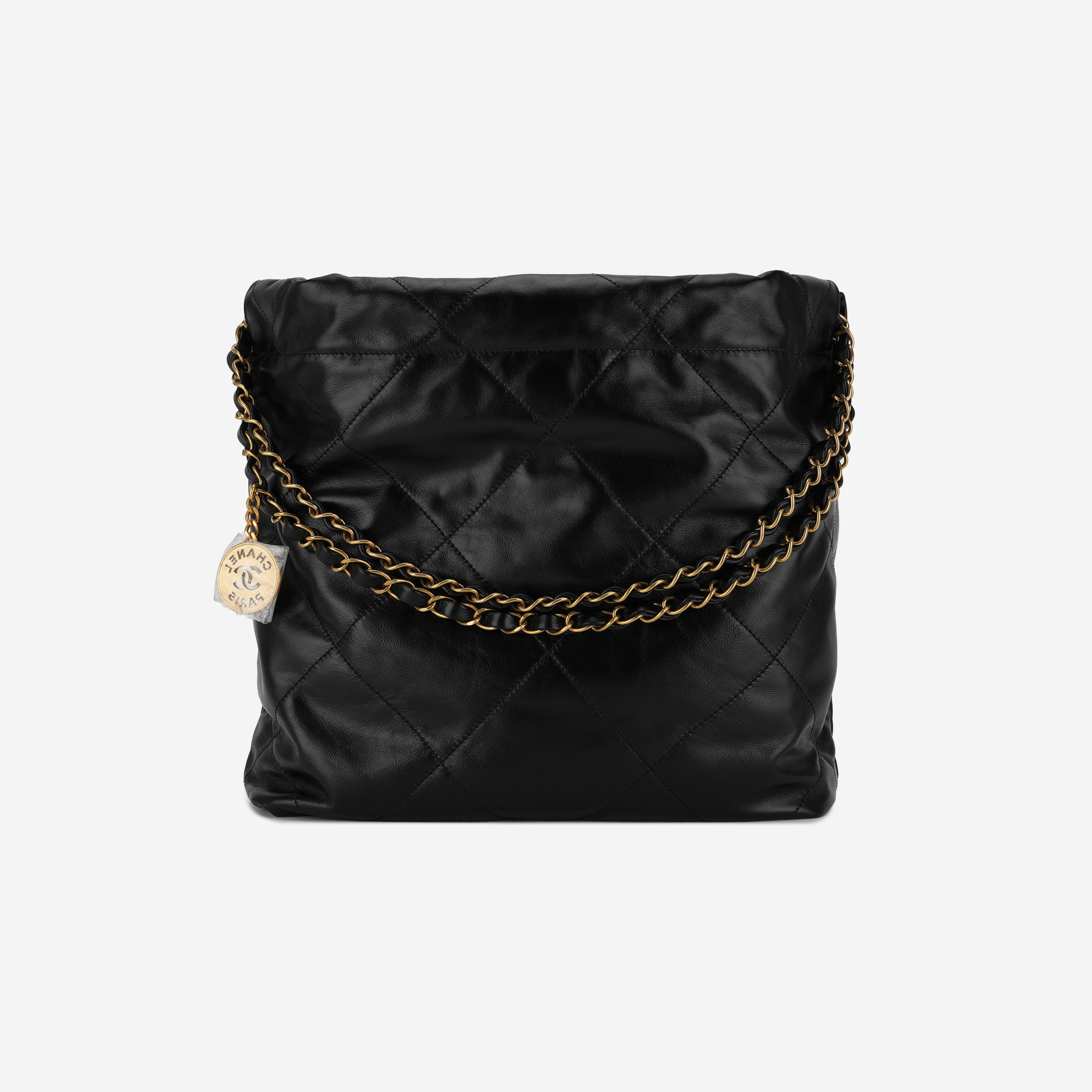 샤넬 22 스몰 핸드백 샤이니 카프스킨 & 골드 메탈 블랙