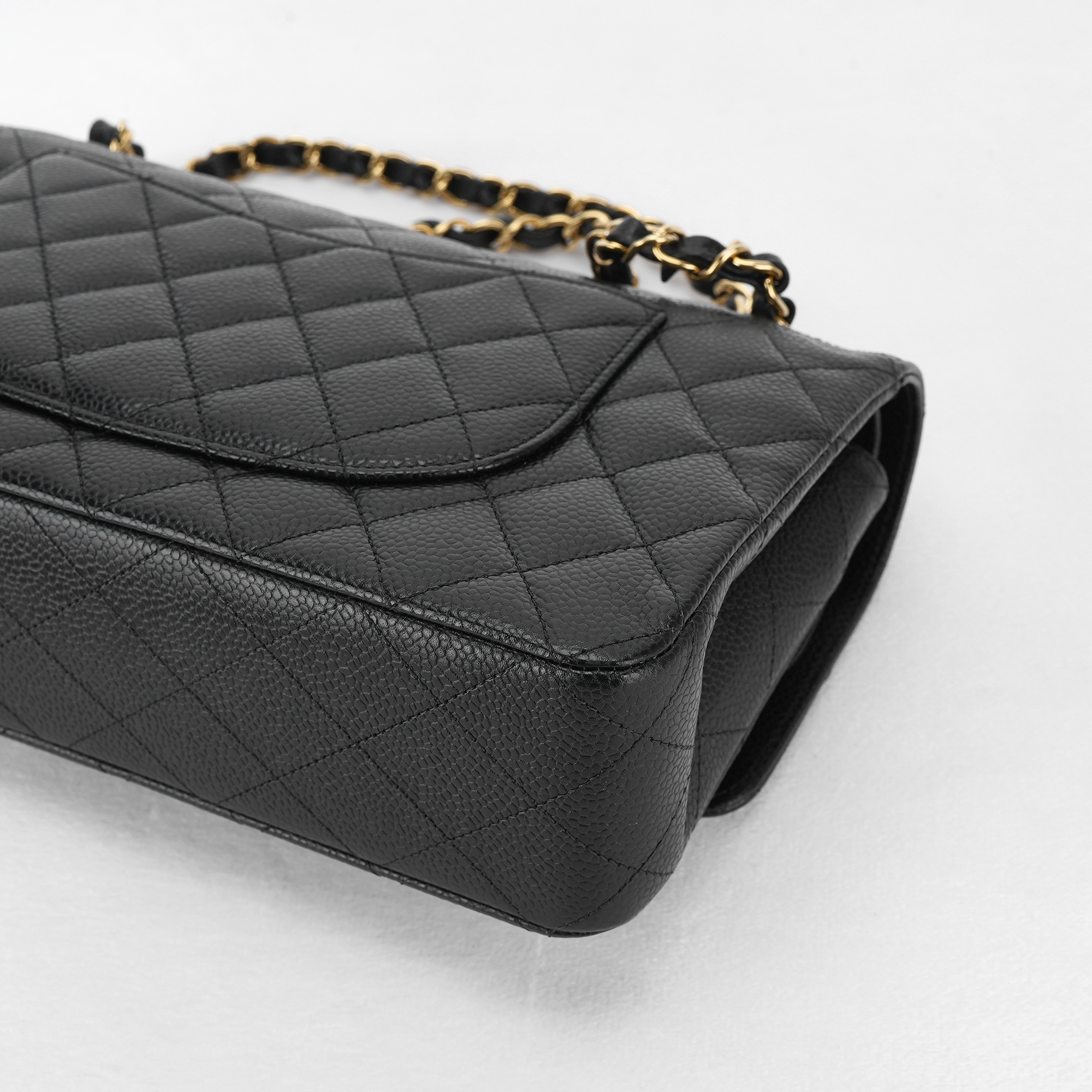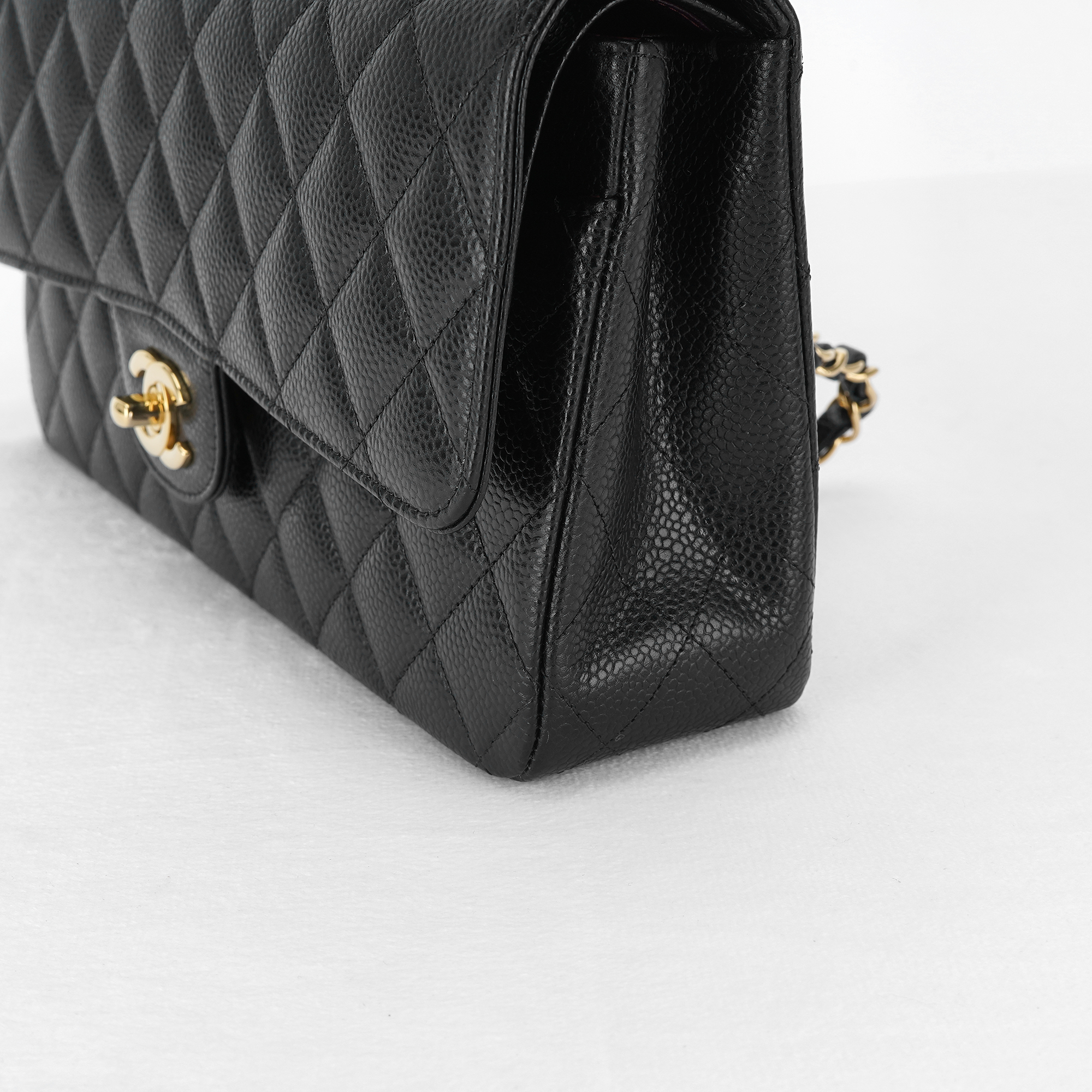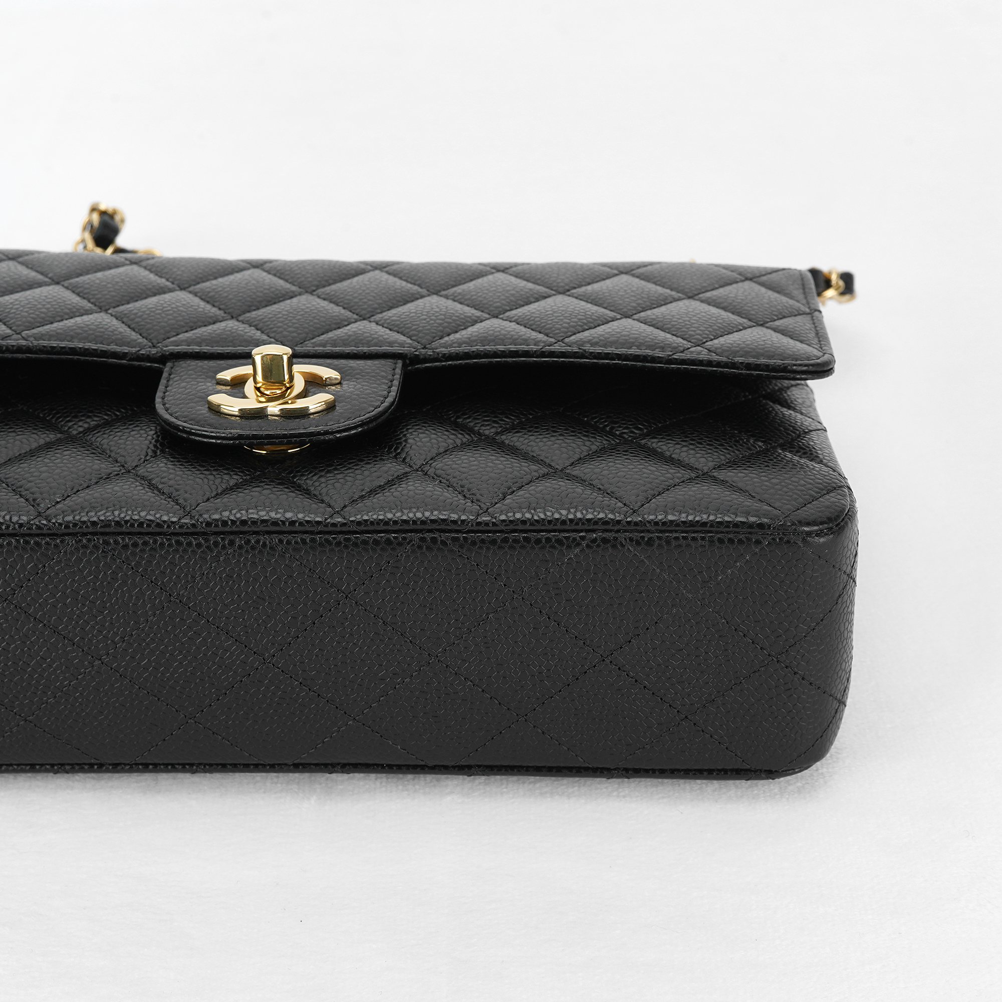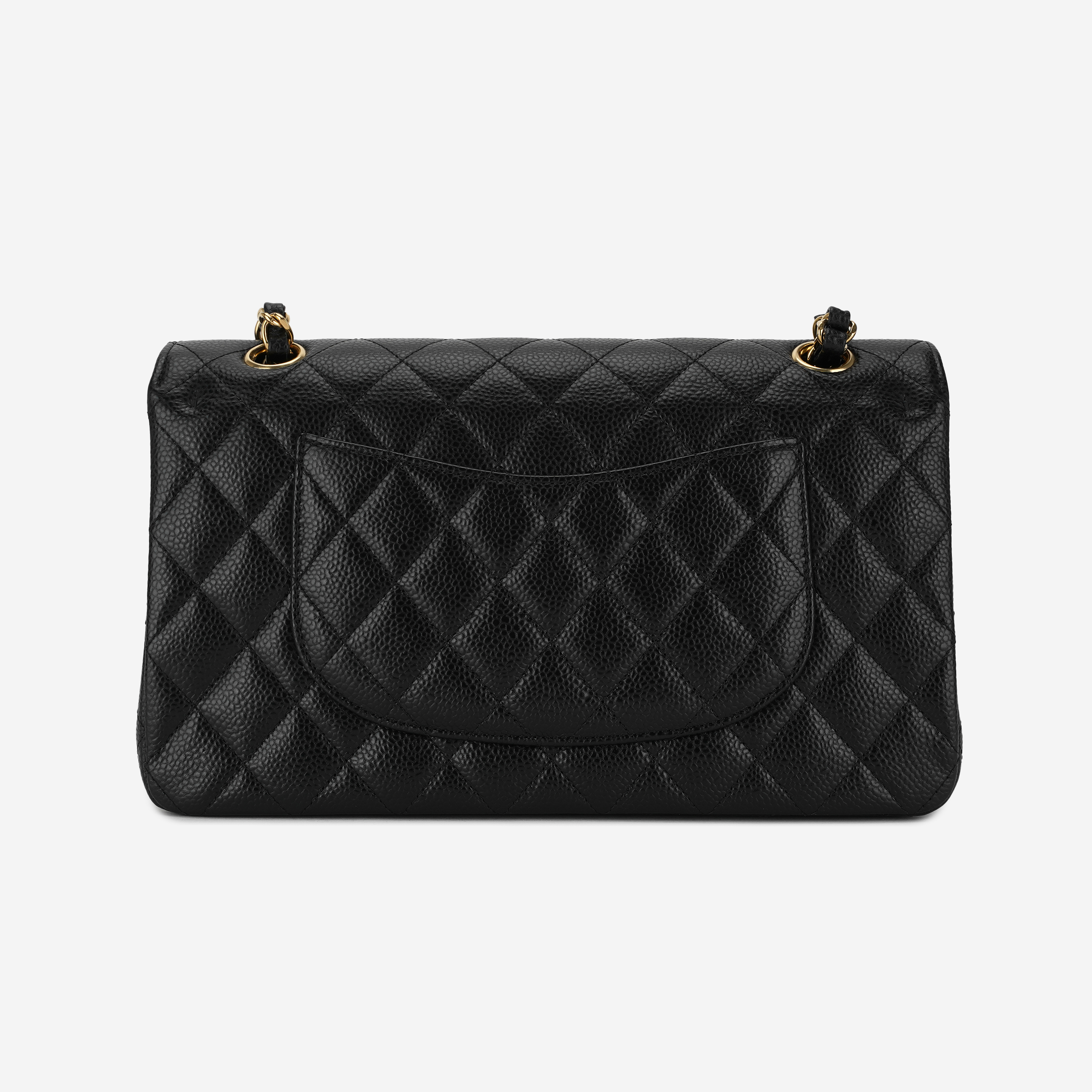 샤넬 클래식 미디움 플랩백 그레인드 카프스킨 & 골드 메탈 블랙