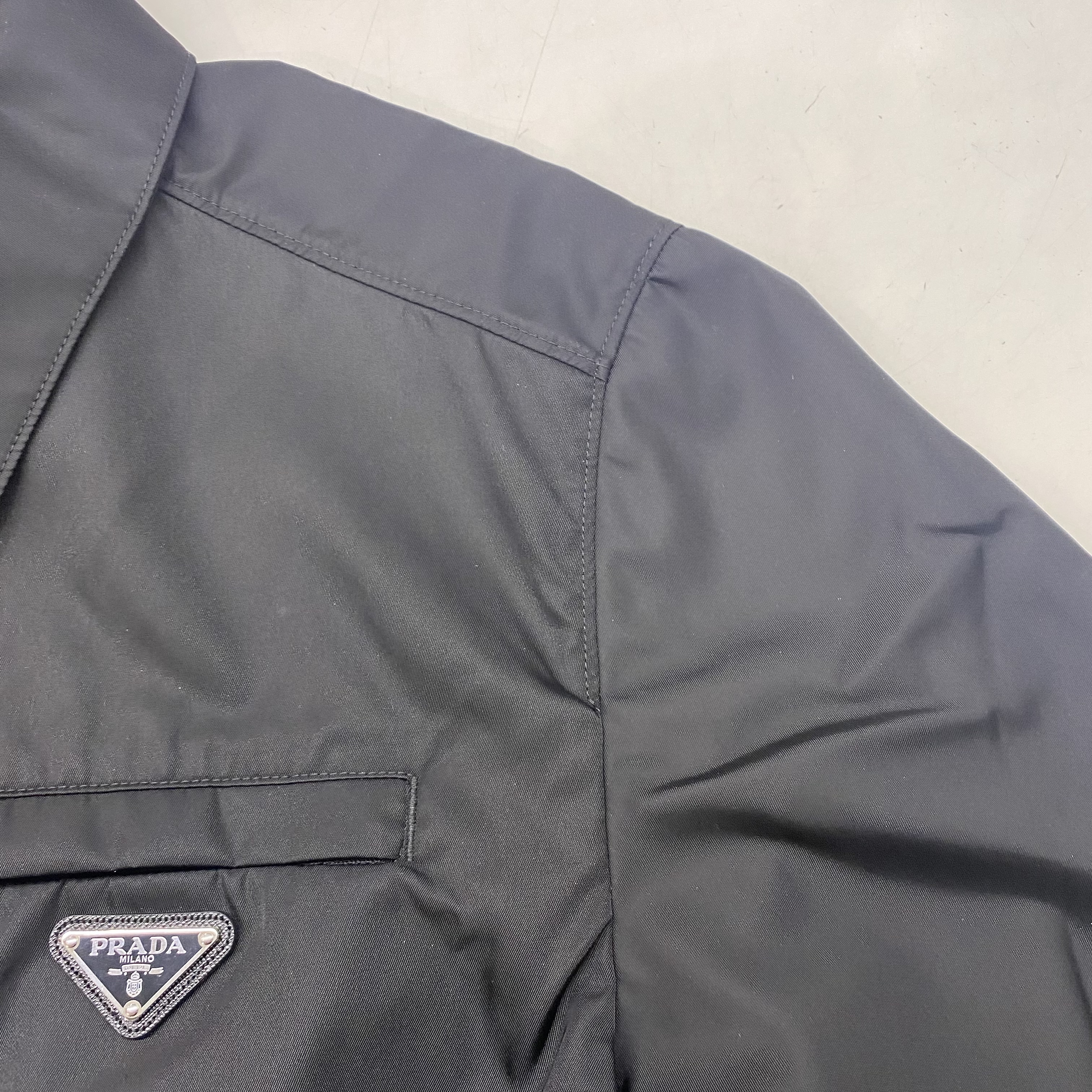 Prada Re-Nylon Zip Up Gabardine Blouson Jacket Black