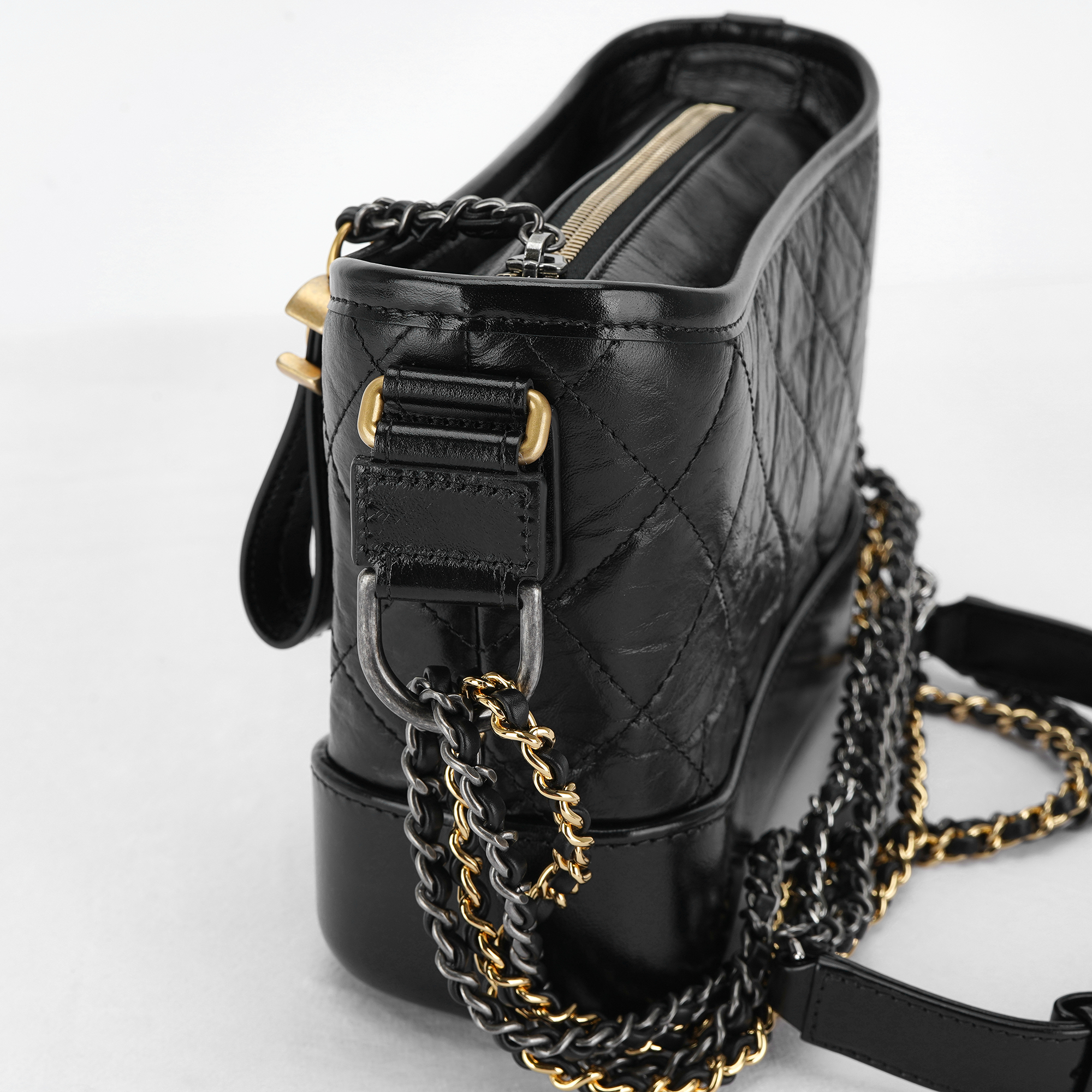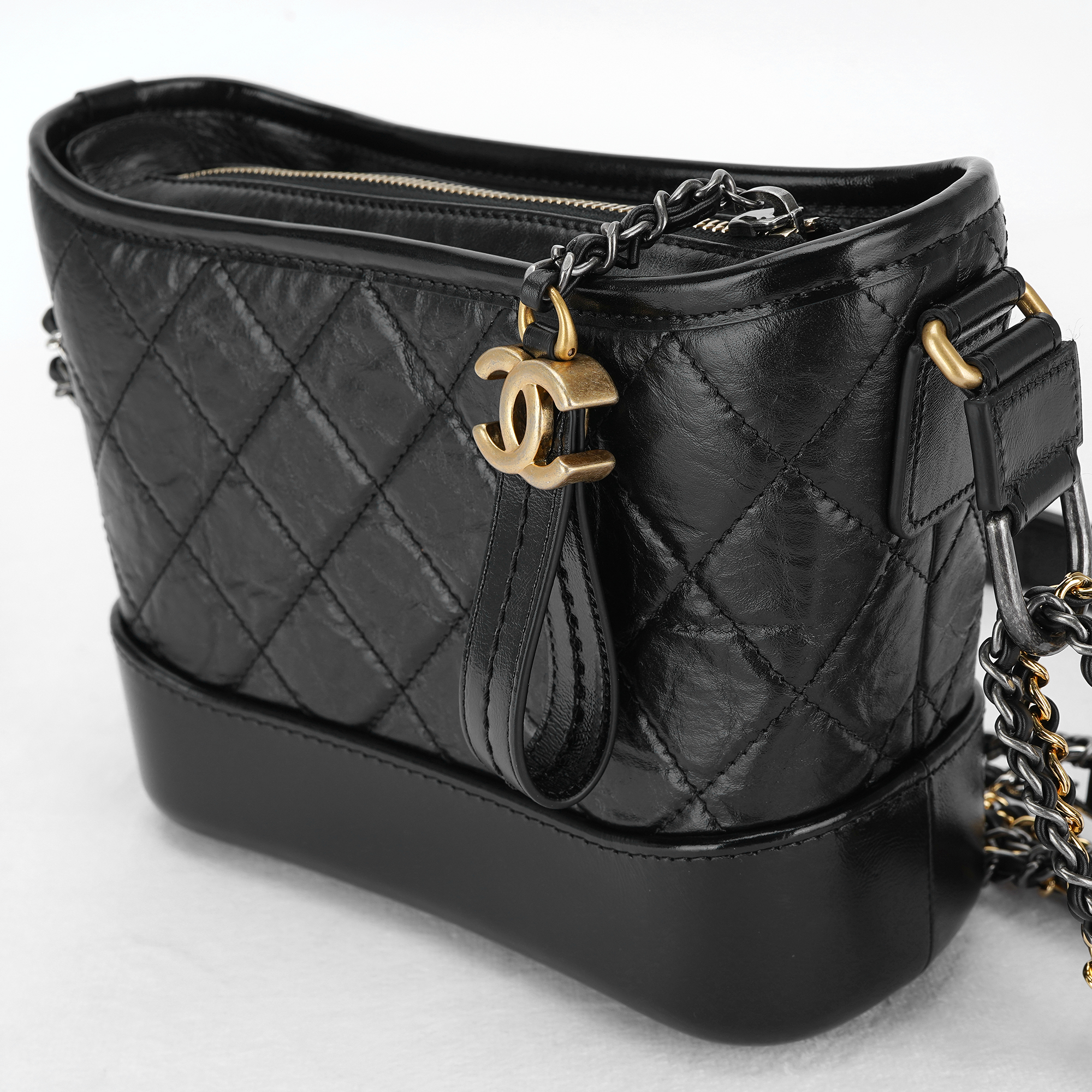 샤넬 가브리엘 스몰 호보백 빈티지 카프스킨 & 골드 메탈 블랙
