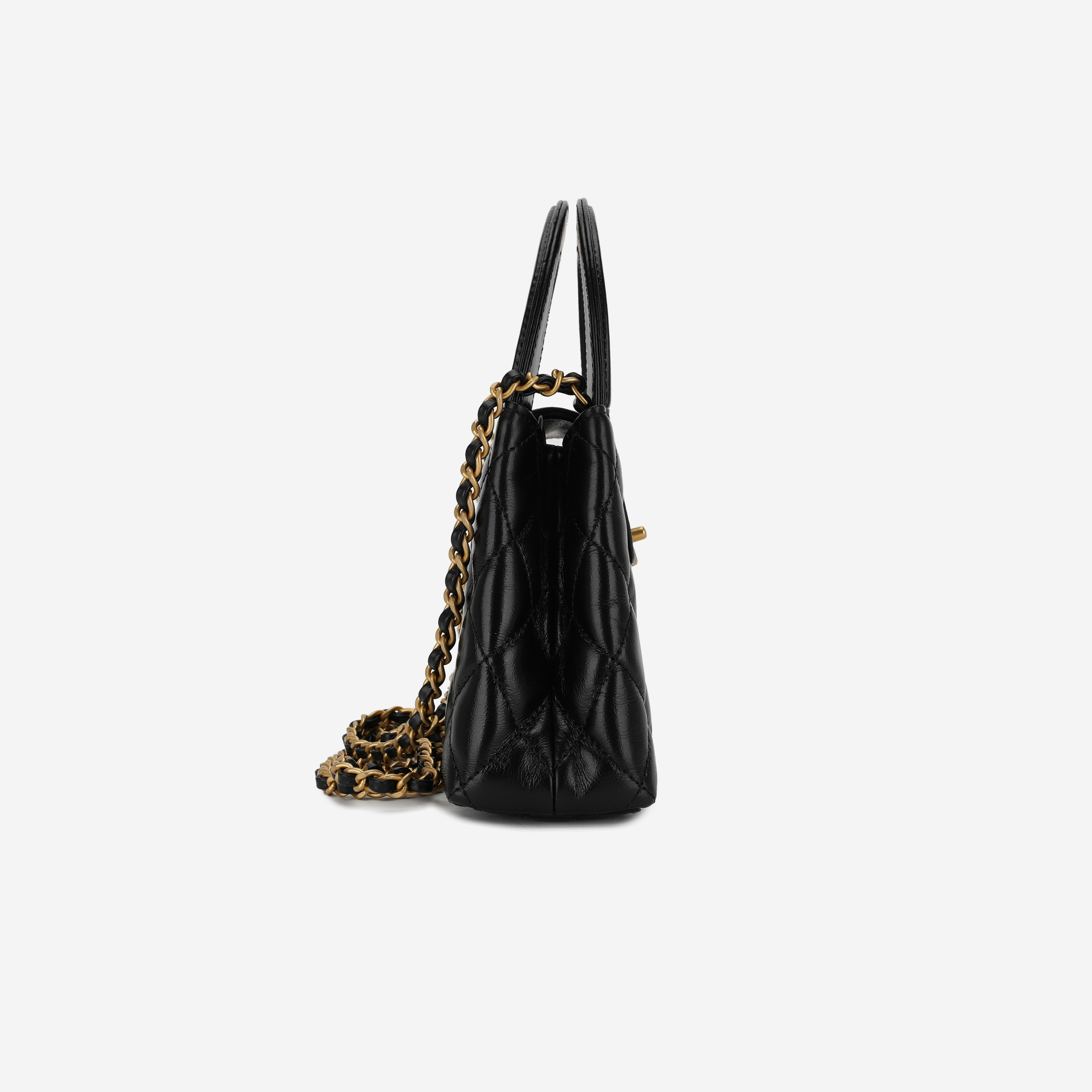 샤넬 미니 쇼핑백 샤이니 빈티지 카프스킨 & 골드 메탈 블랙