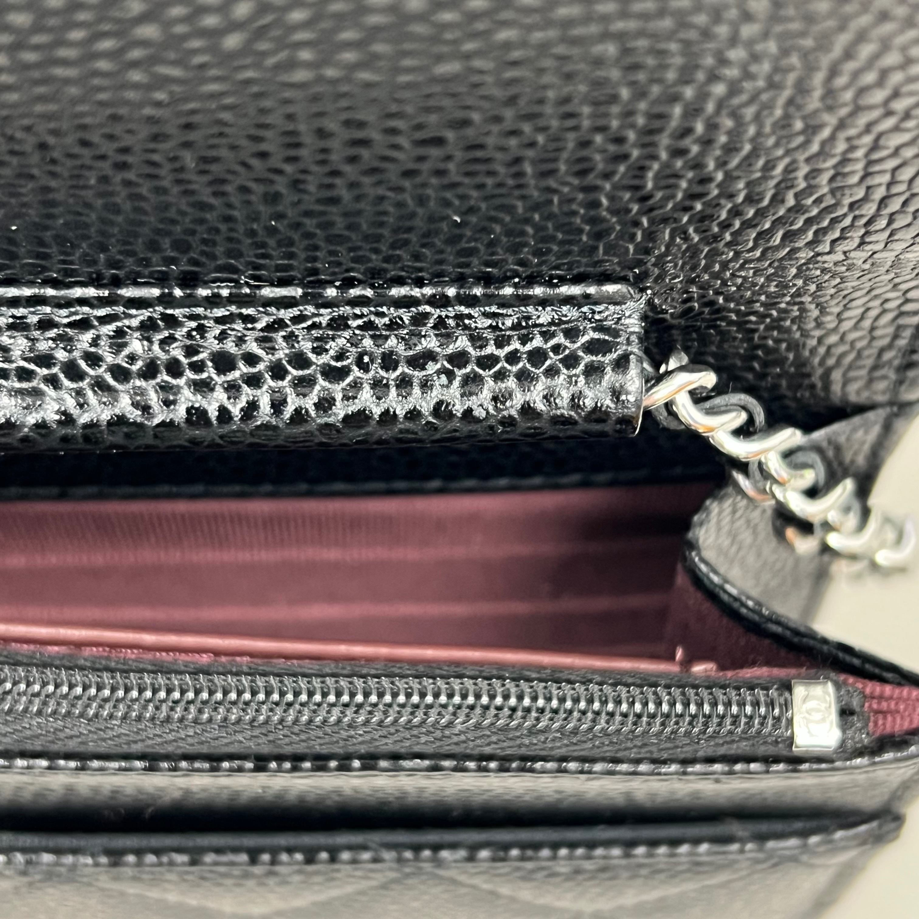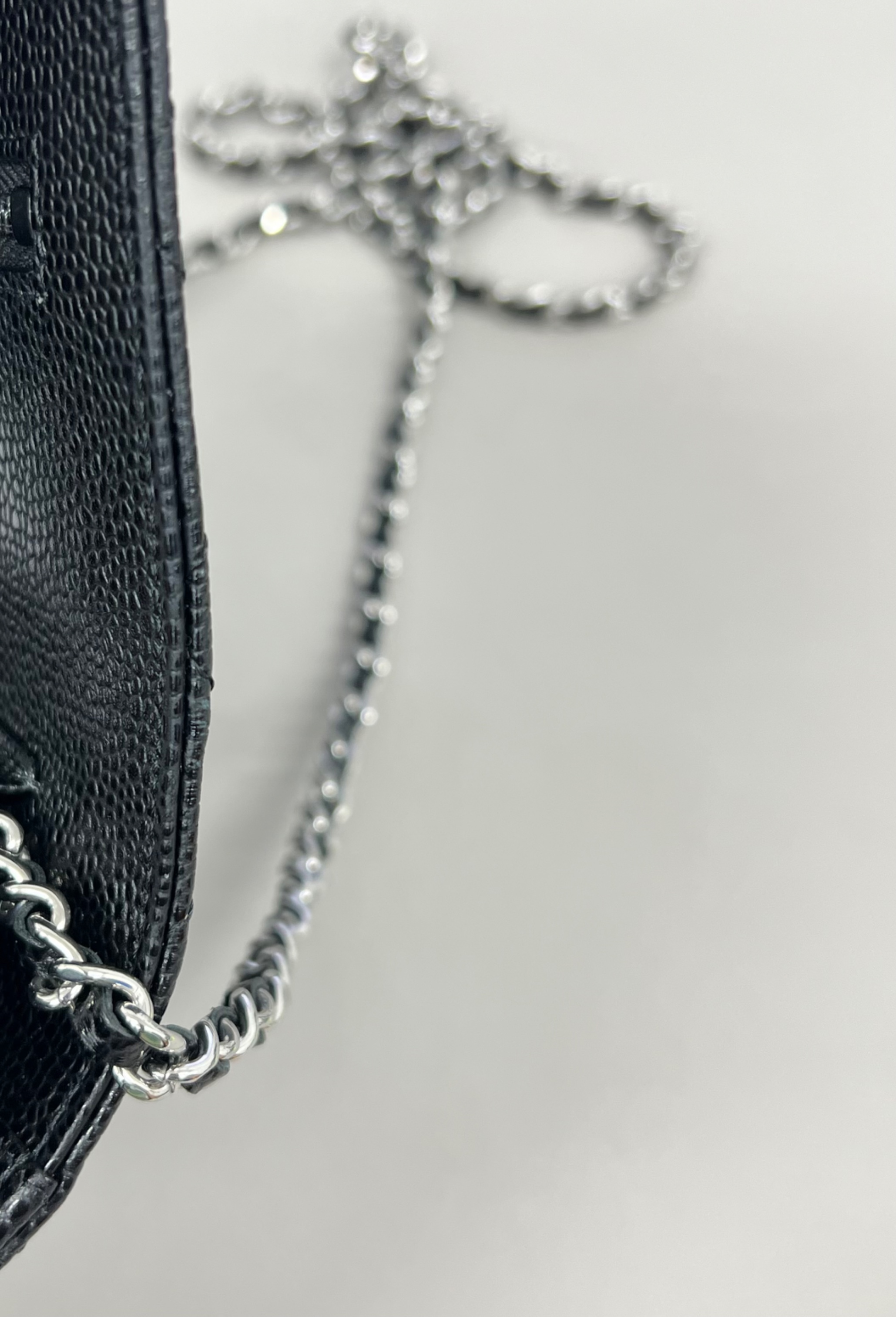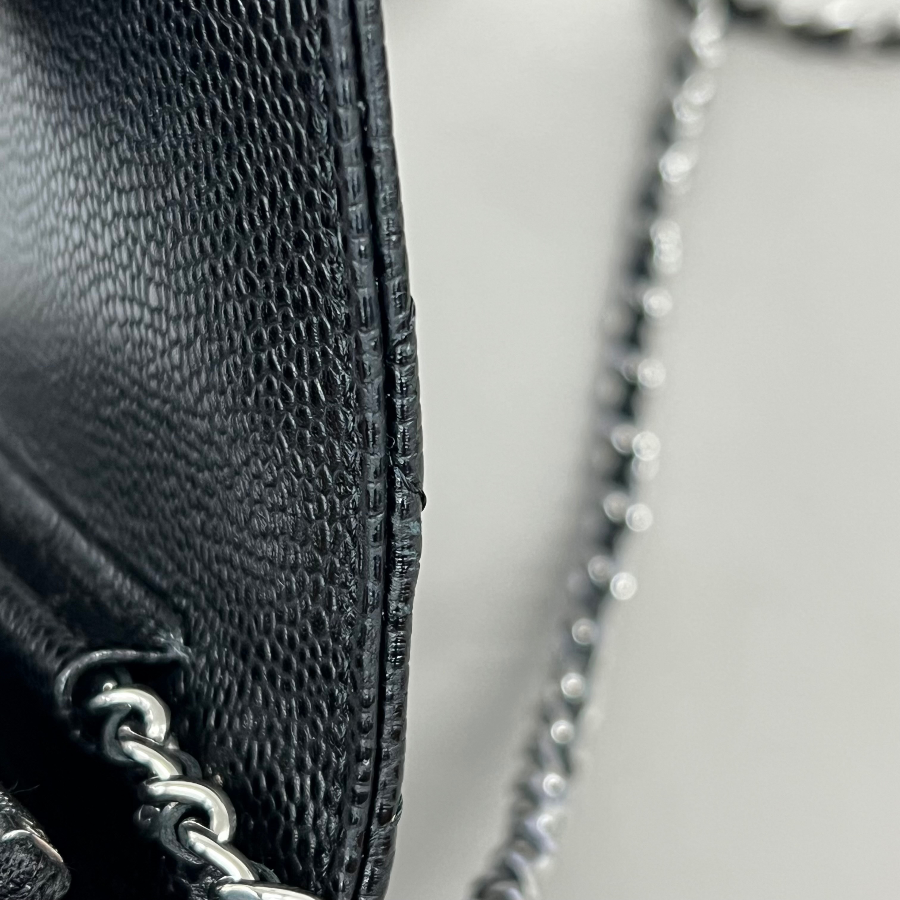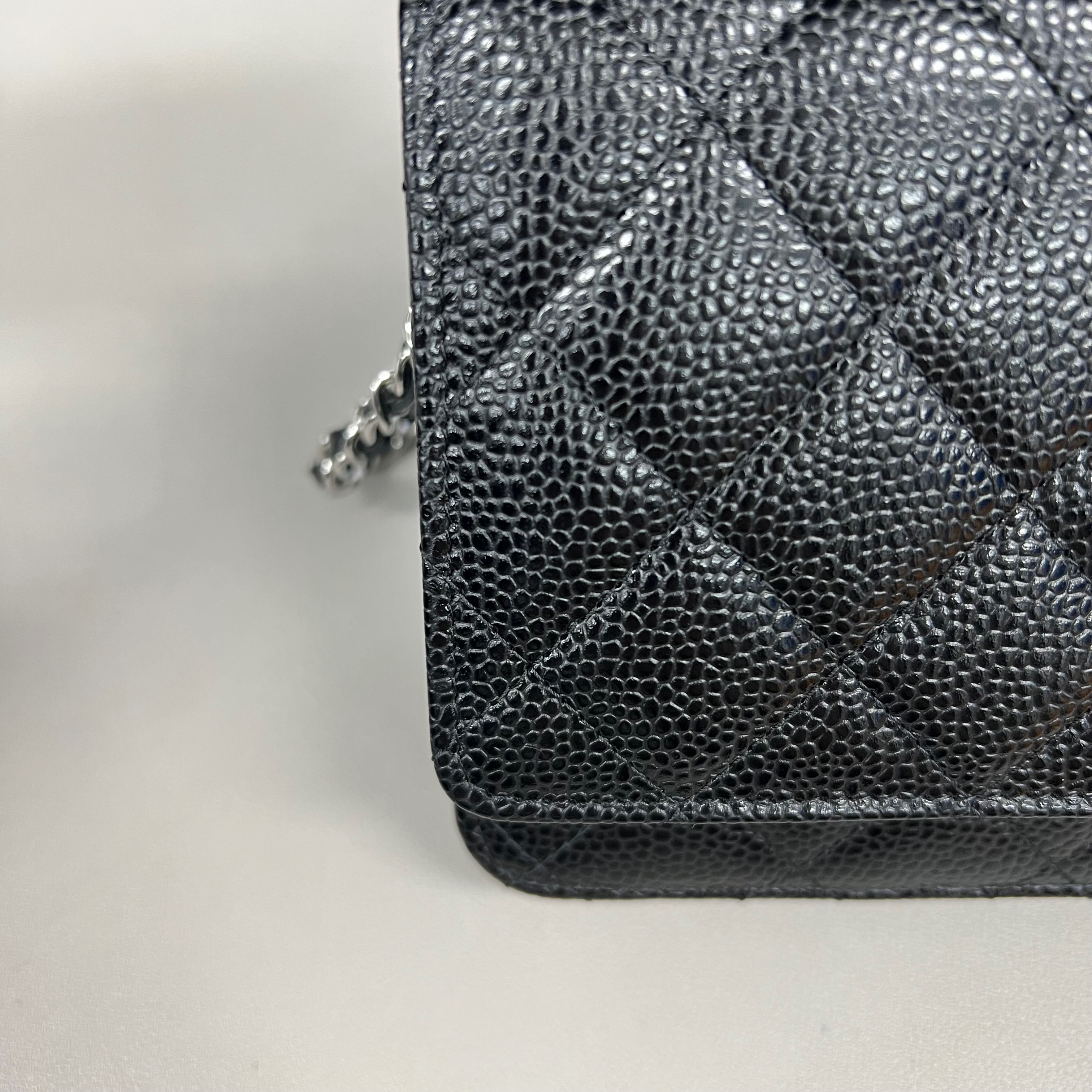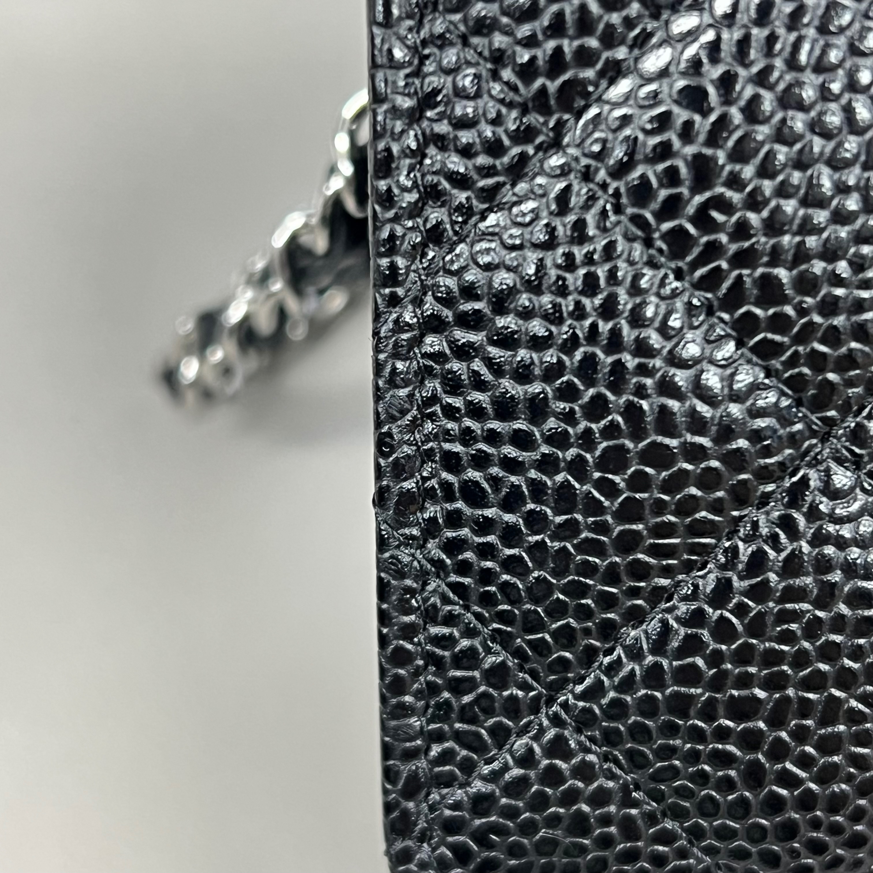 샤넬 클래식 체인 지갑 그레인드 카프스킨 & 실버 메탈 블랙