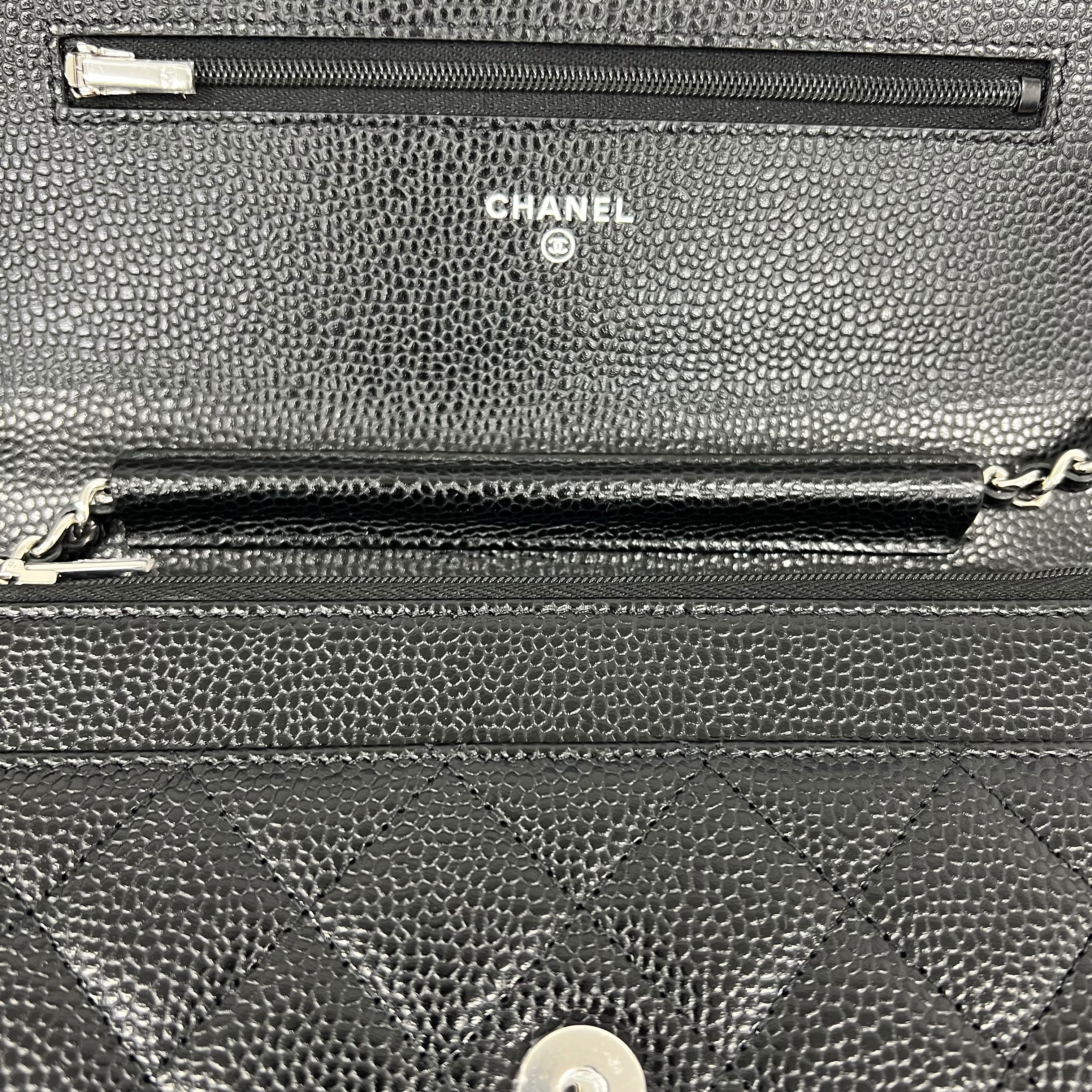 Chanel Classic Wallet On Chain Grained Calfskin & Silver Black