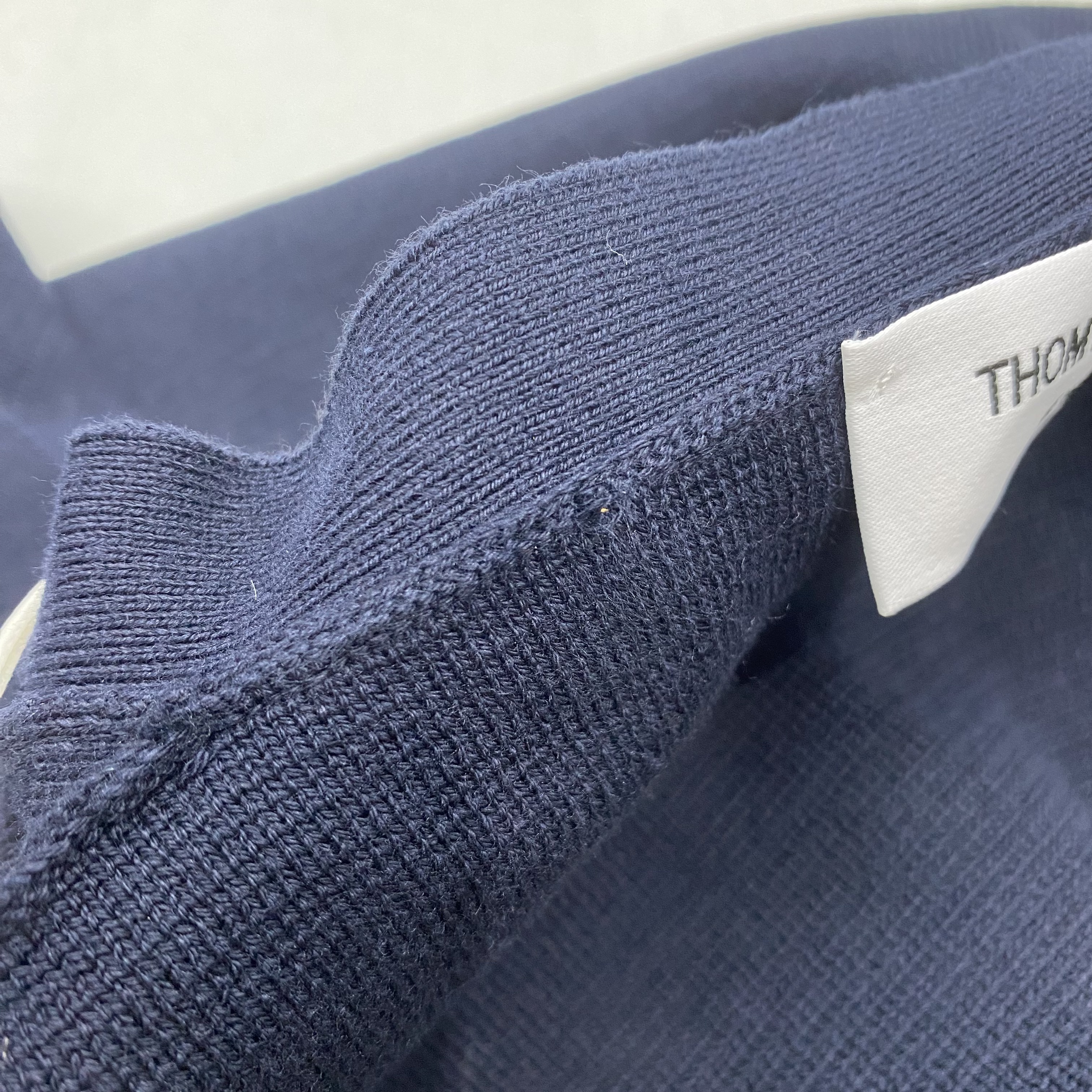 톰브라운 밀라노 스티치 사선 가디건 네이비
