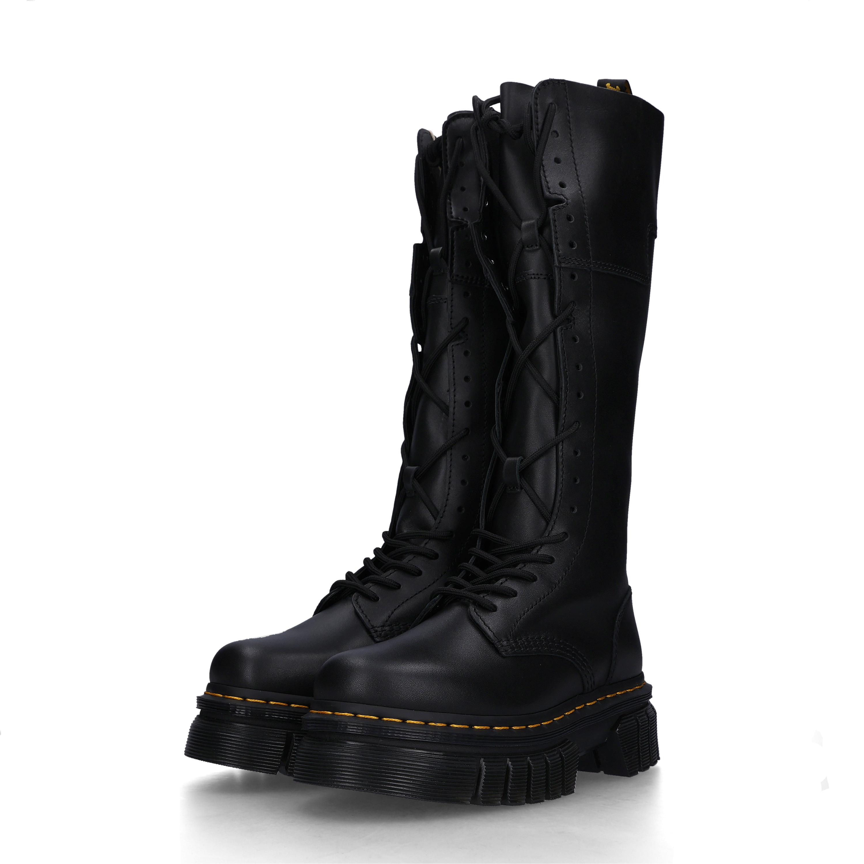 (W) Dr. Martens Audrick 20 Eye Leather Knee High Platform Boots Black