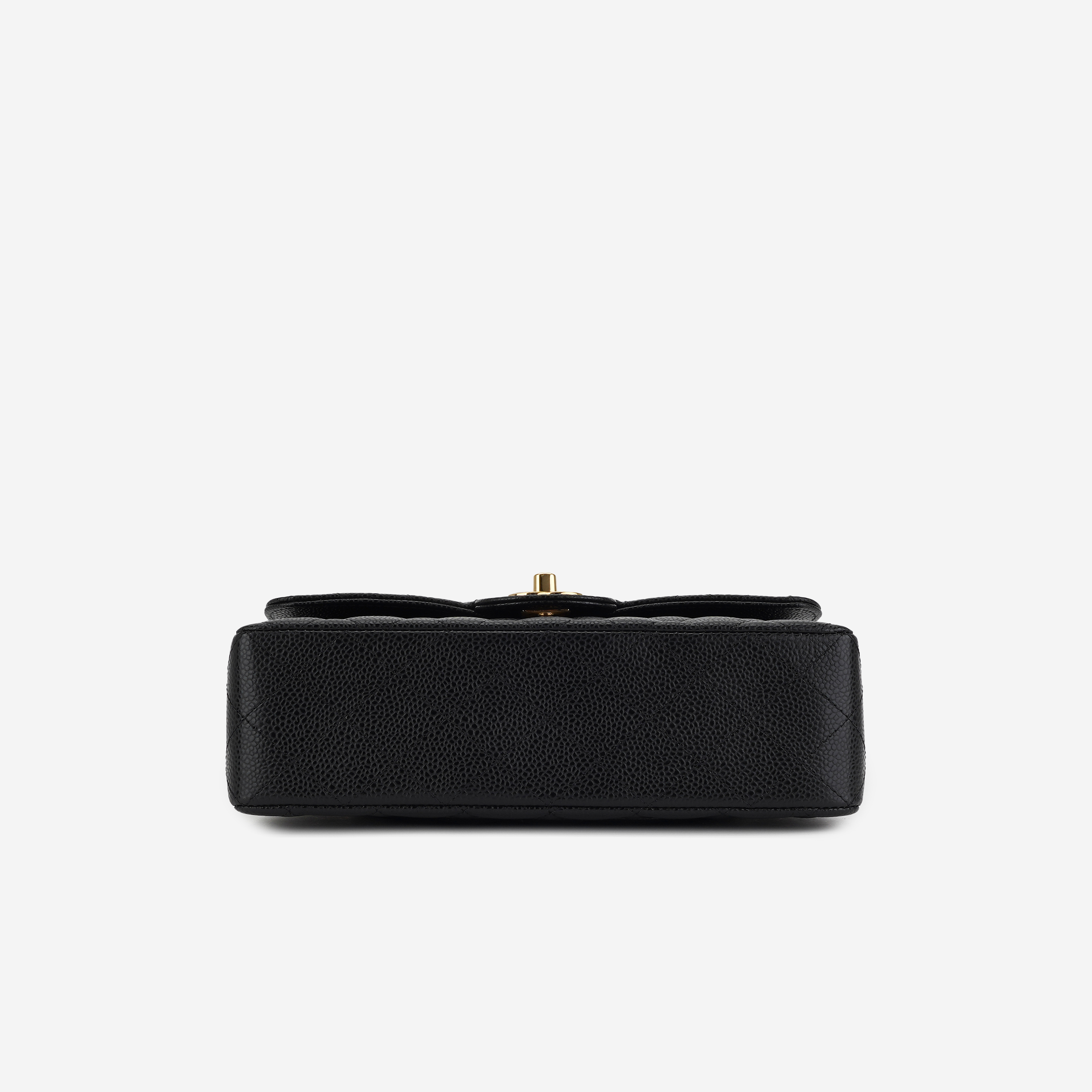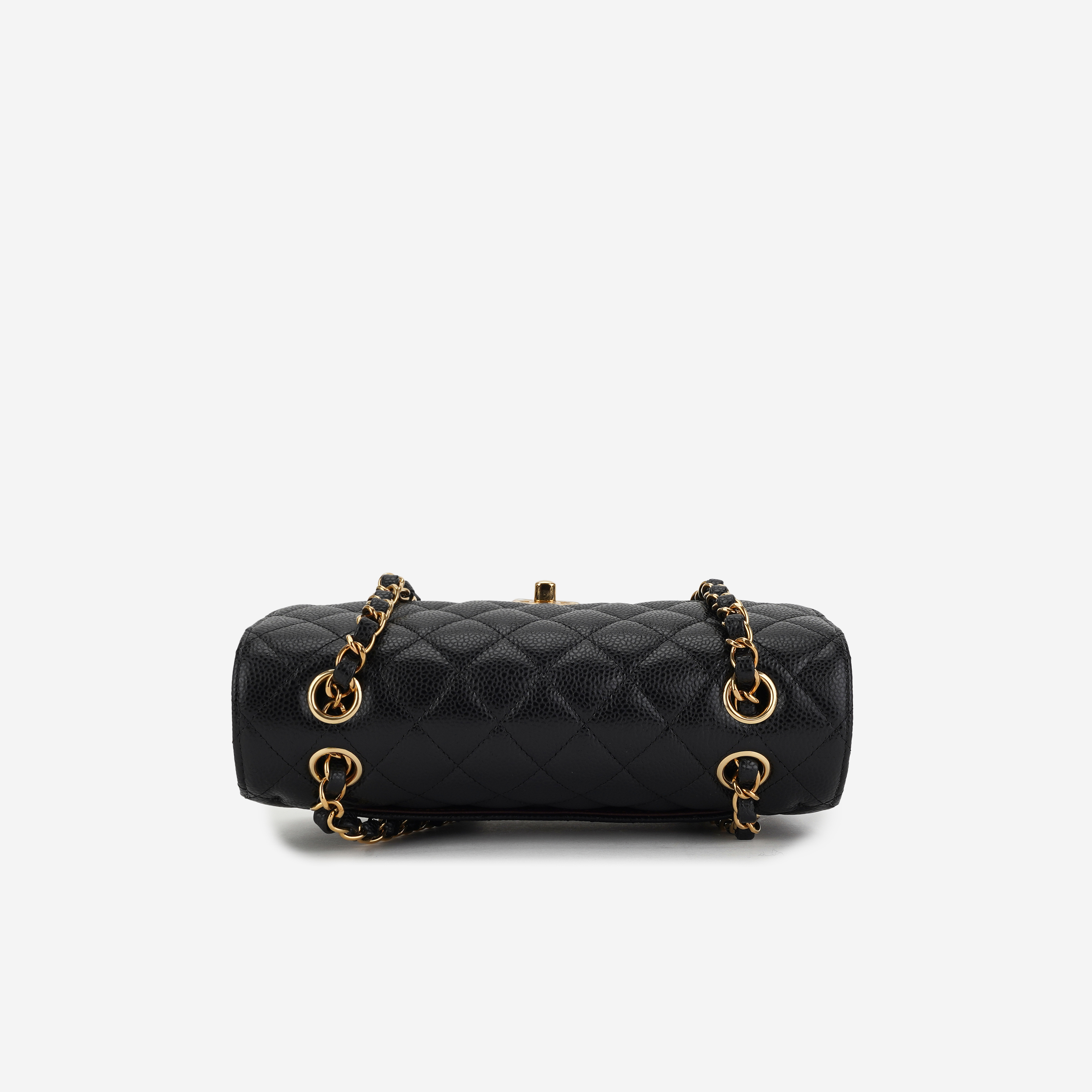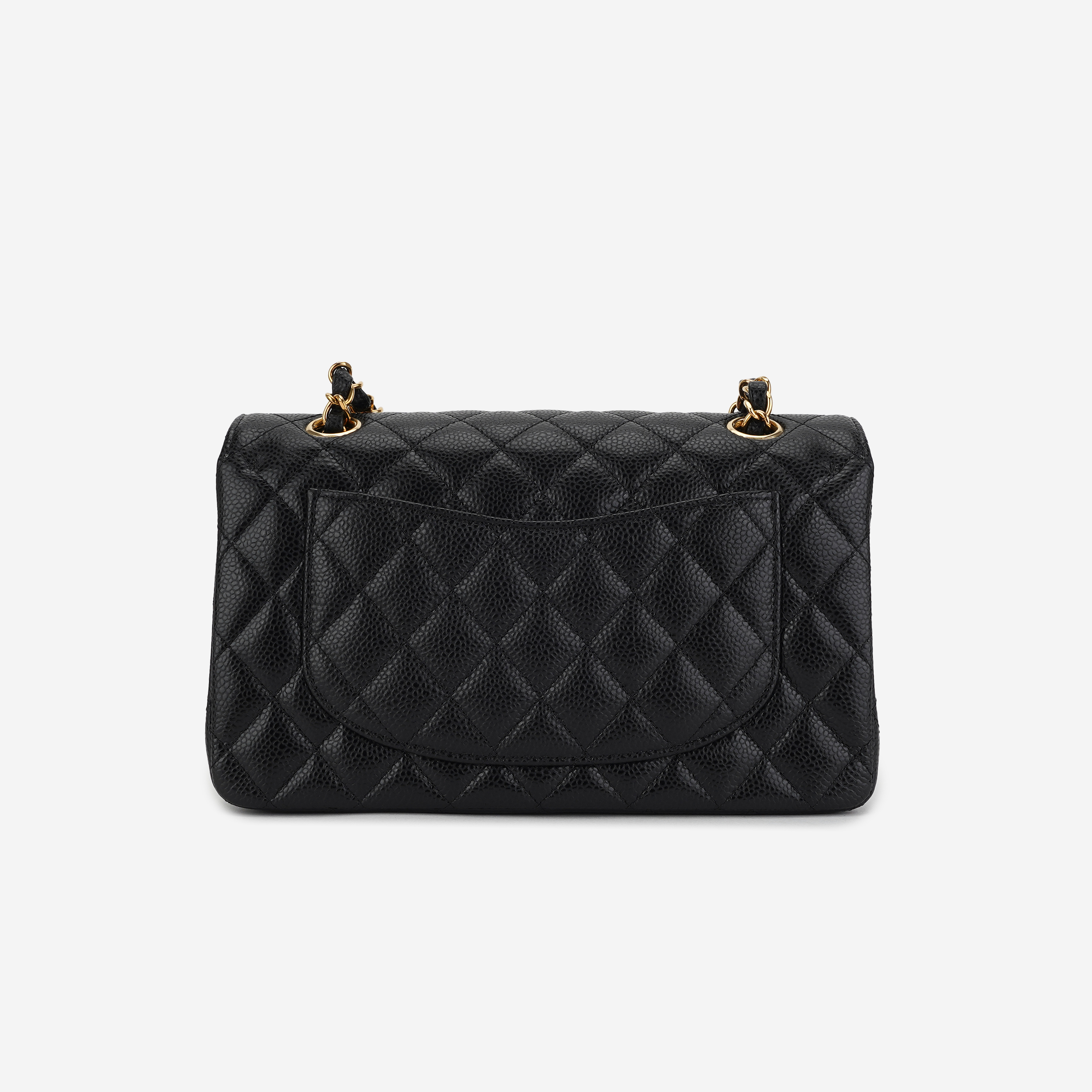 샤넬 클래식 스몰 플랩백 그레인드 카프스킨 & 골드 메탈 블랙