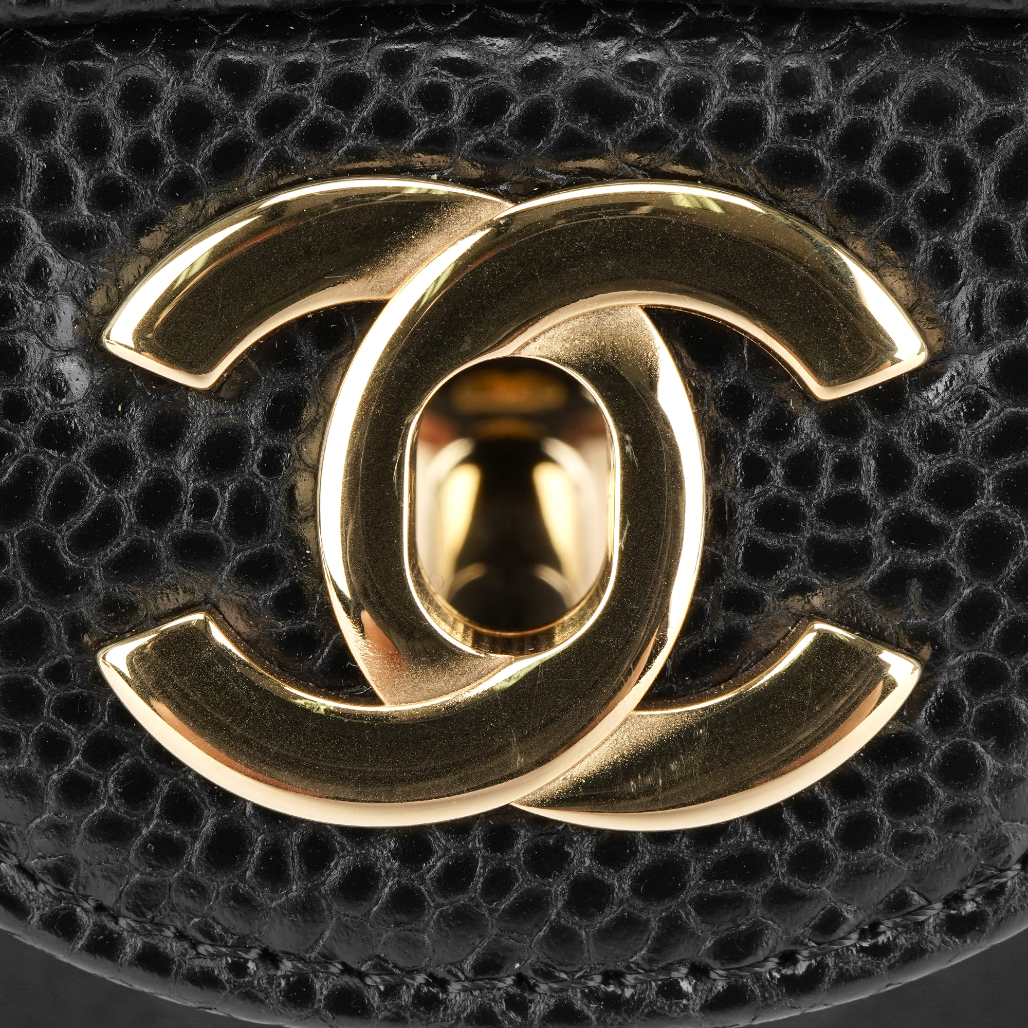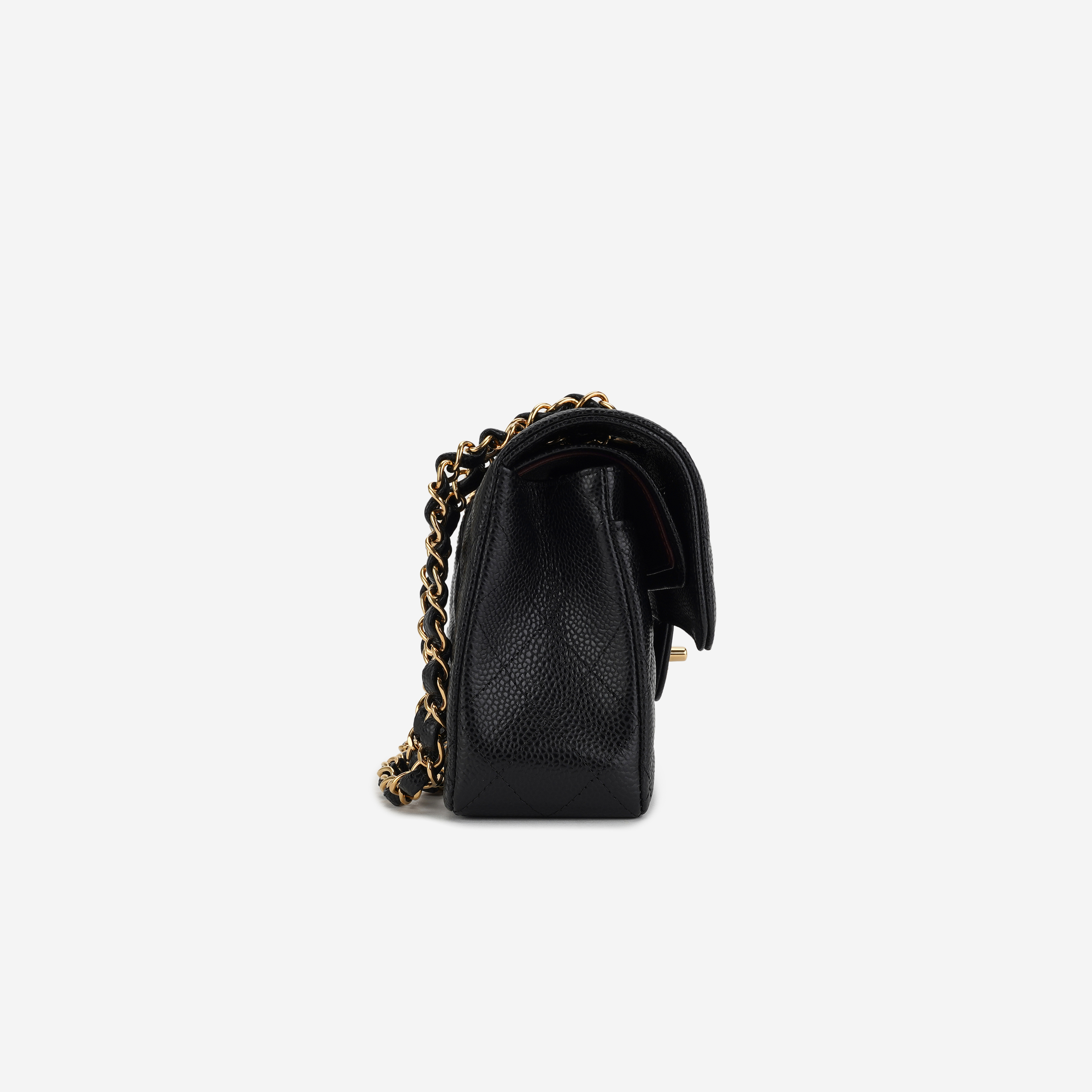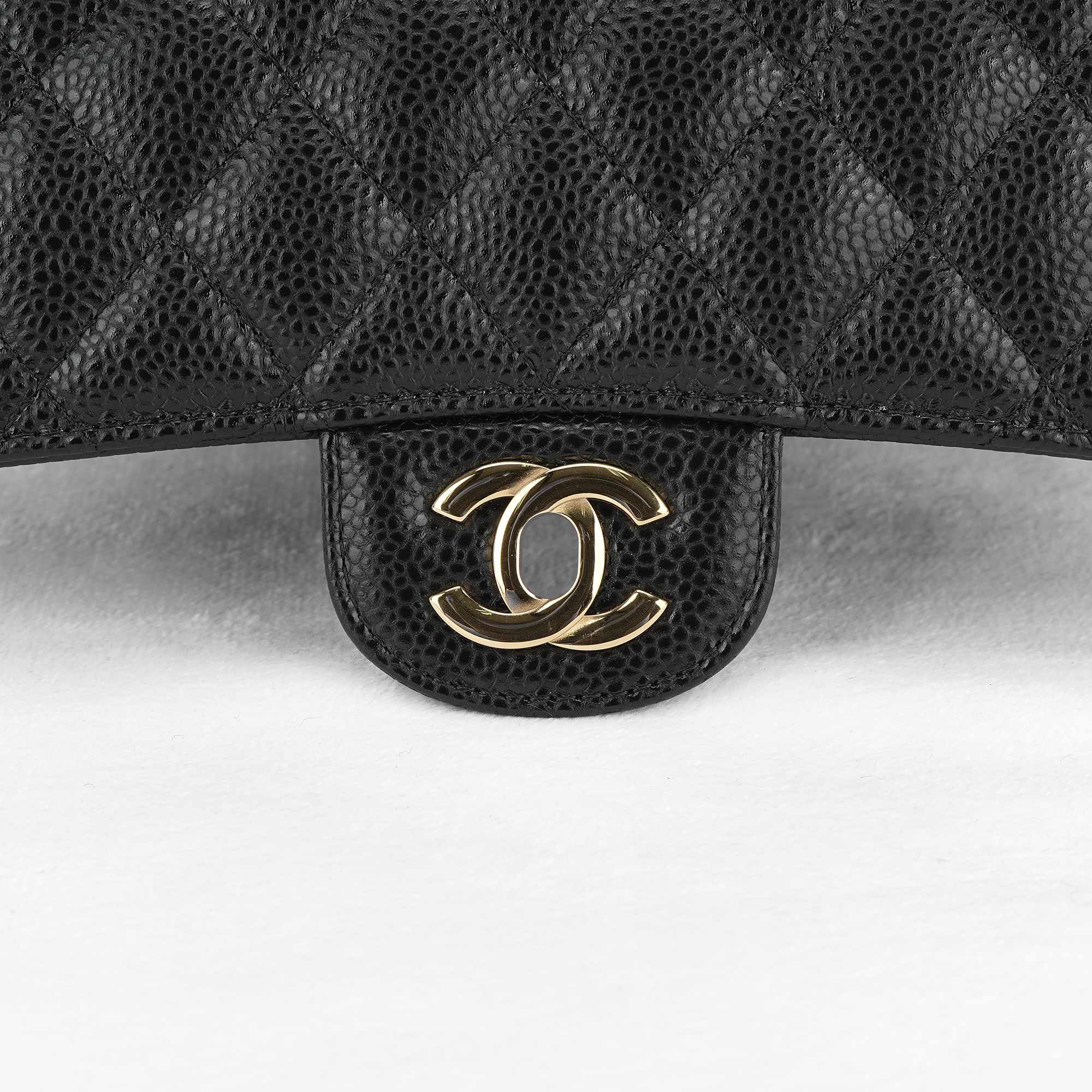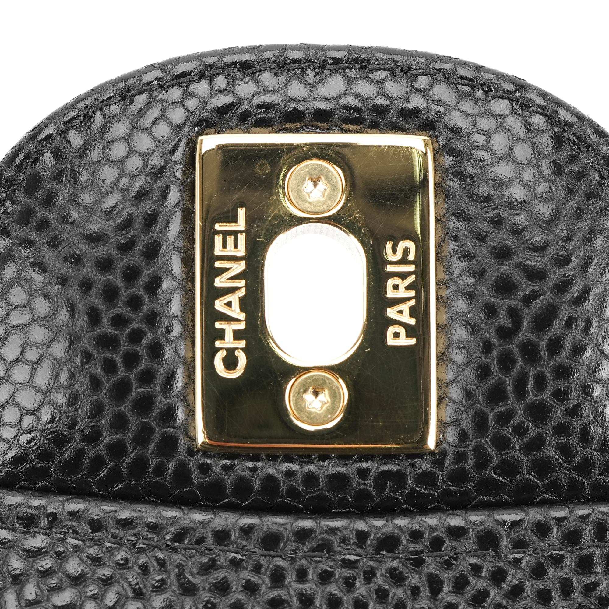 샤넬 클래식 스몰 플랩백 그레인드 카프스킨 & 골드 메탈 블랙