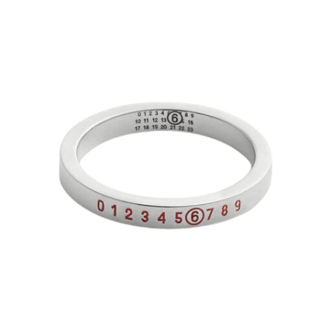 (W) MM6 Maison Margiela Year of The Snake Minimal Numeric Ring Polished Silver Red
