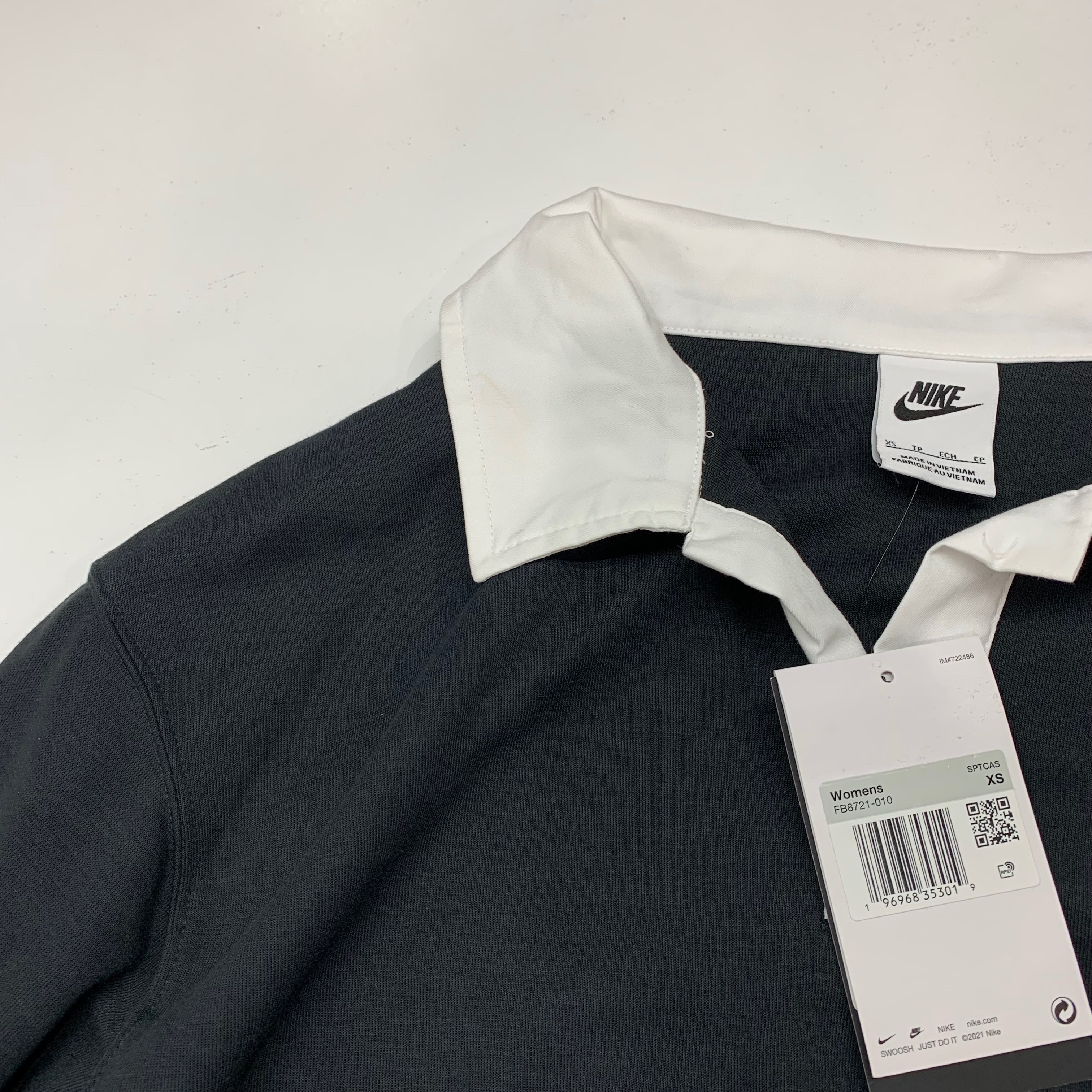 (W) Nike NSW Essential Oversized Long Sleeve Polo Black White - Asia
