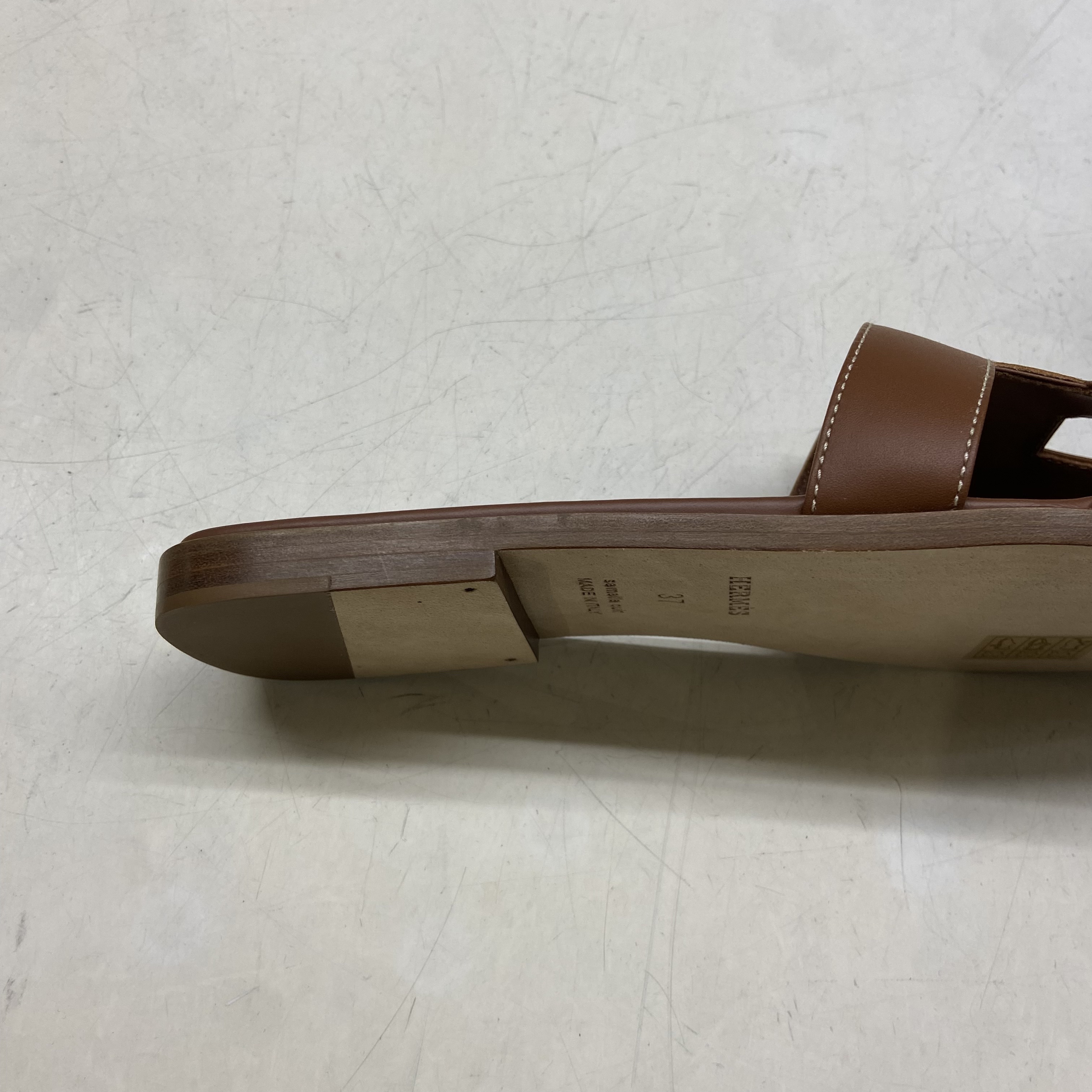(W) Hermes Oran Sandal Calfskin & Gold Piqures Ecrues