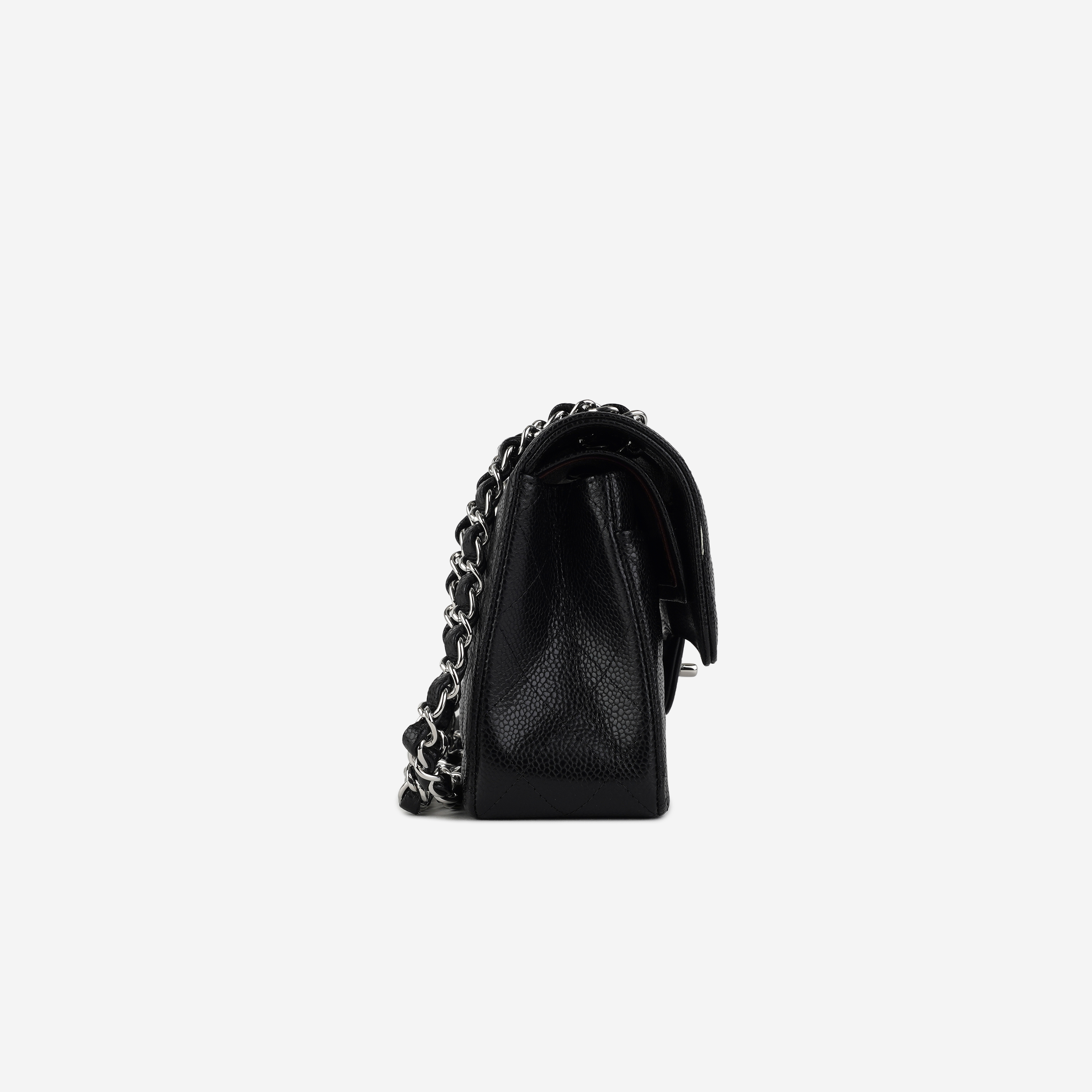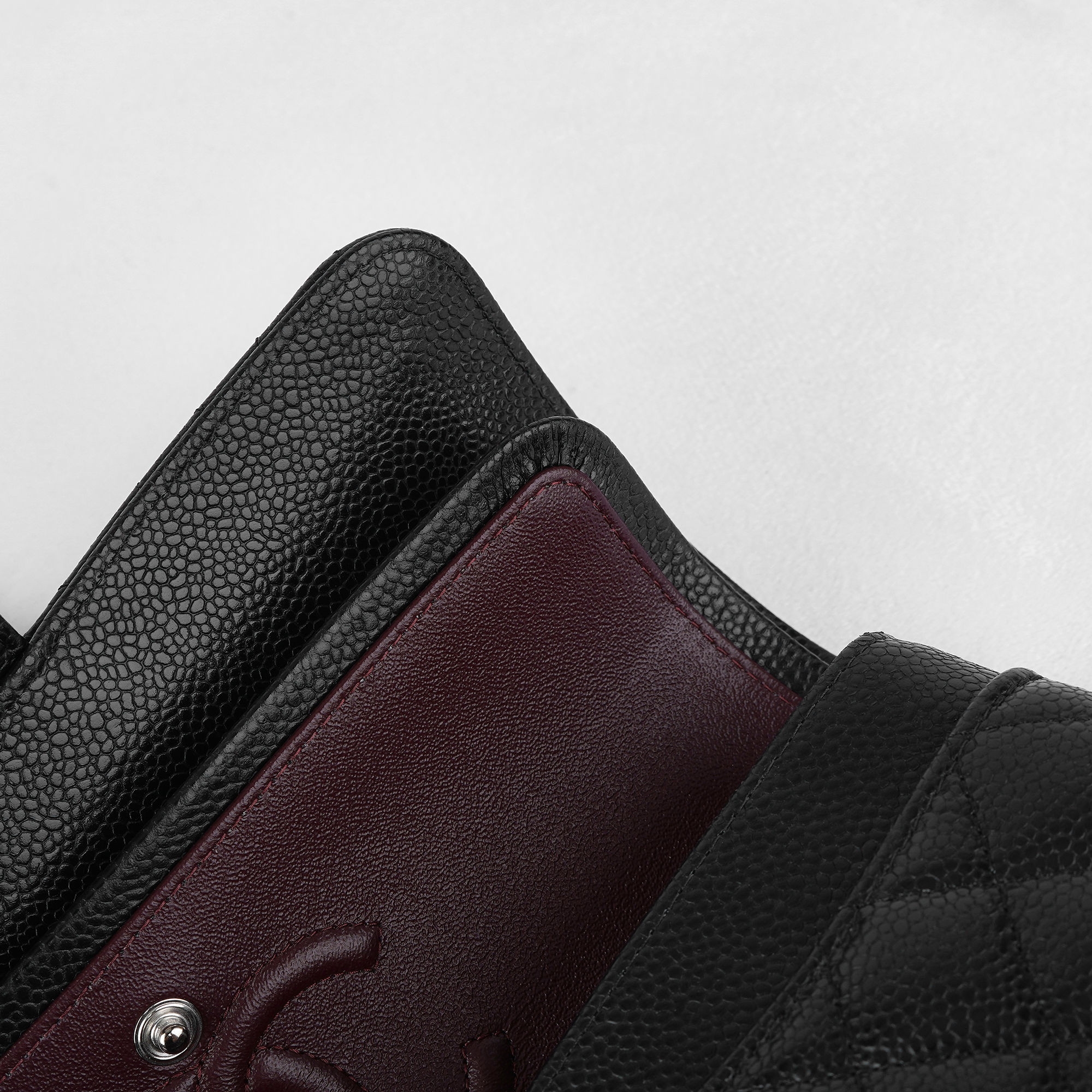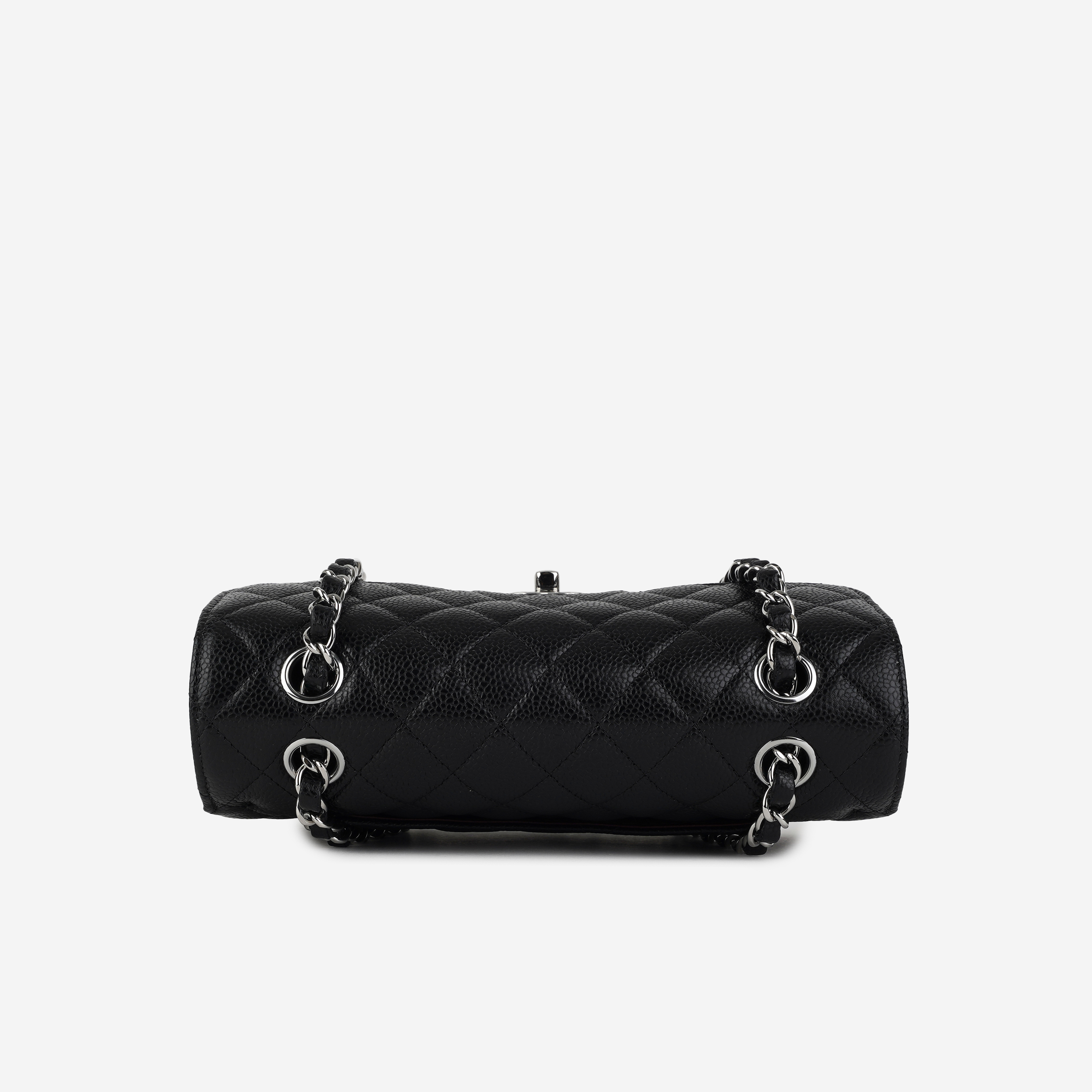 샤넬 클래식 스몰 플랩백 그레인드 카프스킨 & 실버 메탈 블랙