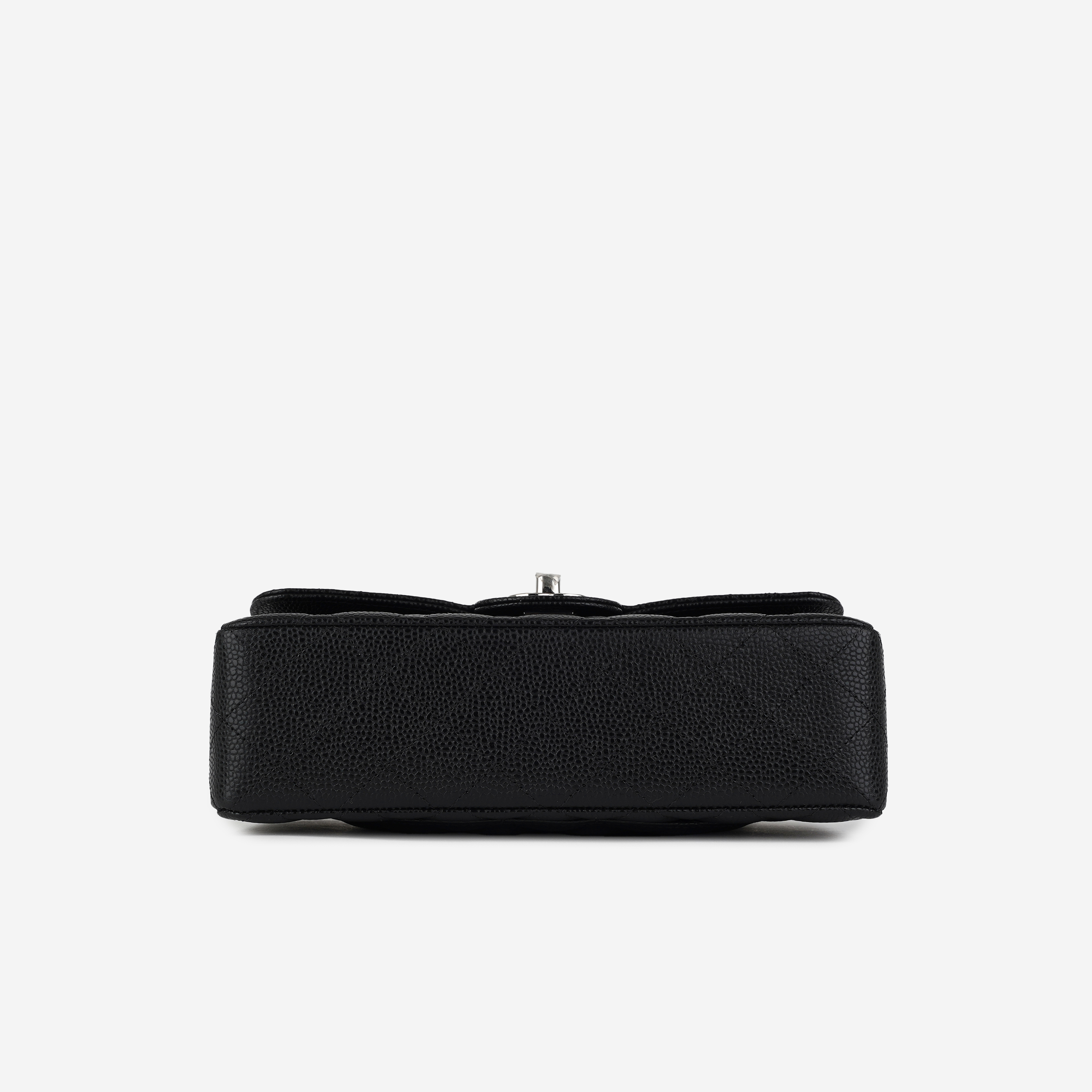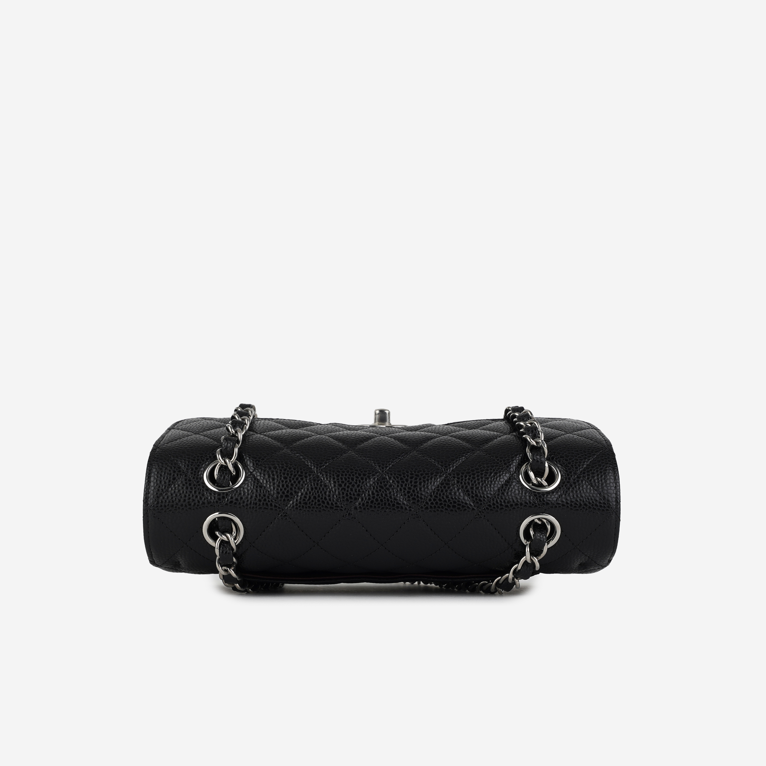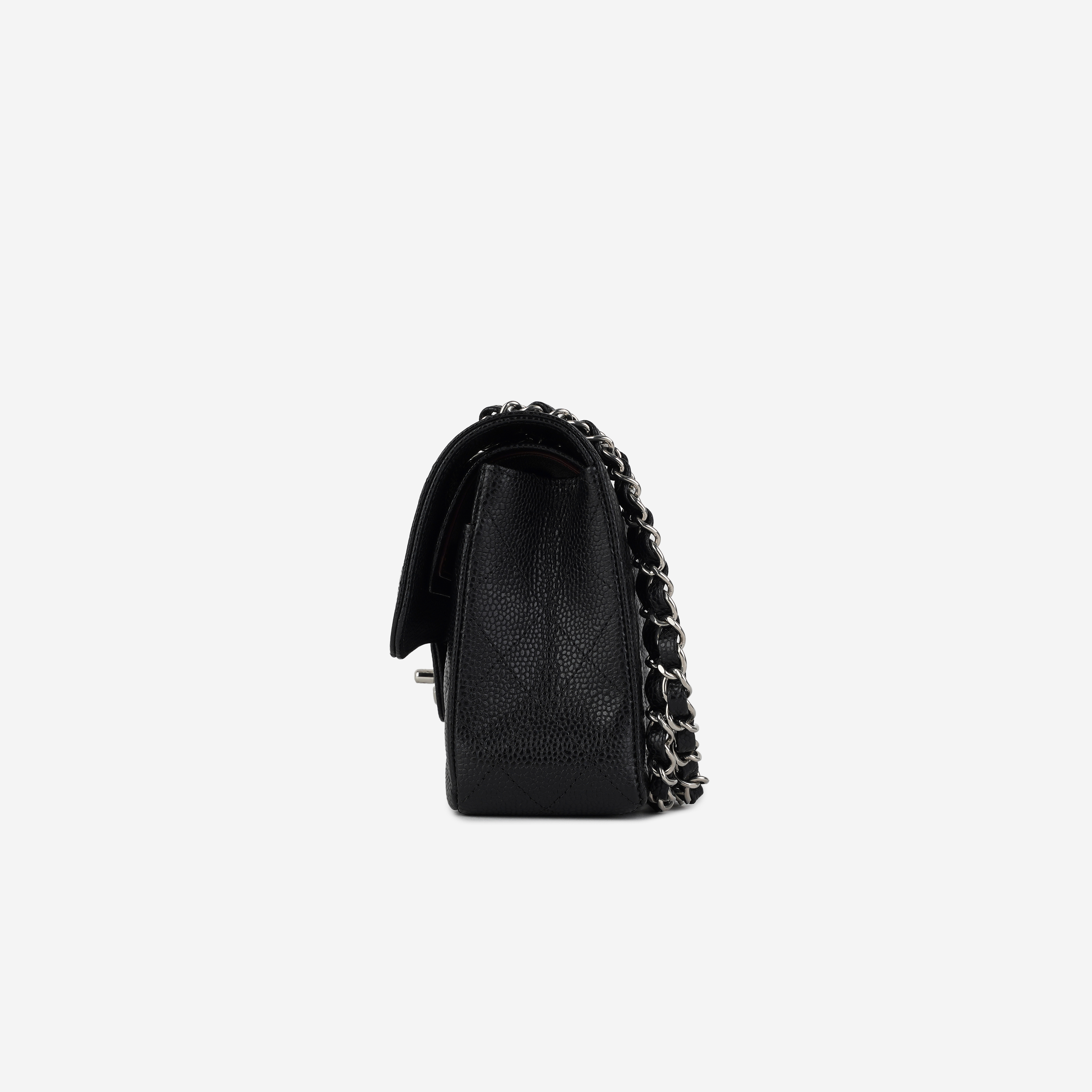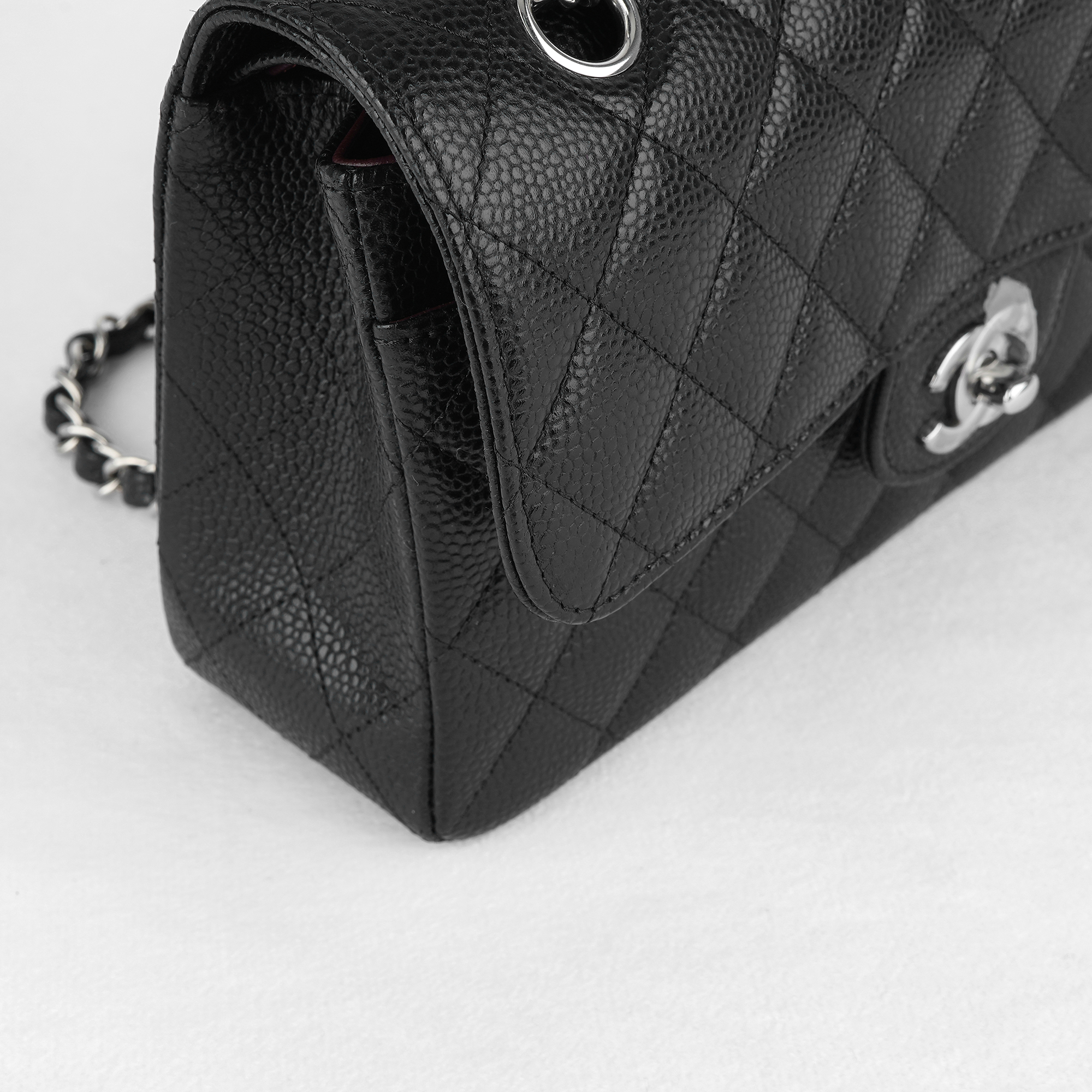 샤넬 클래식 스몰 플랩백 그레인드 카프스킨 & 실버 메탈 블랙