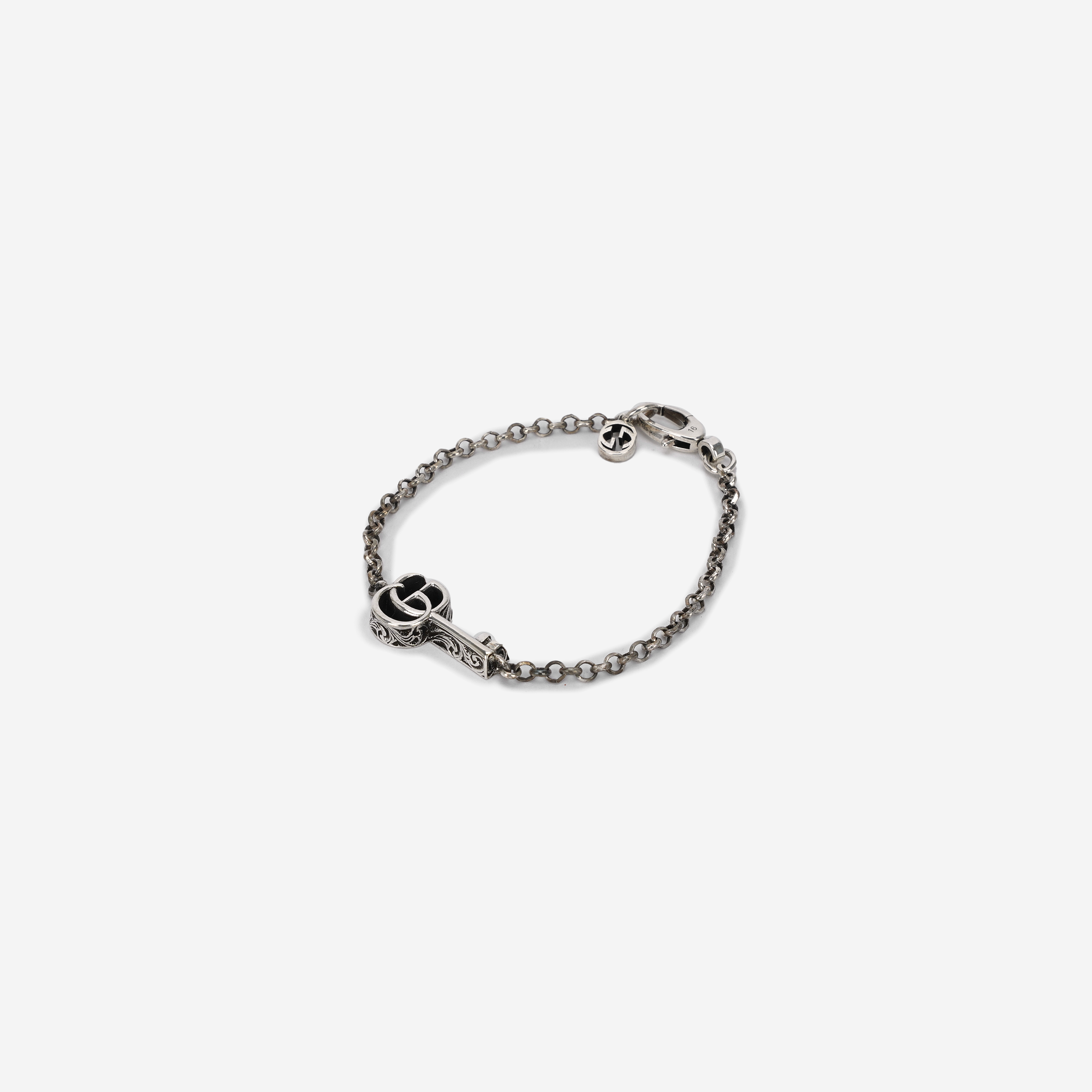 Gucci Double G Key Bracelet 925 Sterling Silver with Aged Finish