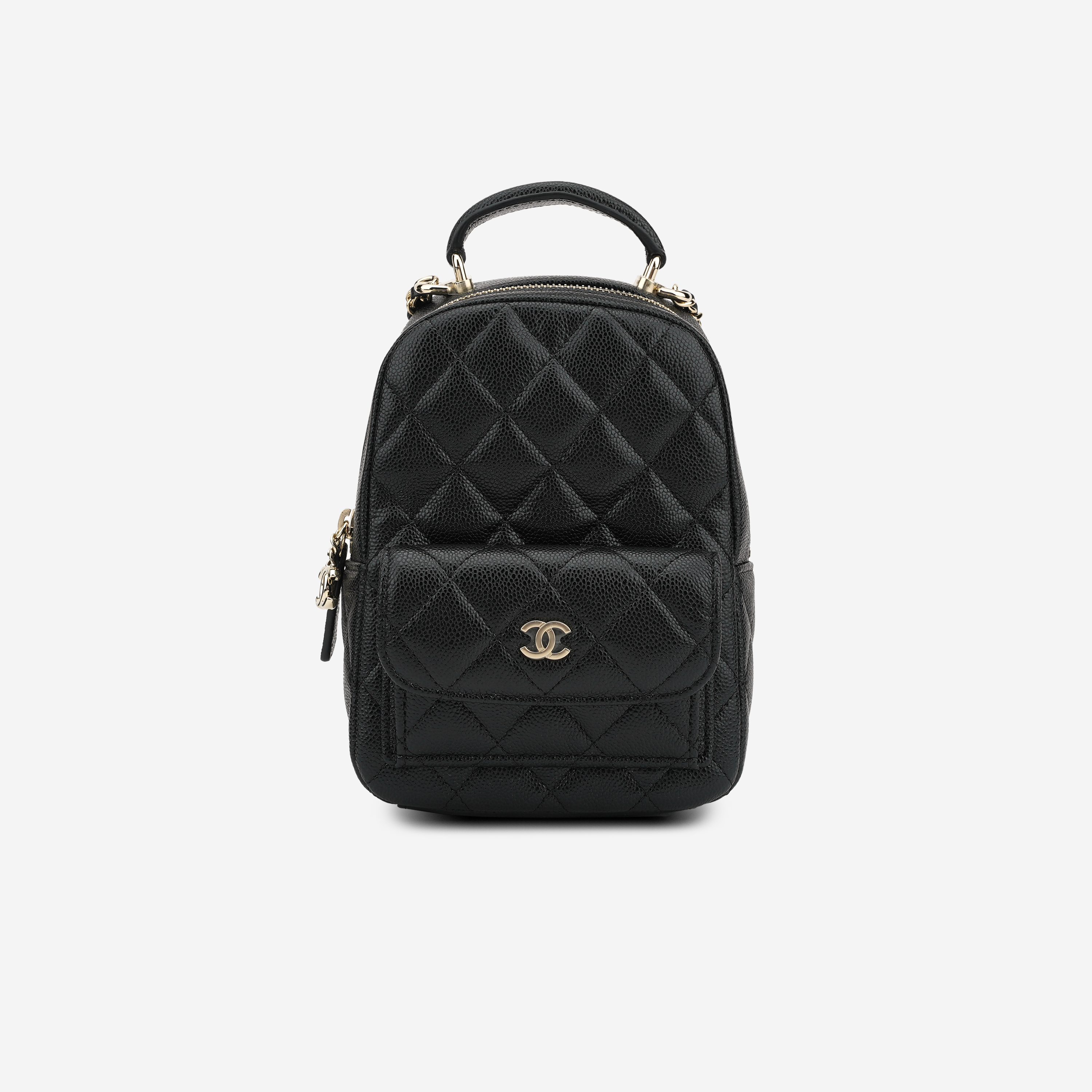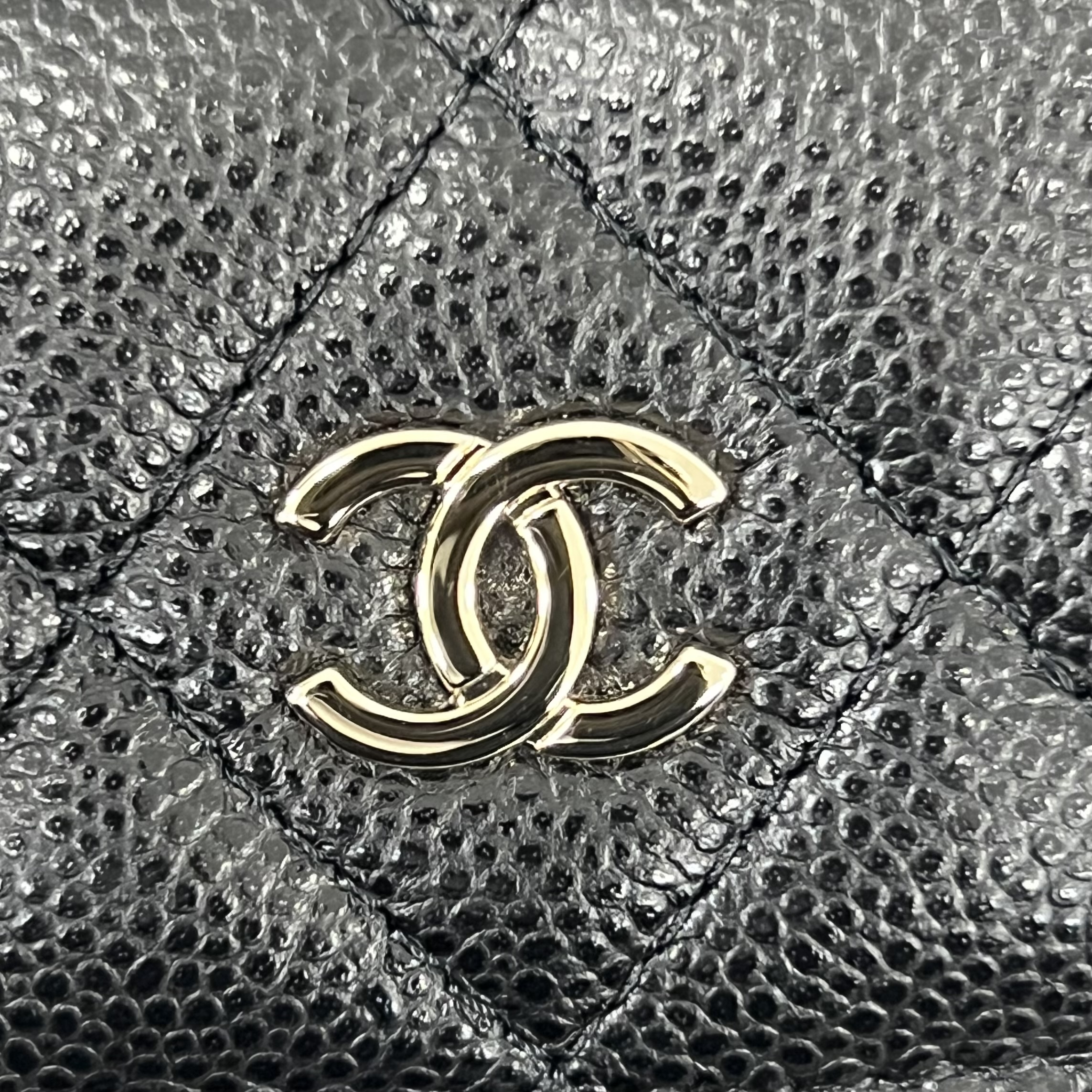Chanel Classic Phone Holder Clutch with Chain Grained Shiny Calfskin & Gold Black