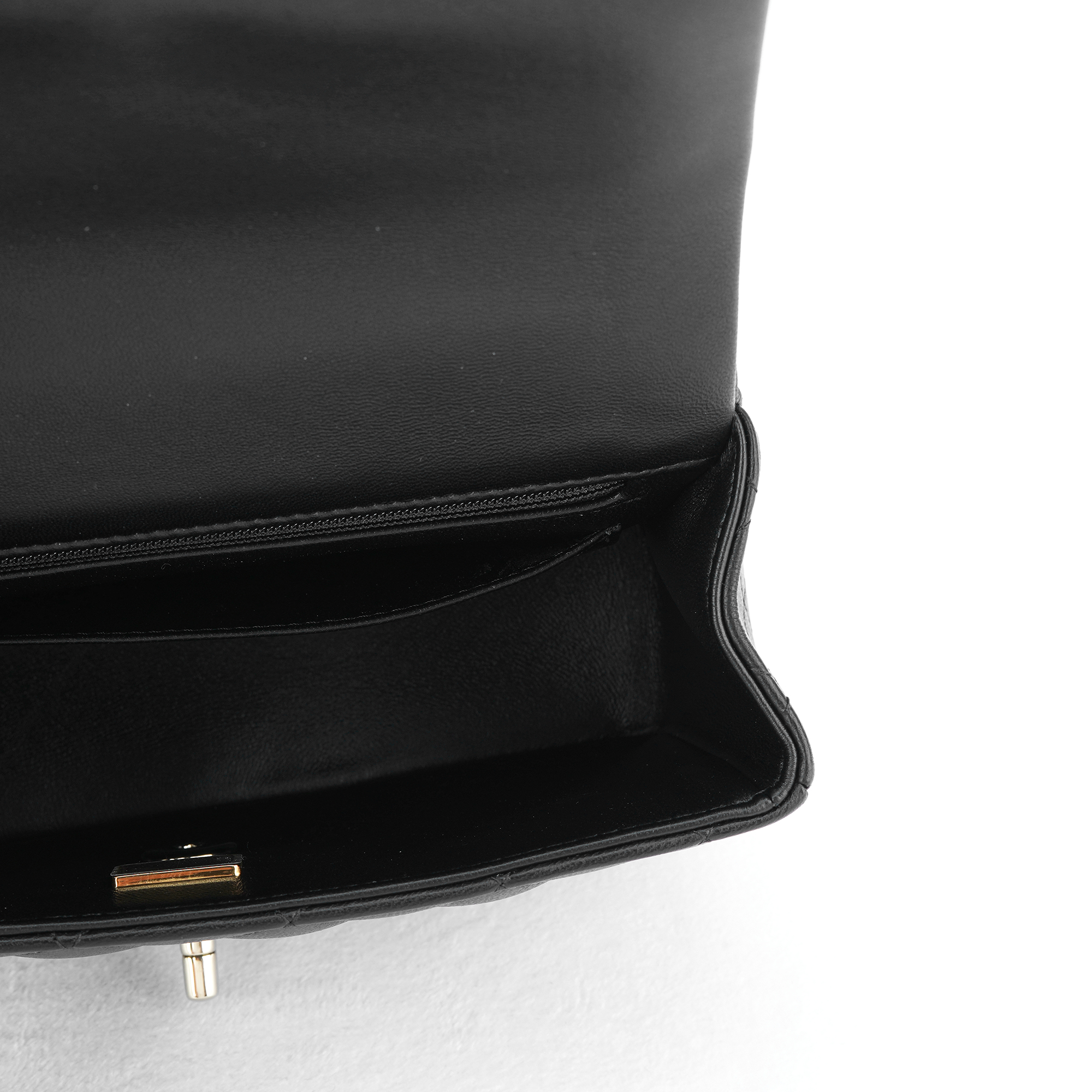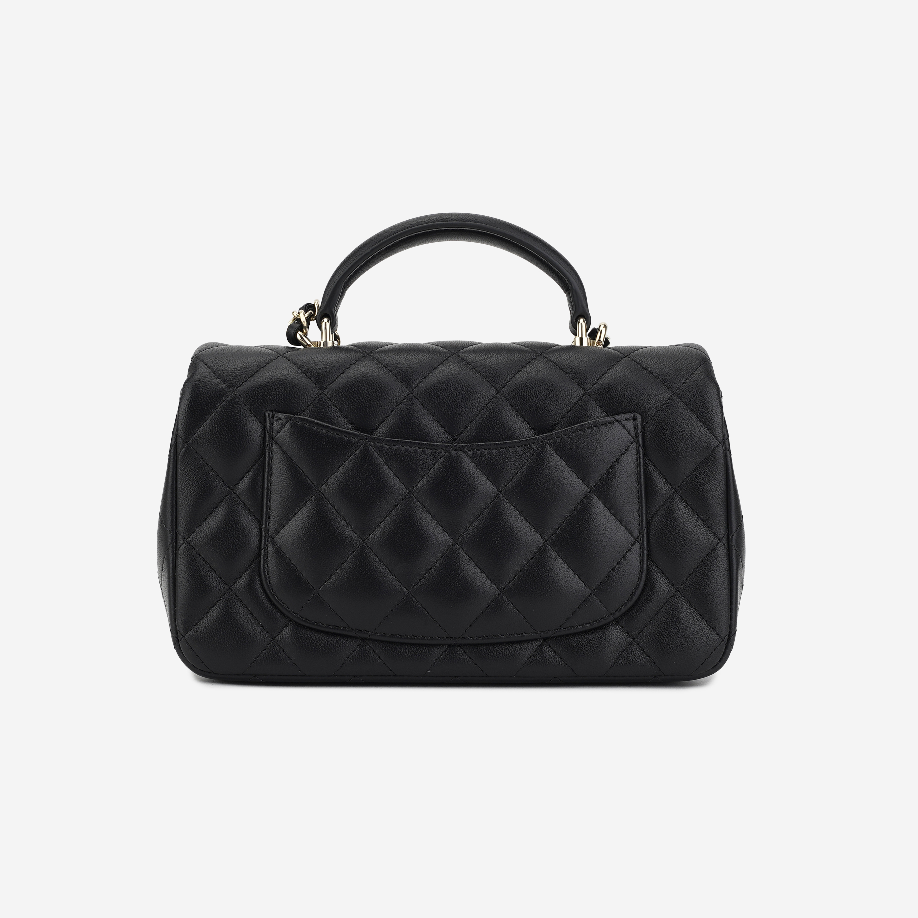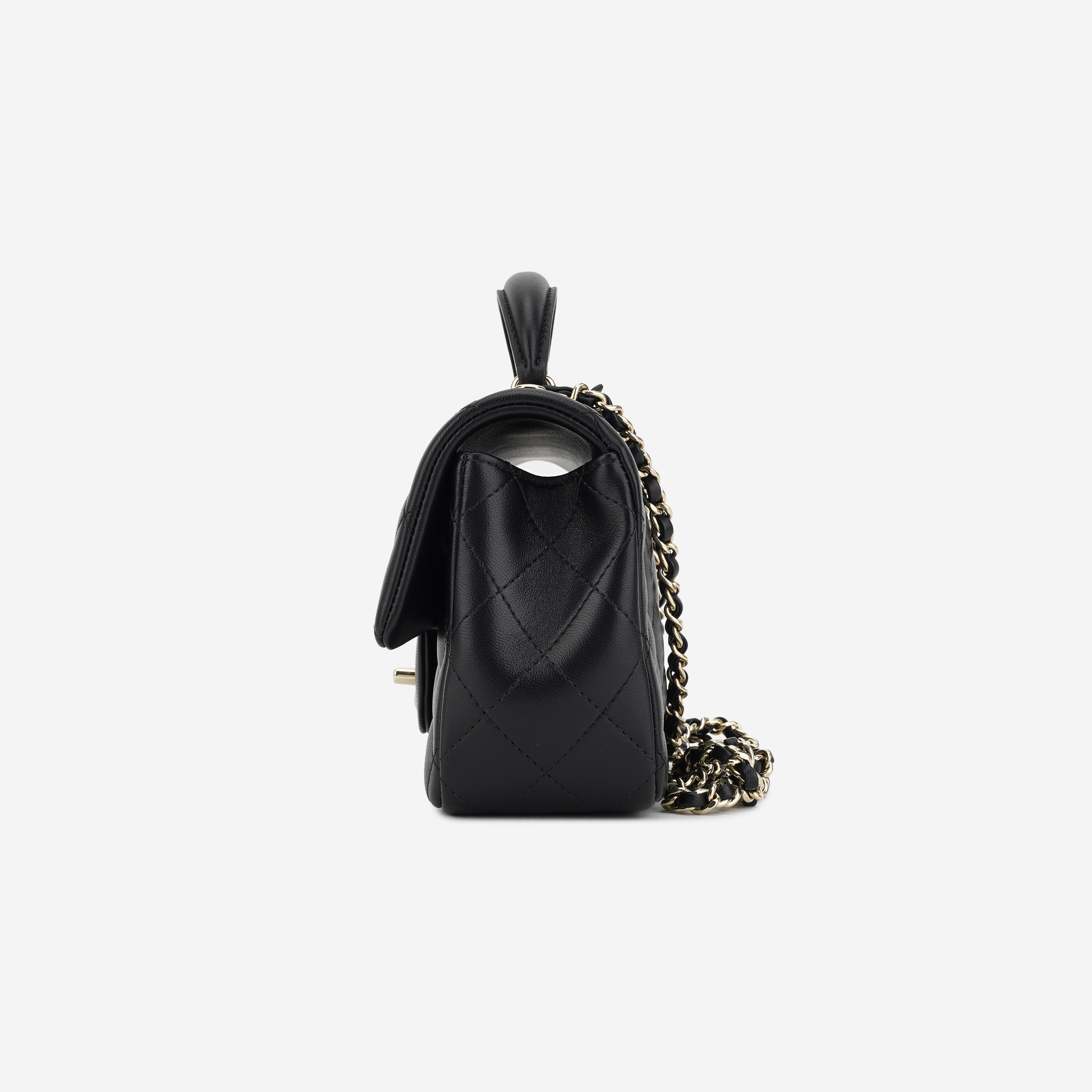 샤넬 핸들 장식의 미니 플랩백 램스킨 & 골드 메탈 블랙