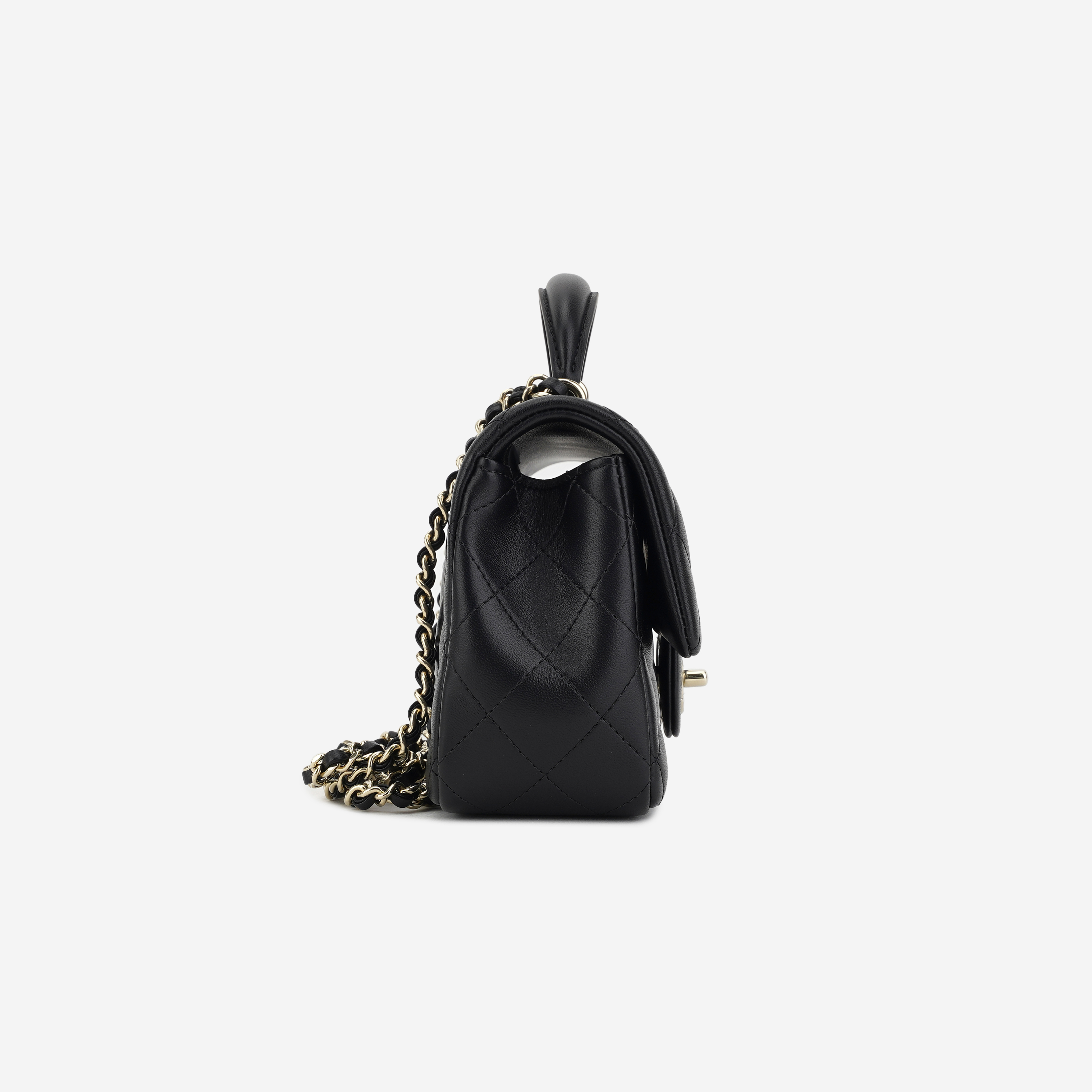 Chanel Mini Flap Bag with Top Handle Lambskin & Gold Black