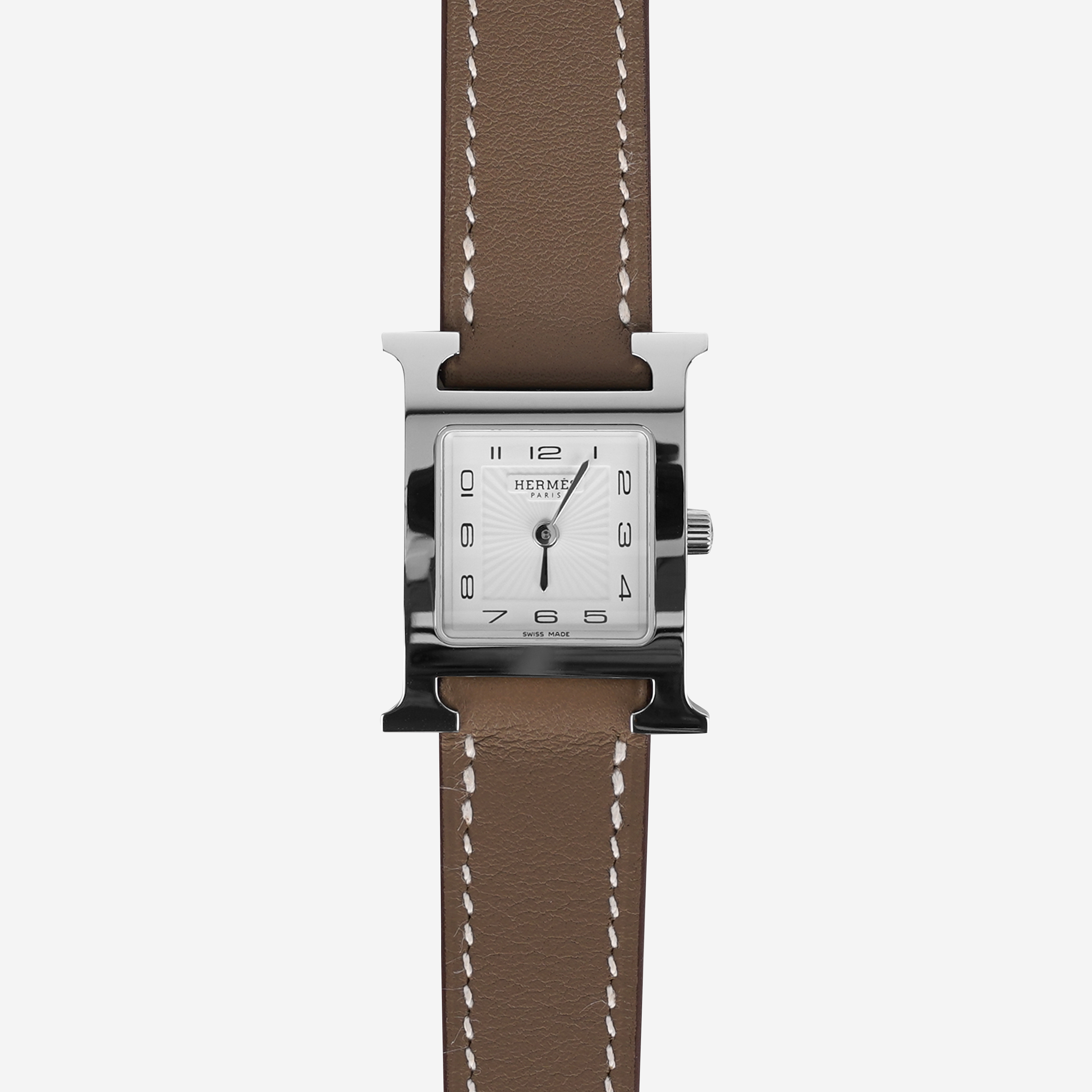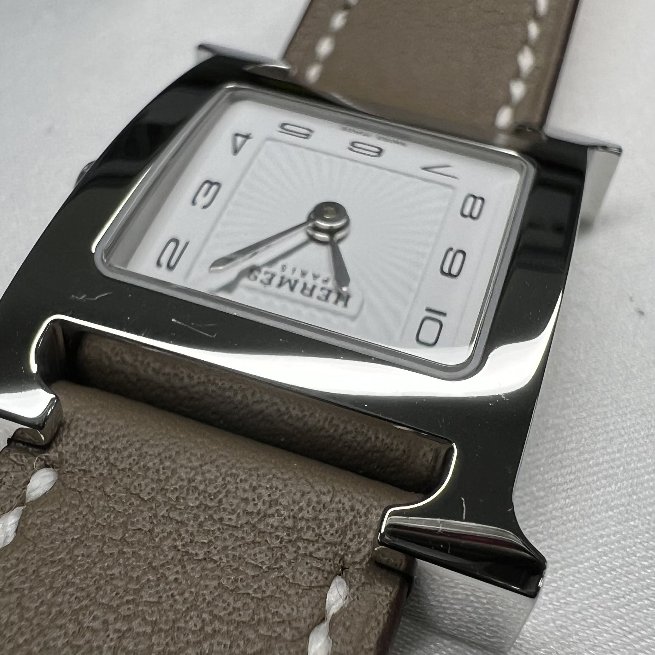 Hermes Heure H Watch Small Etoupe Swift Strap & Steel