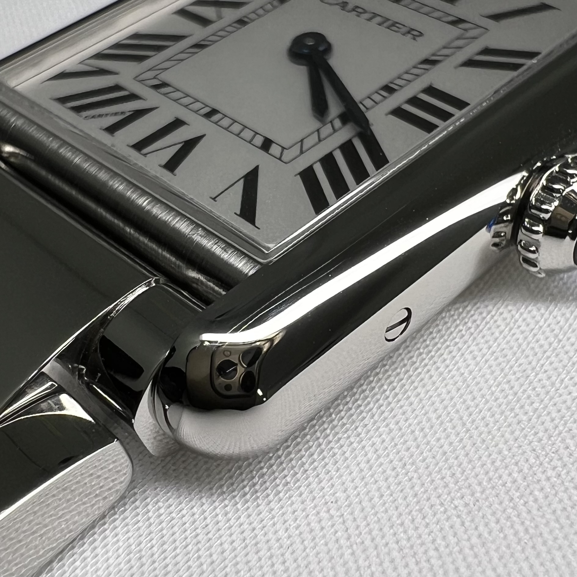 까르띠에 탱크 머스트 워치 라지 쿼츠 스틸 브레이슬릿 스틸