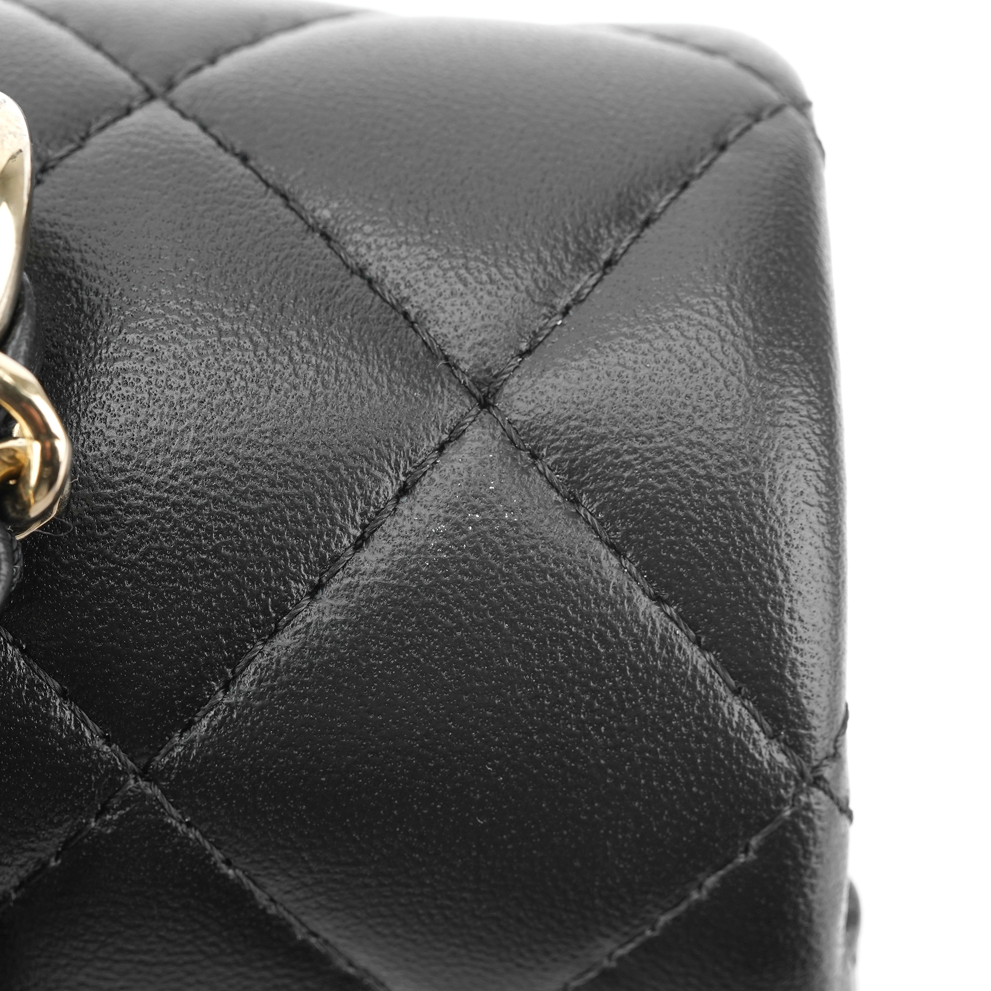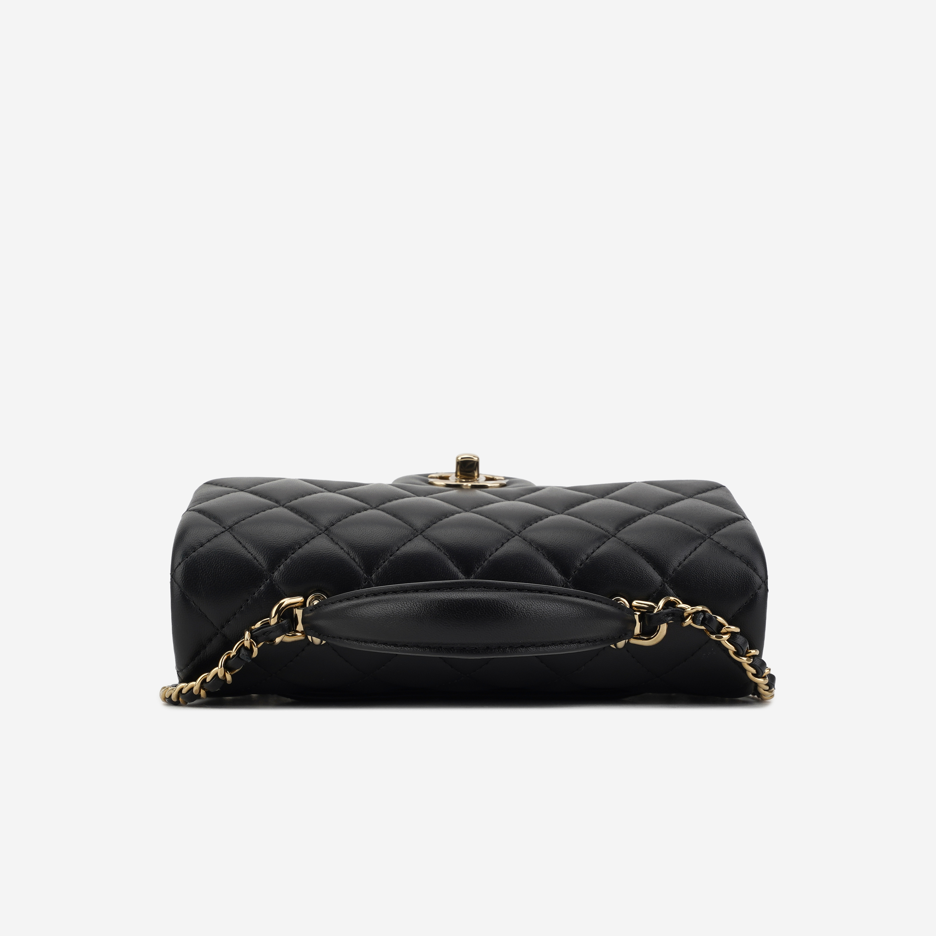 샤넬 핸들 장식의 미니 플랩백 램스킨 & 골드 메탈 블랙