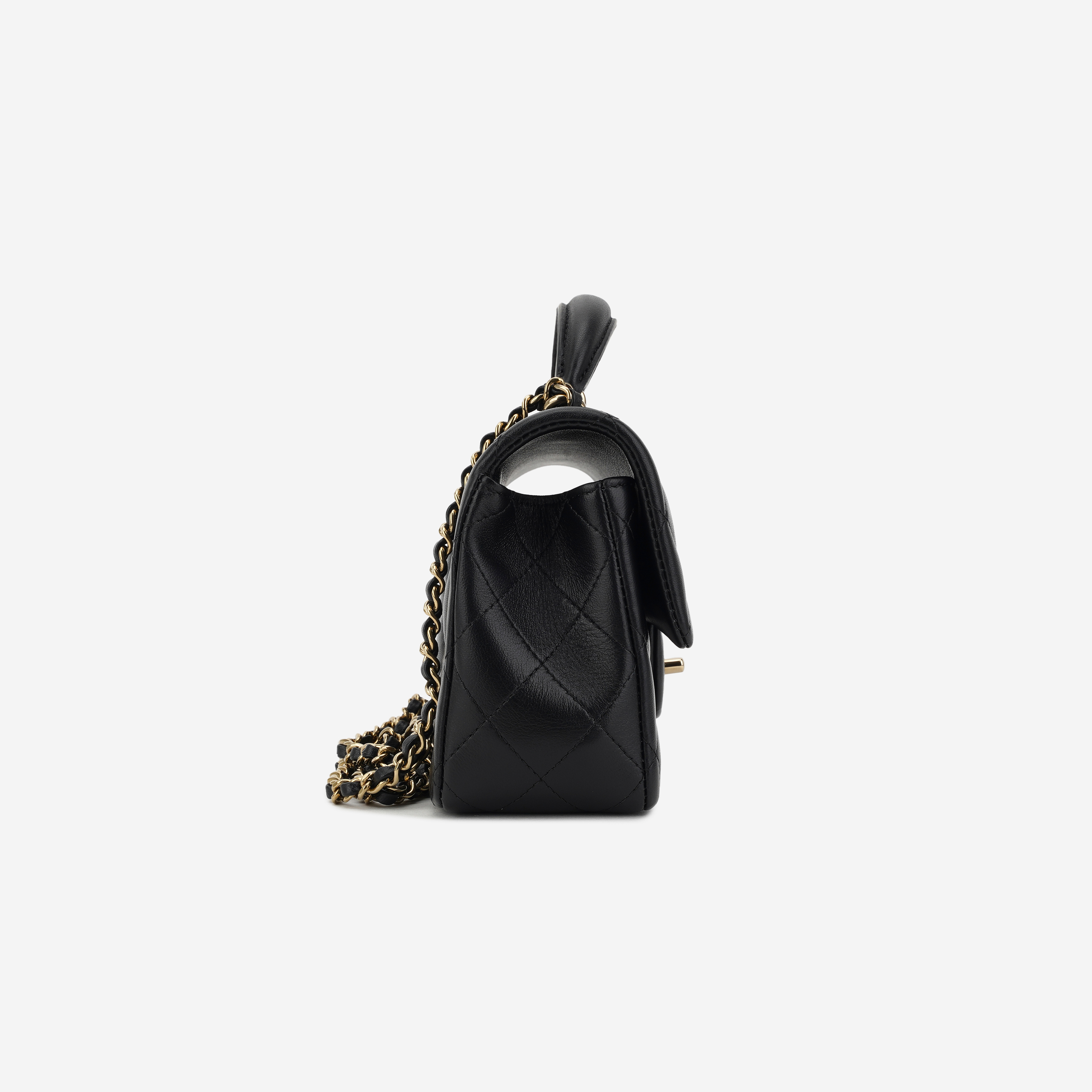 Chanel Mini Flap Bag with Top Handle Lambskin & Gold Black