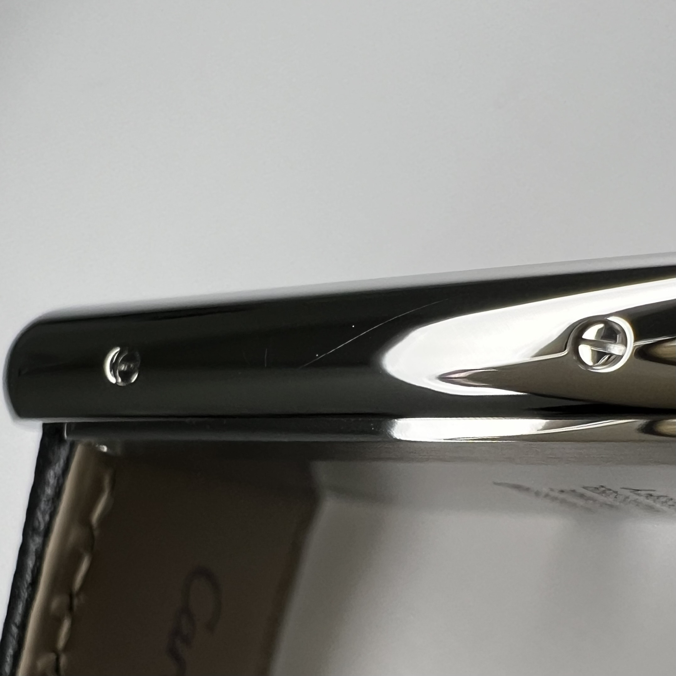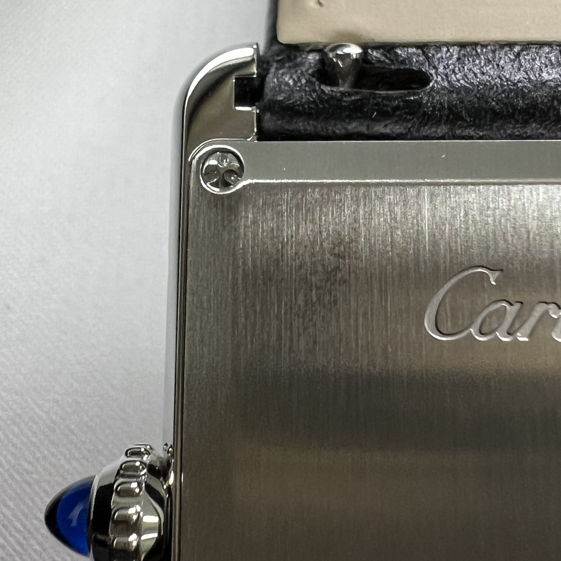 까르띠에 탱크 머스트 워치 라지 쿼츠 스틸 카프스킨 블랙
