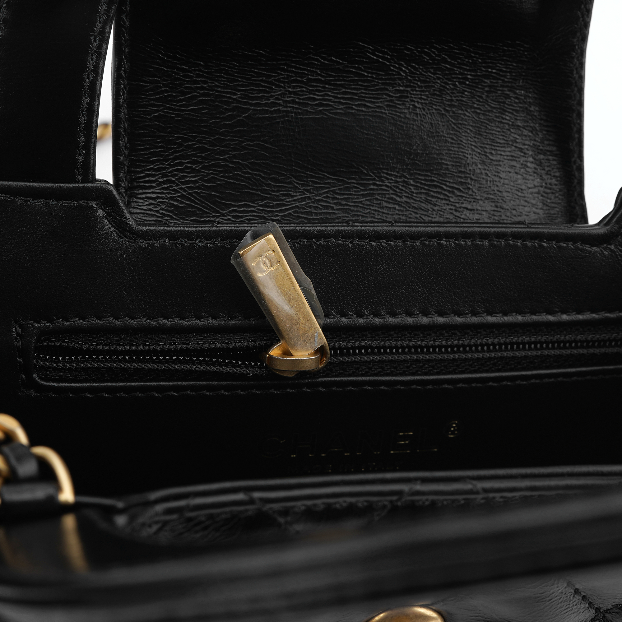 Chanel Mini Shopping Bag Shiny Aged Calfskin & Gold Black