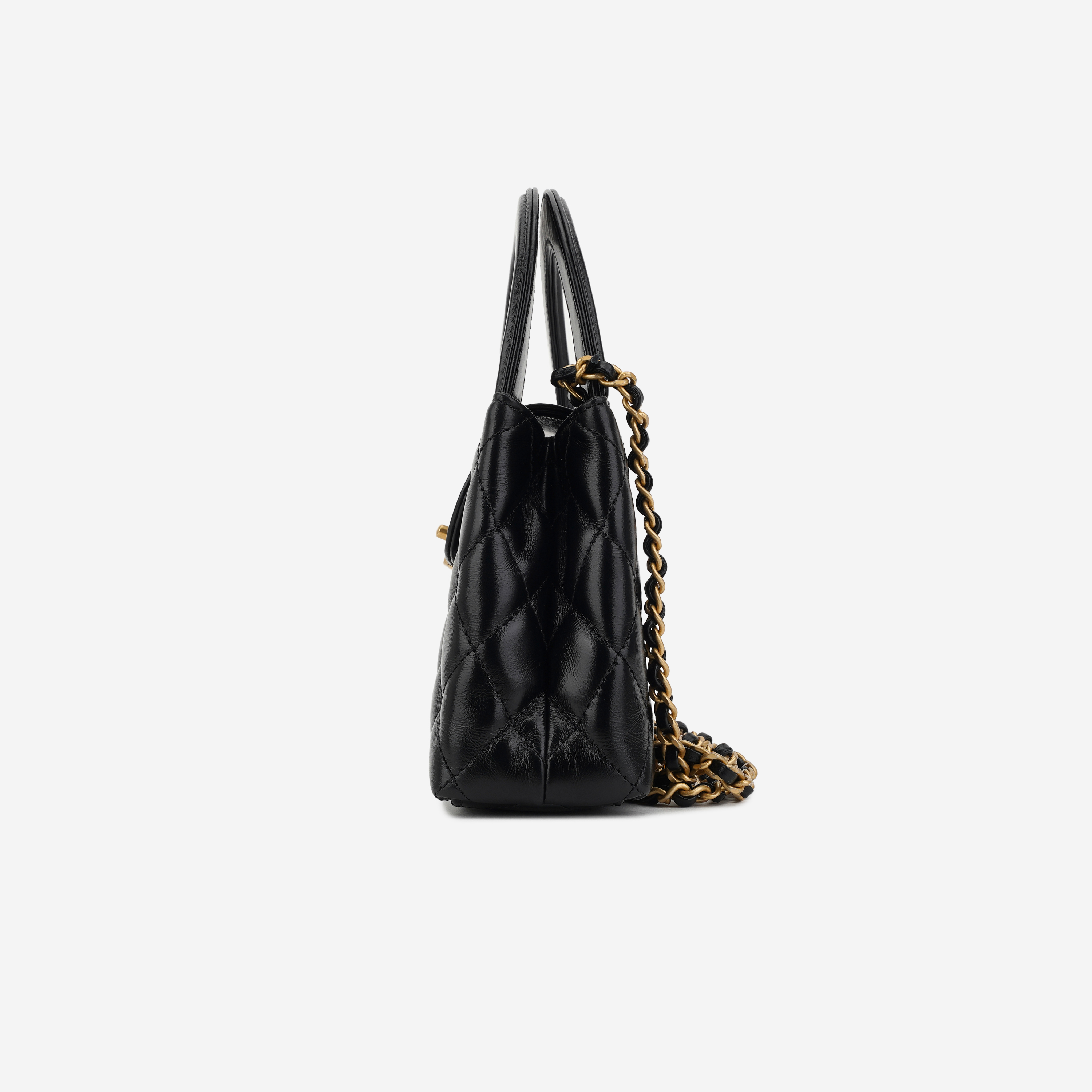 샤넬 미니 쇼핑백 샤이니 빈티지 카프스킨 & 골드 메탈 블랙
