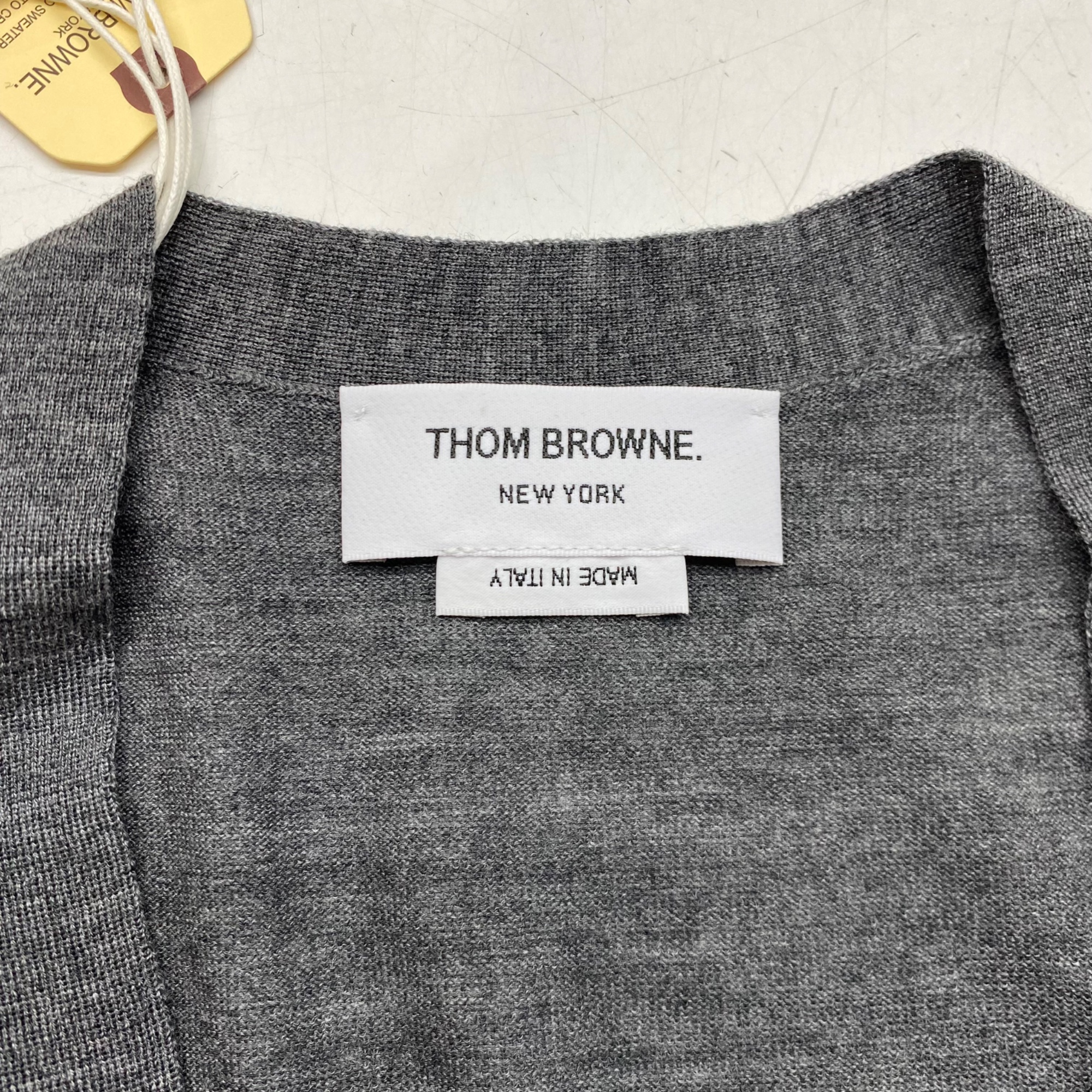 (W) 톰브라운 서스테이너블 파인 메리노 울 사선 릴렉스 핏 브이넥 가디건 미디움 그레이