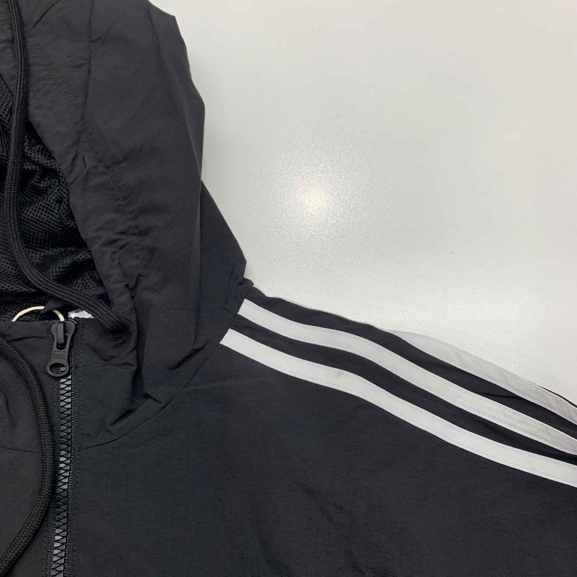 (W) Adidas Essential 3S Woven Windbreaker Jacket Black White - KR Sizing