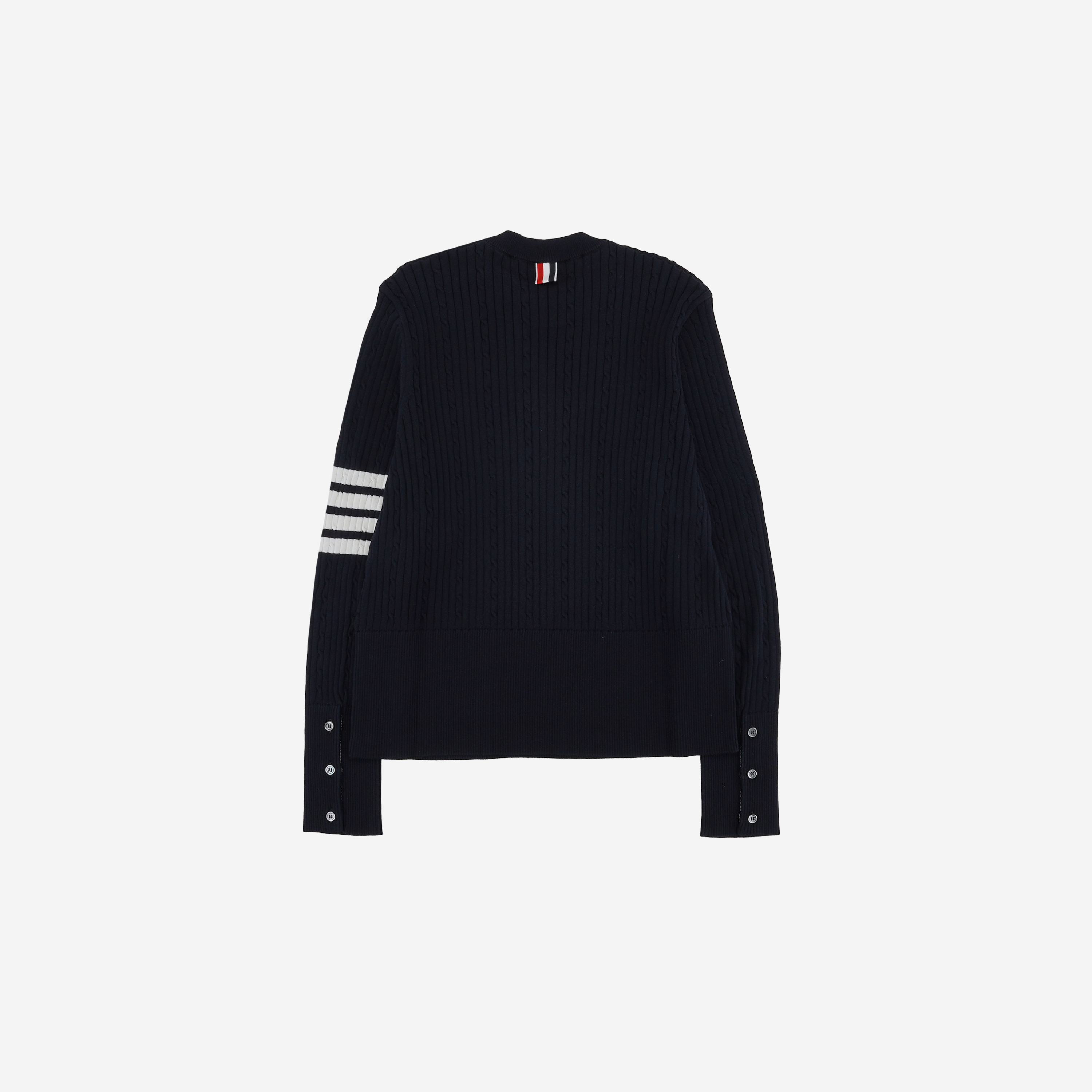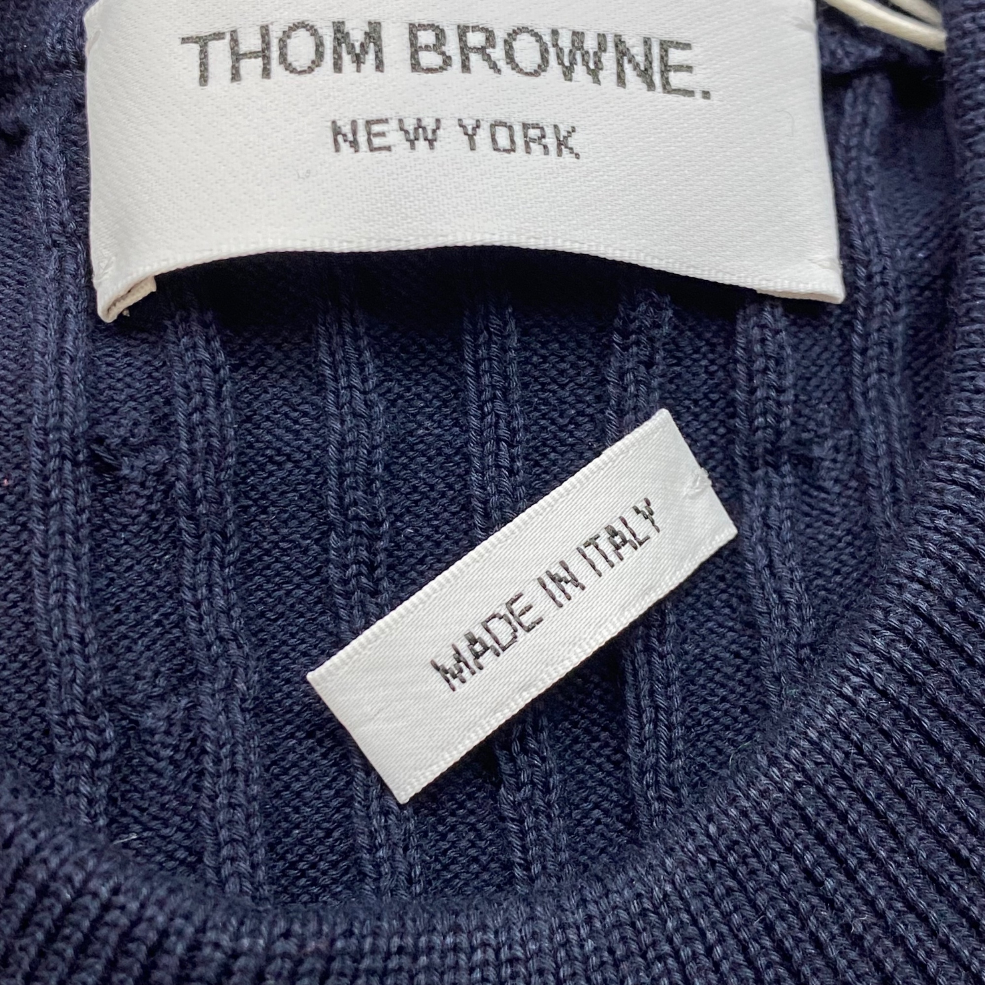 Thom Browne Baby Cable Rib Cotton 4-Bar Crew Neck Pullover Navy