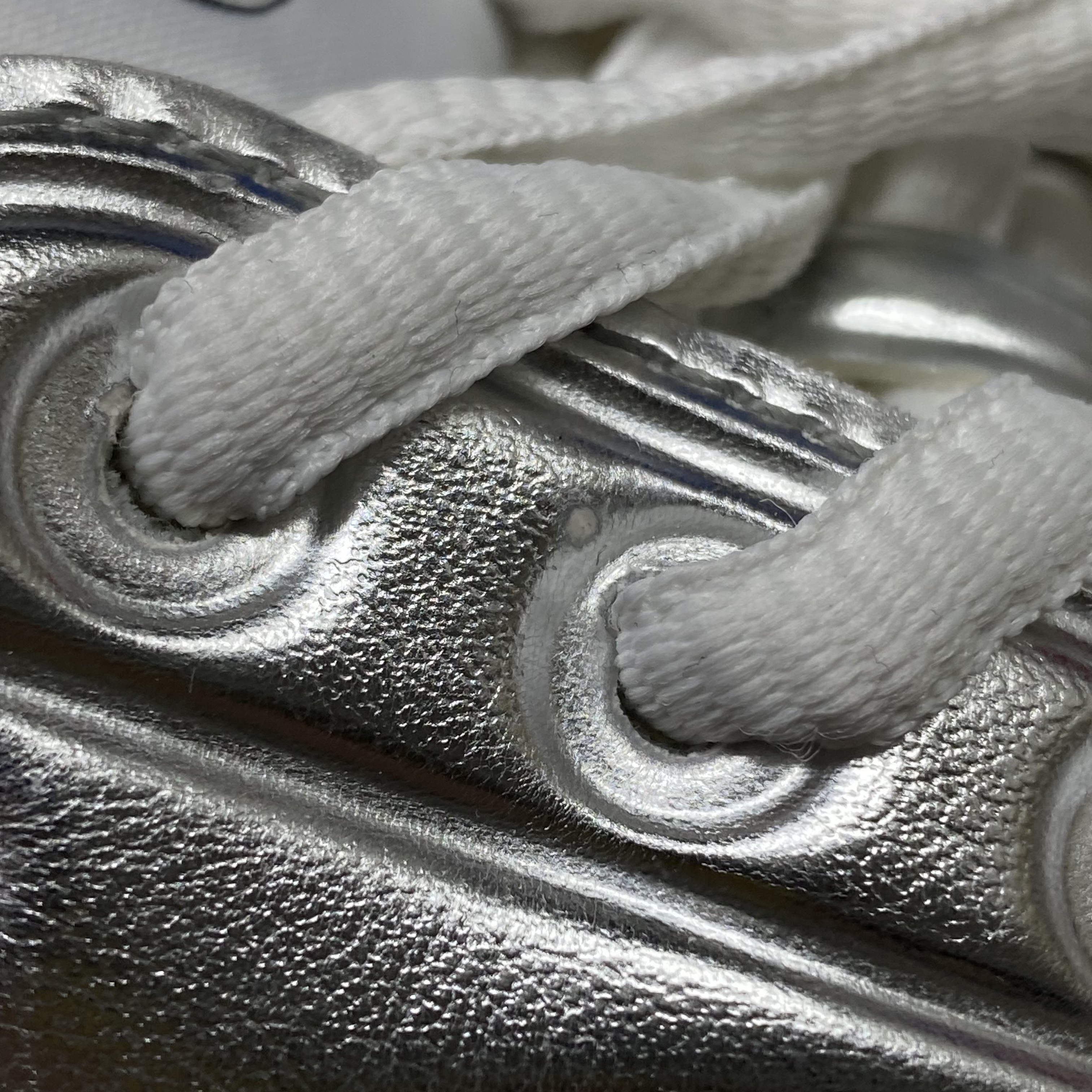 (W) Chanel Sneakers Fabric Laminated & White Silver