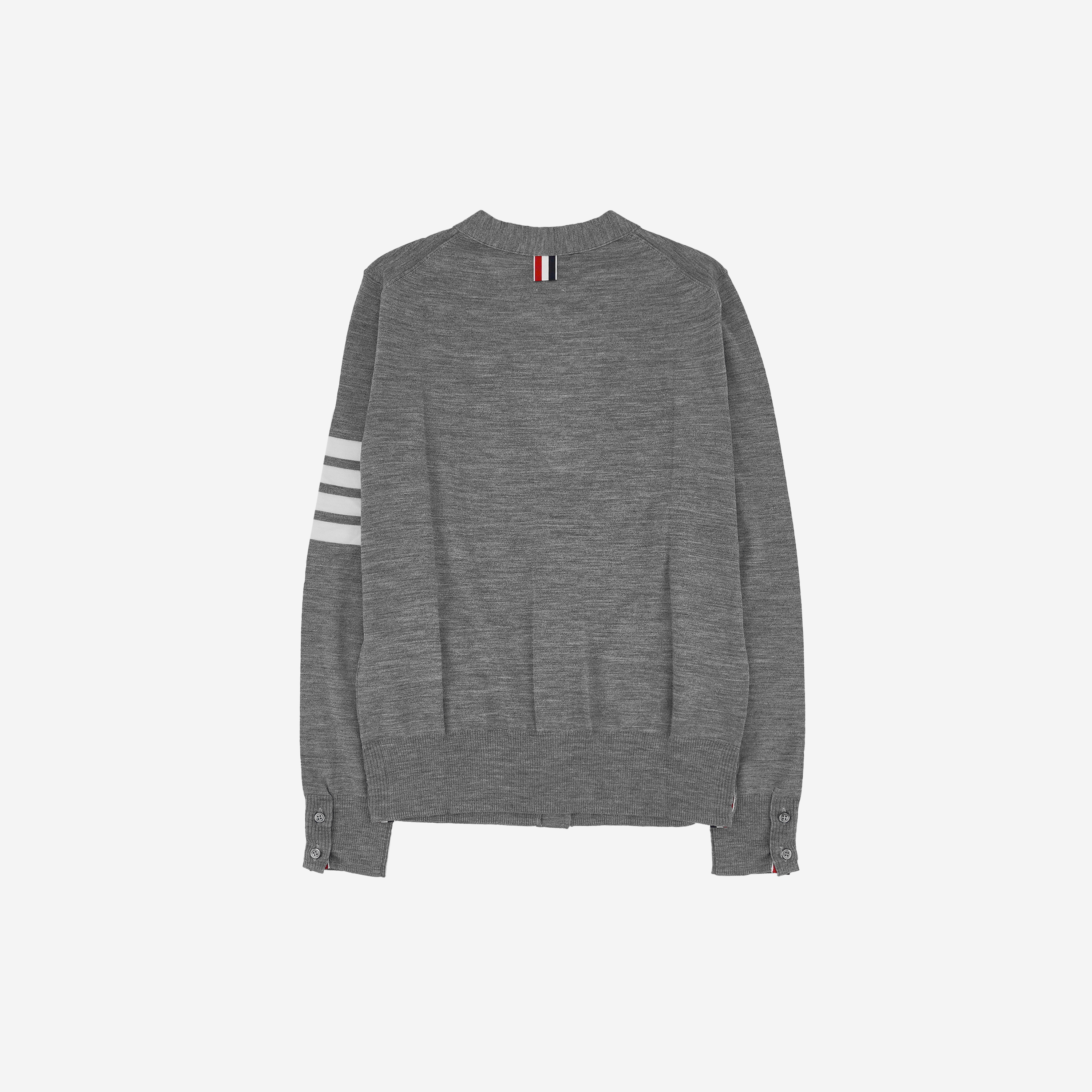 (W) 톰브라운 서스테이너블 파인 메리노 울 사선 릴렉스 핏 브이넥 가디건 라이트 그레이