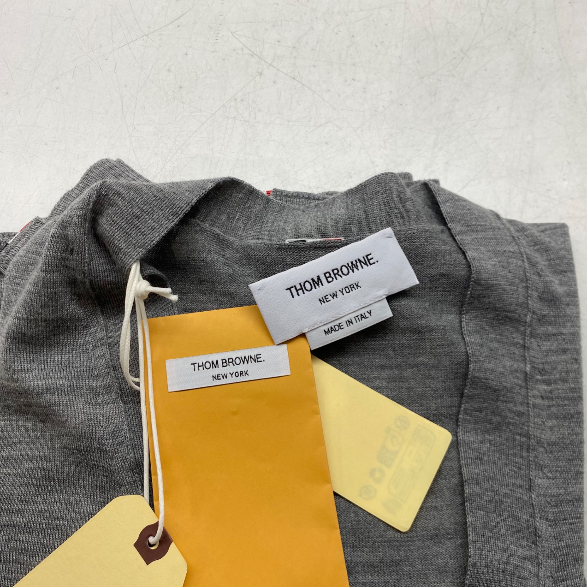 (W) Thom Browne Sustainable Fine Merino Wool 4-Bar Relaxed Fit V-Neck Cardigan Light Grey